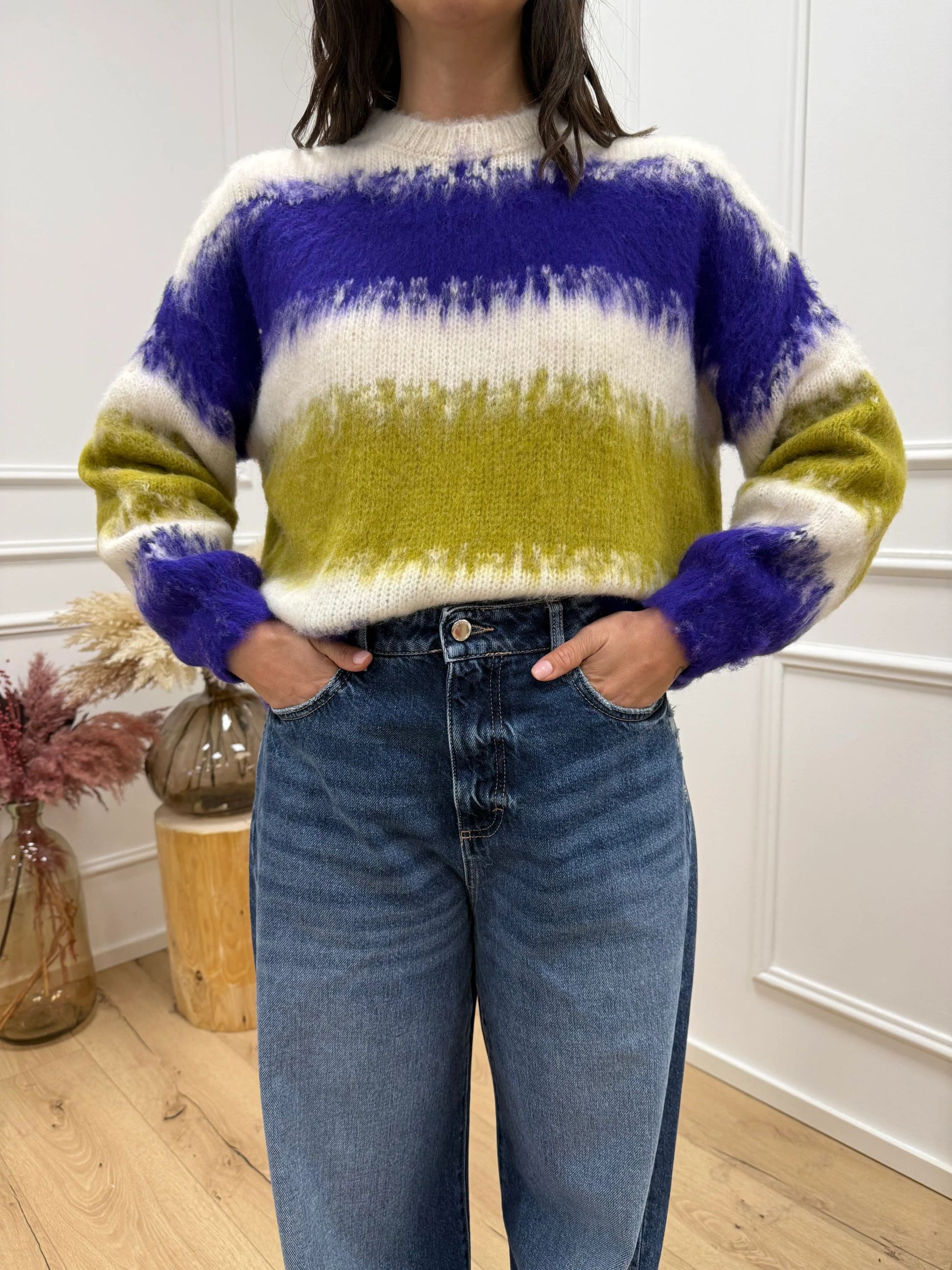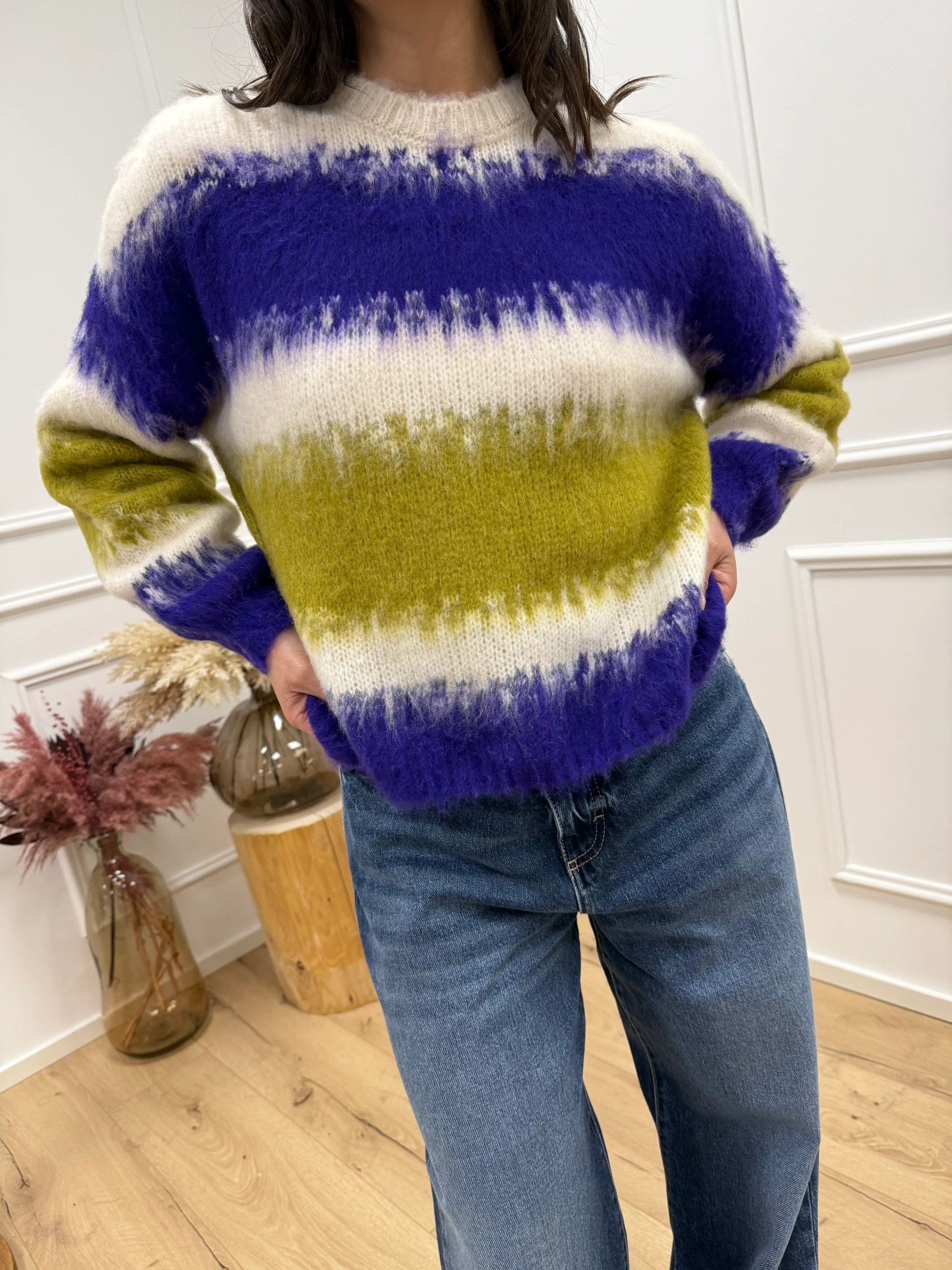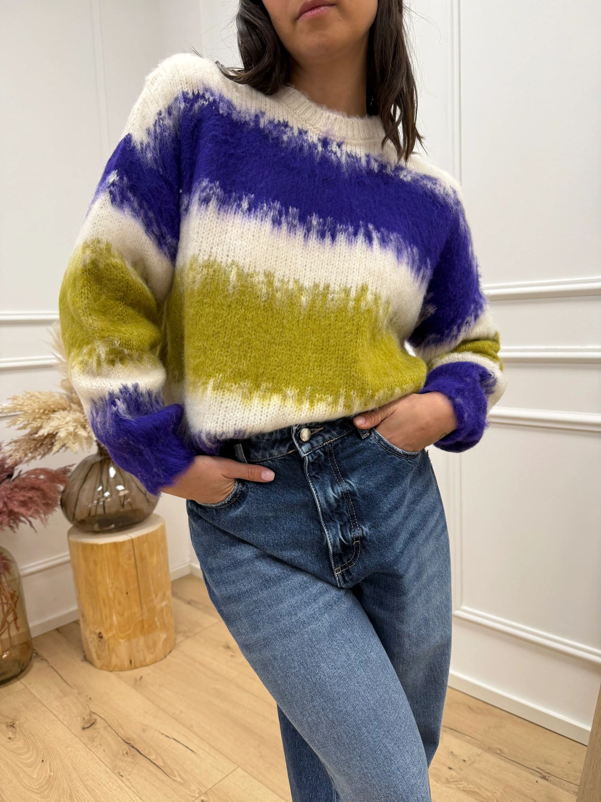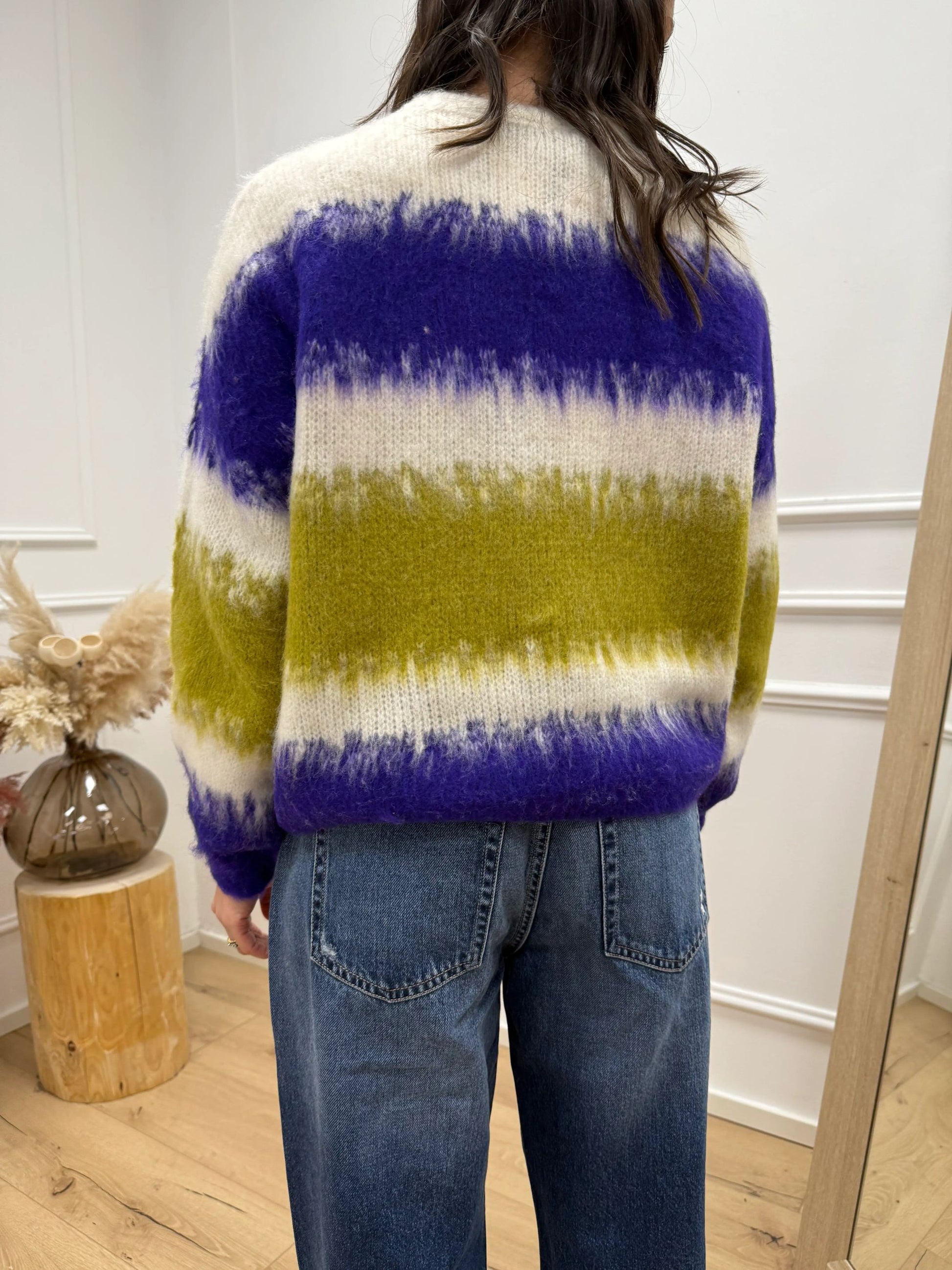 Maglia garzata a righe viola, panna e pistacchio - HaveOne