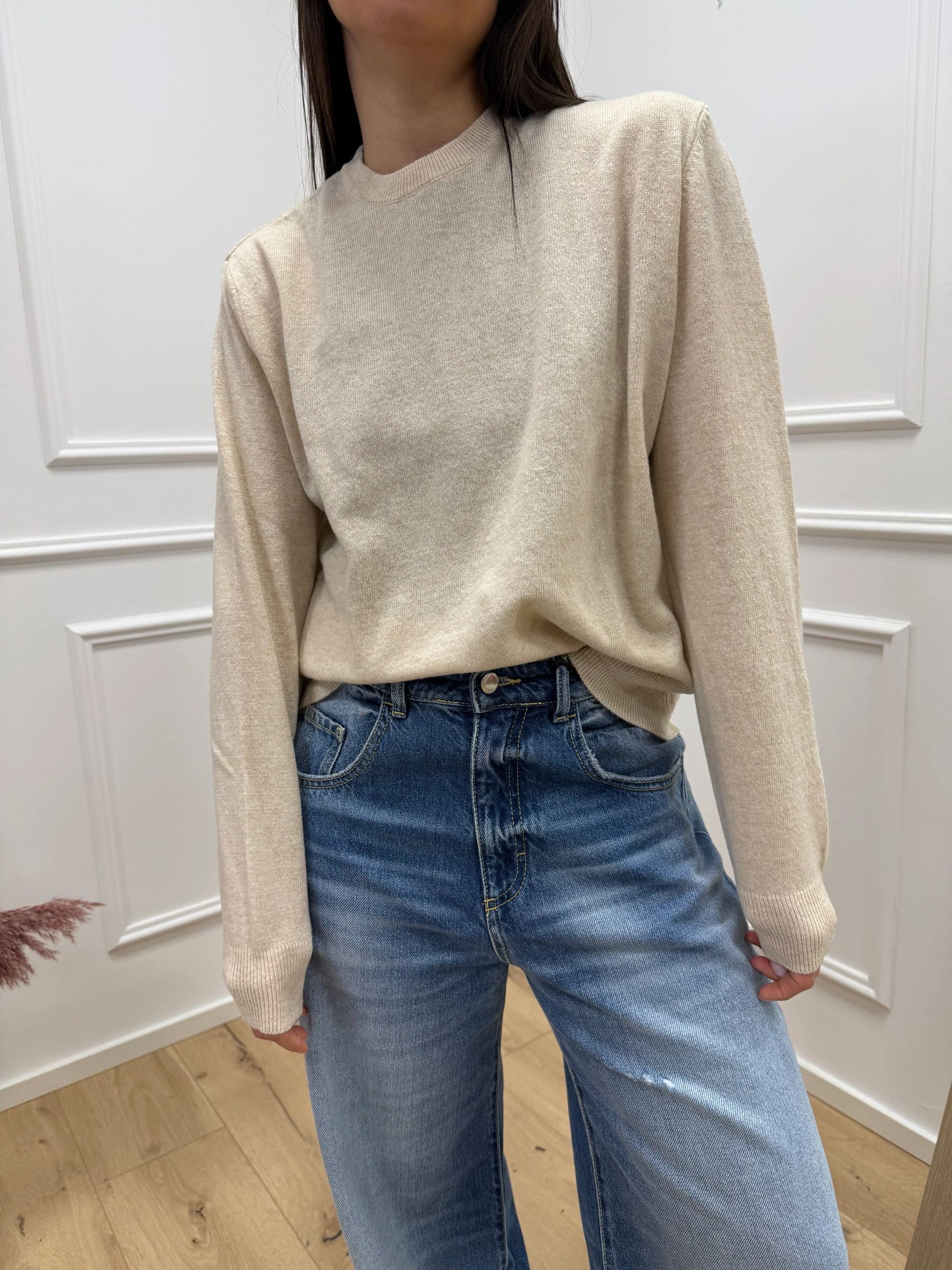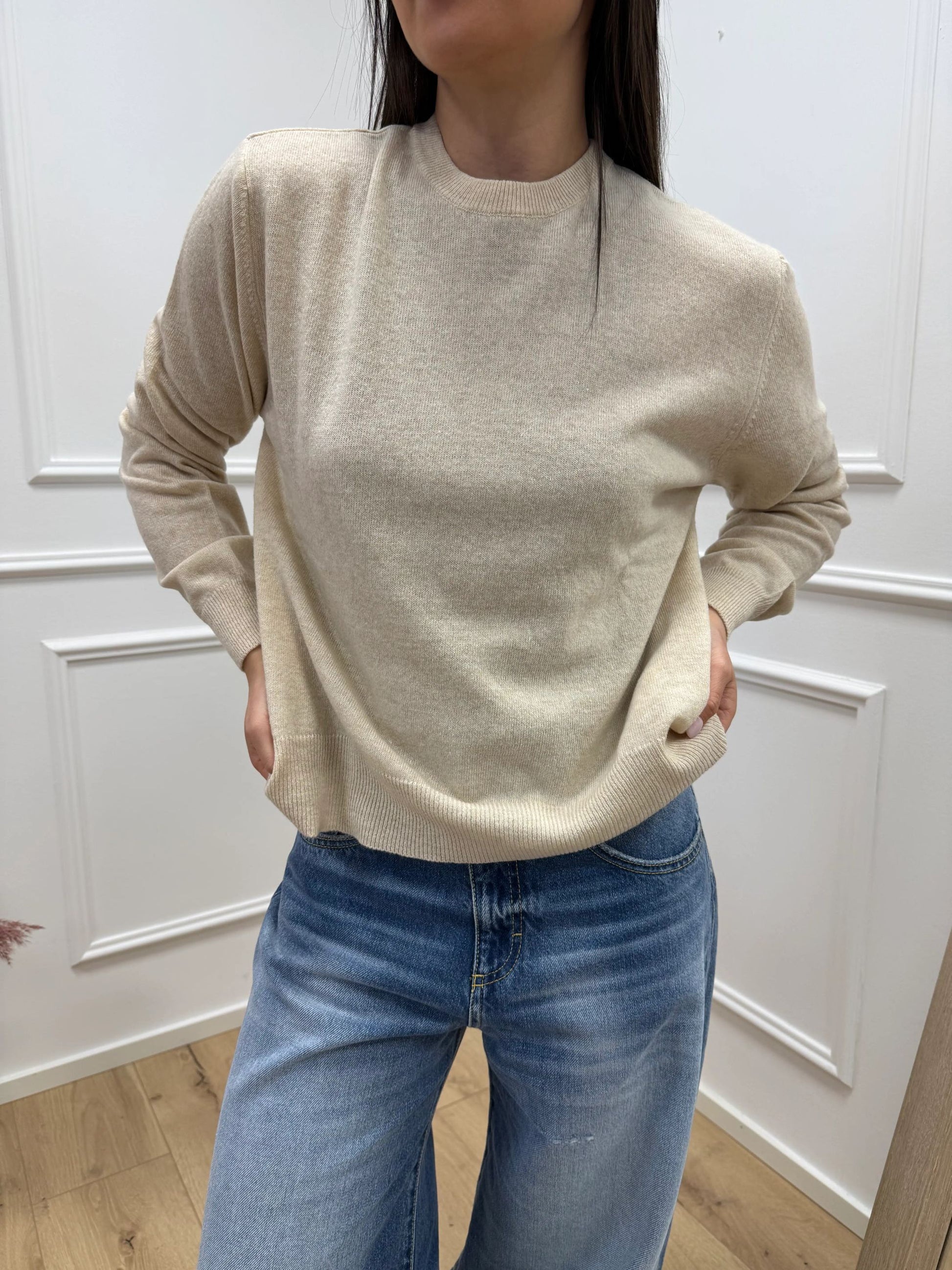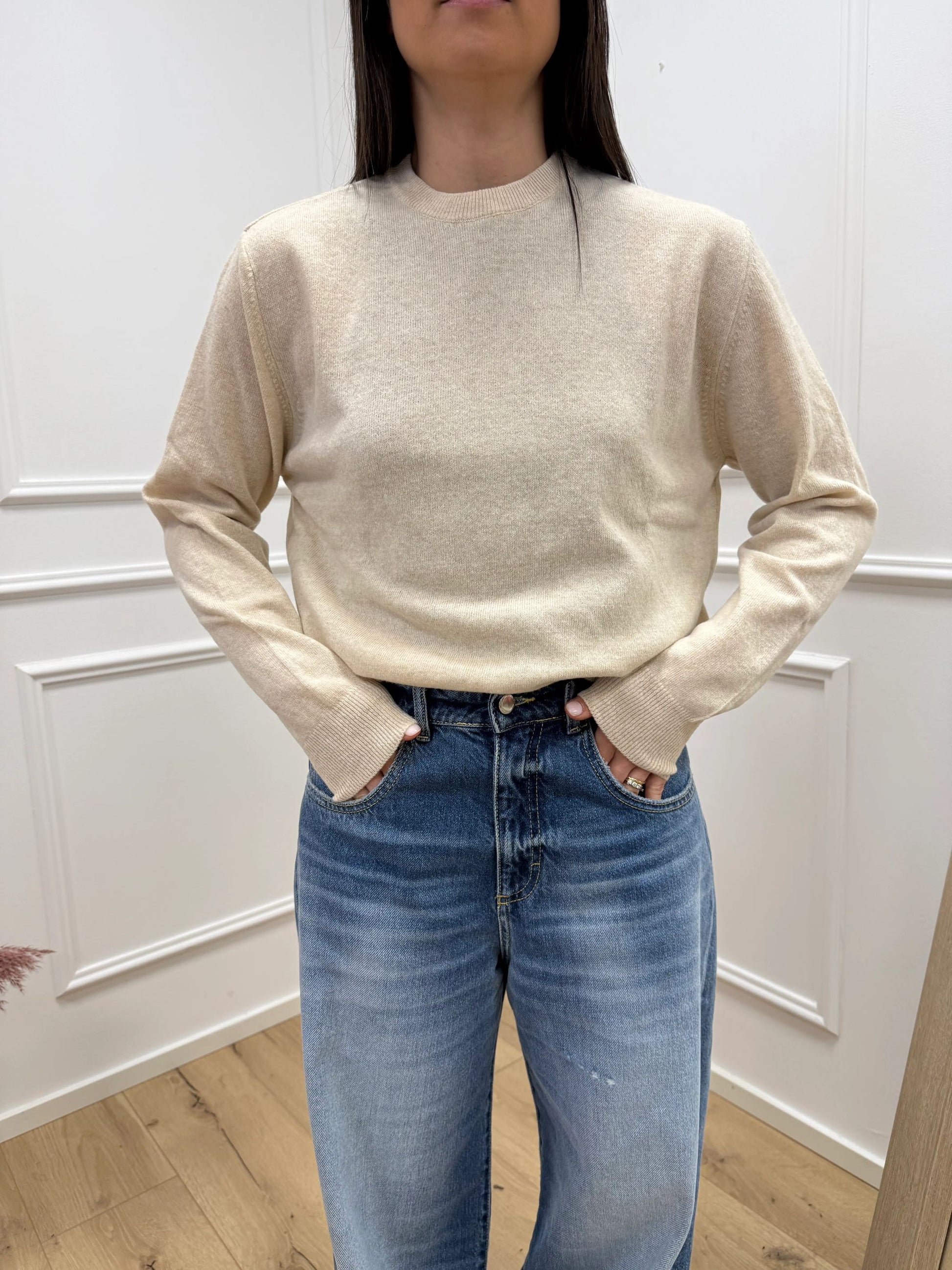 Maglia girocollo color beige HaveOne. Modello basic girocollo a manica lunga. Finiture a costine.