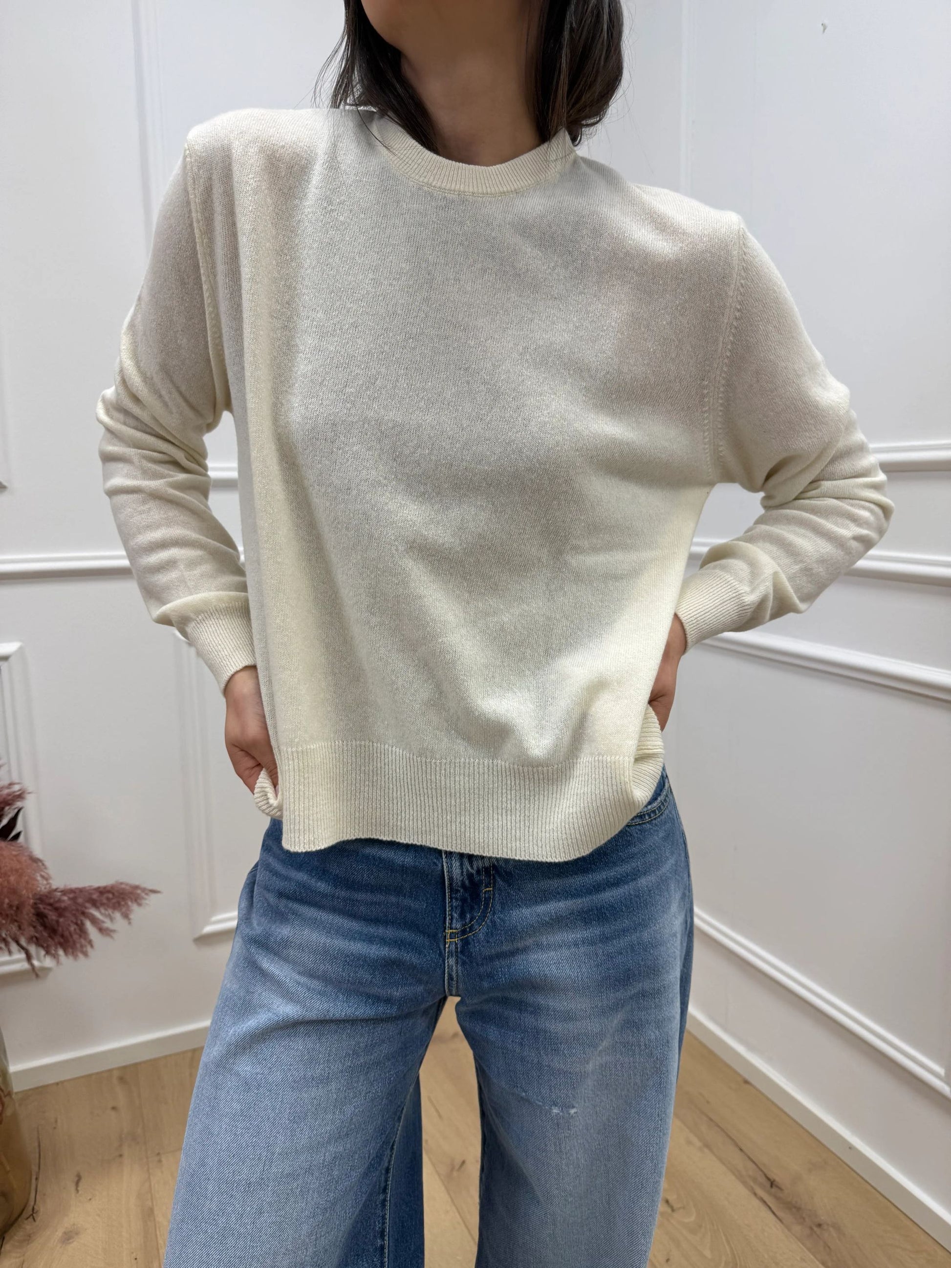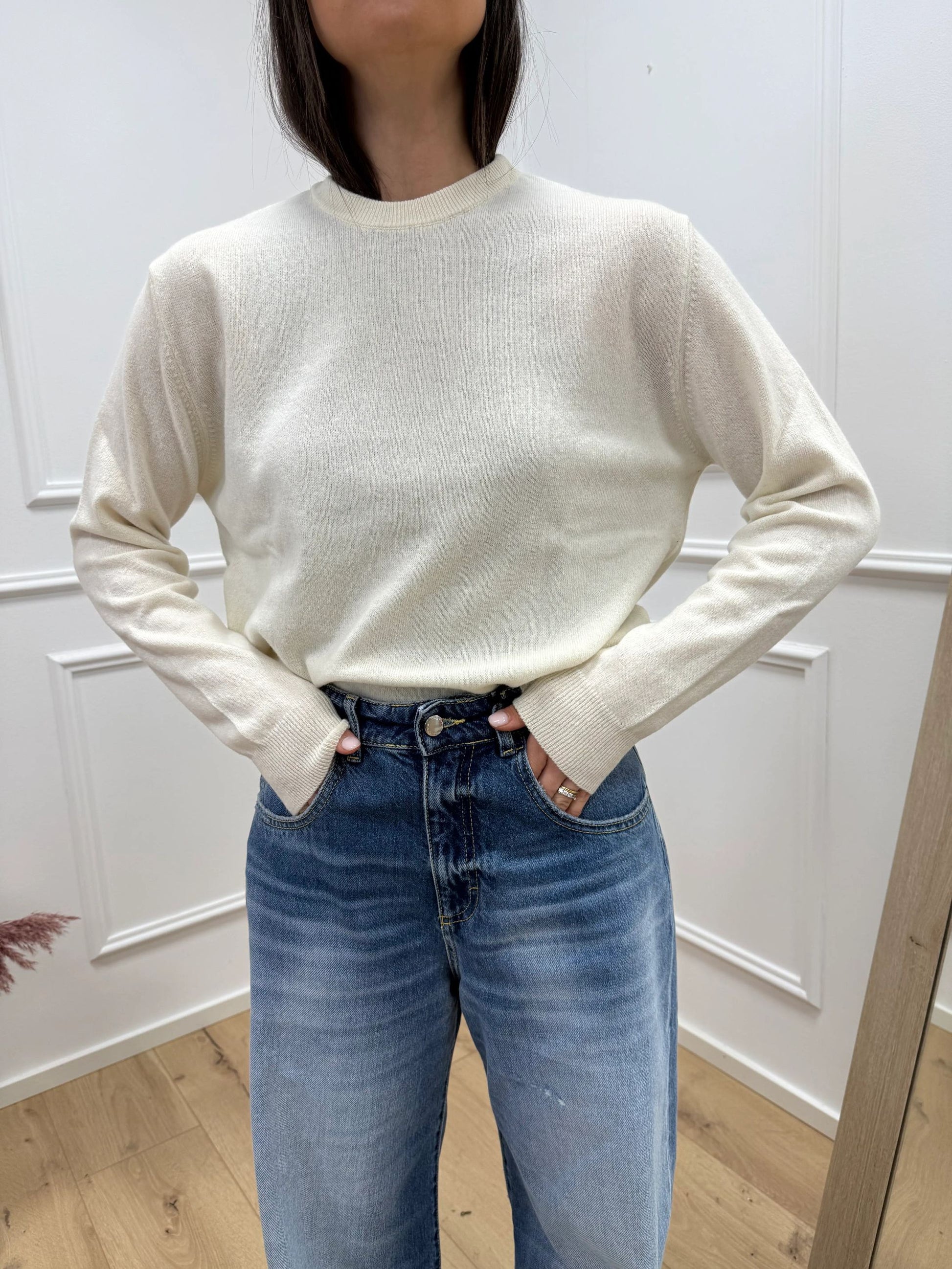 Maglia girocollo color écru HaveOne. Modello basic girocollo a manica lunga. Finiture a costine.