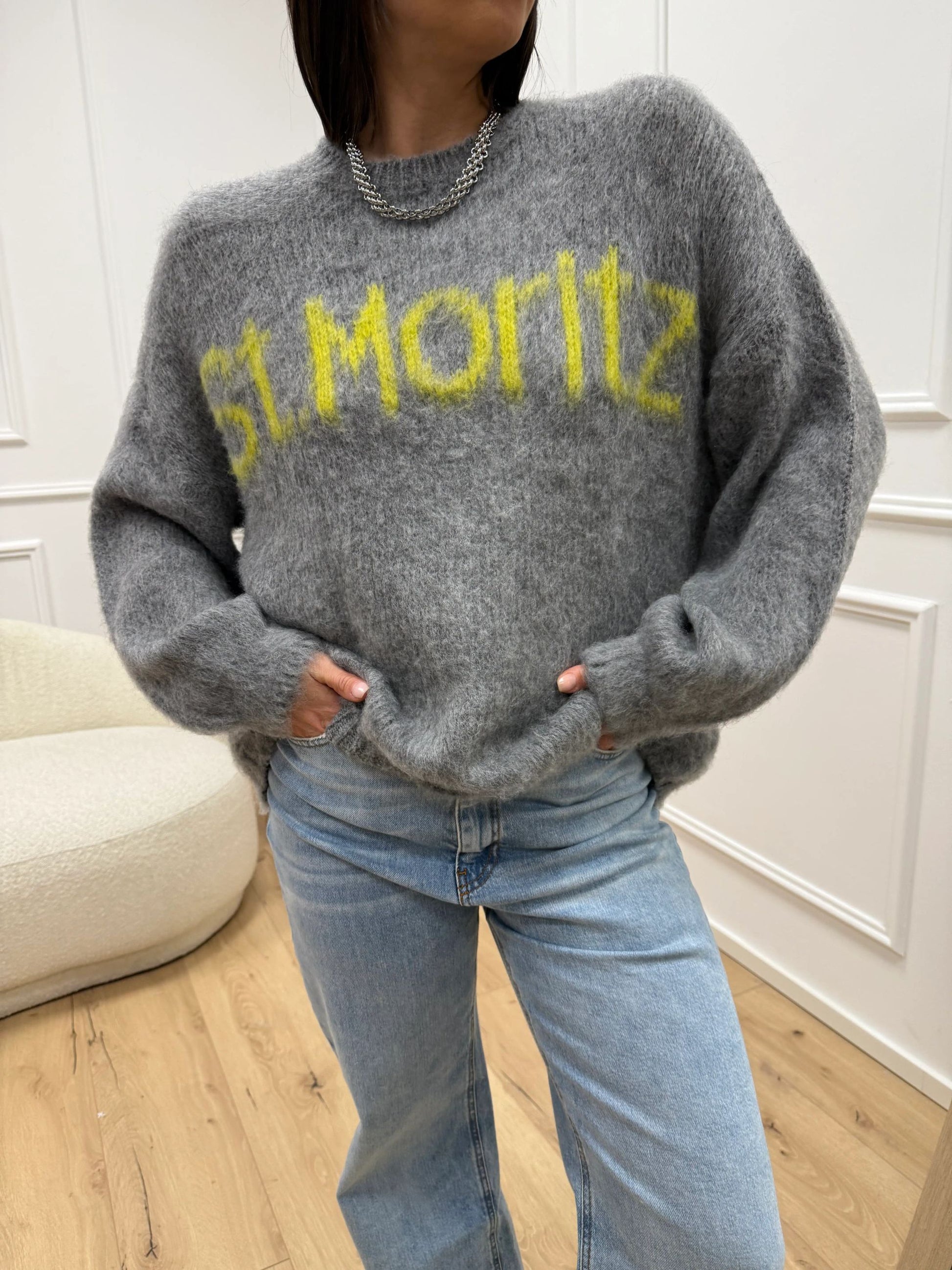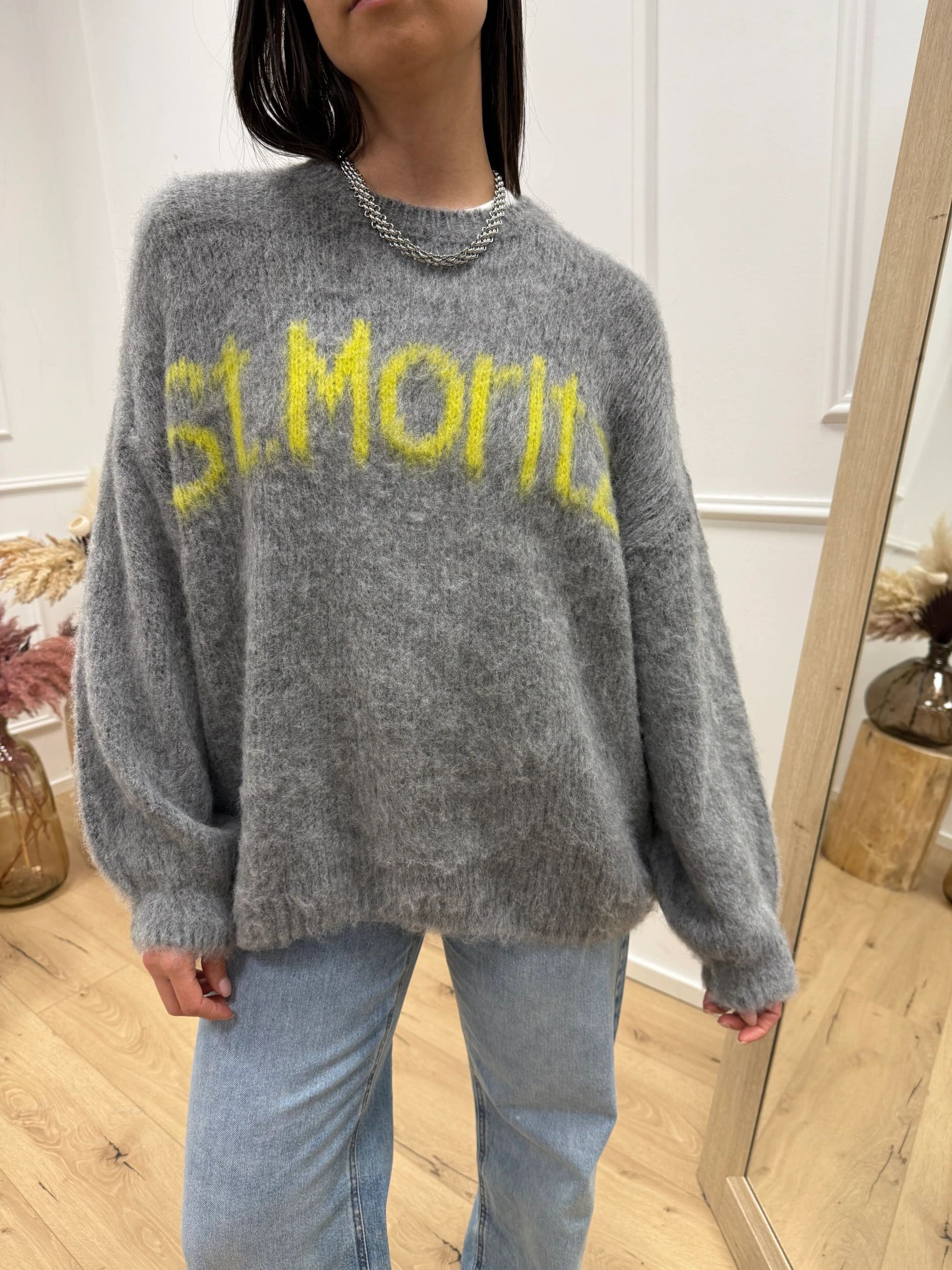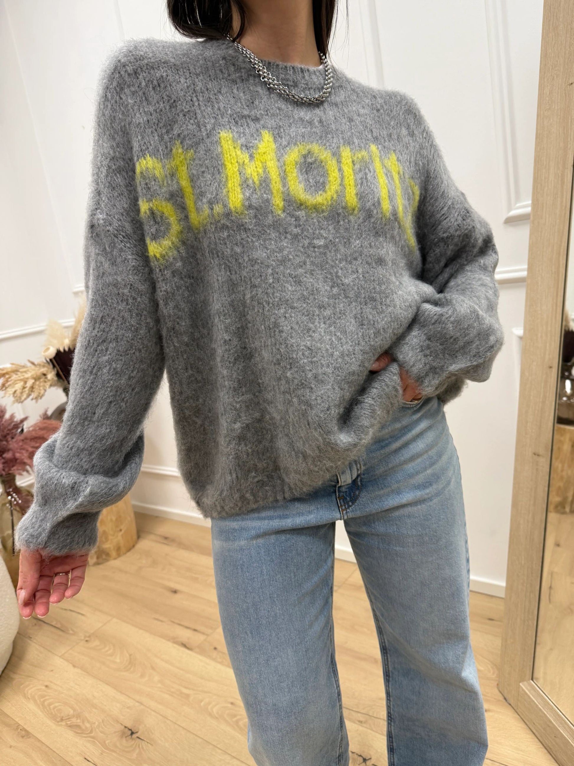 Maglia girocollo St.Moritz grigio e lime - HaveOne