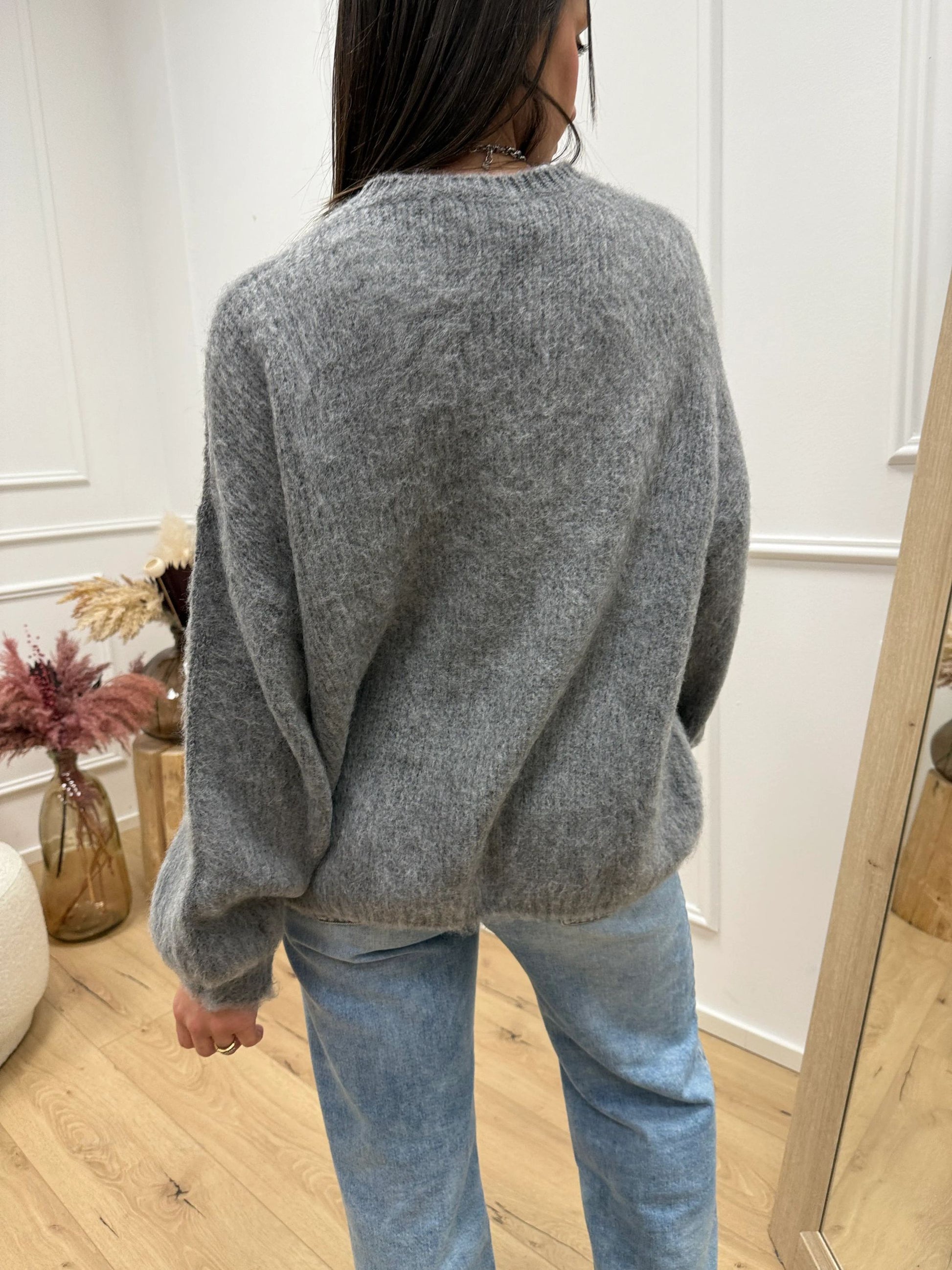 Maglia girocollo St.Moritz base grigio con scritta lime HaveOne. Modello fit morbido girocollo con spalla scesa e manica a palloncino.