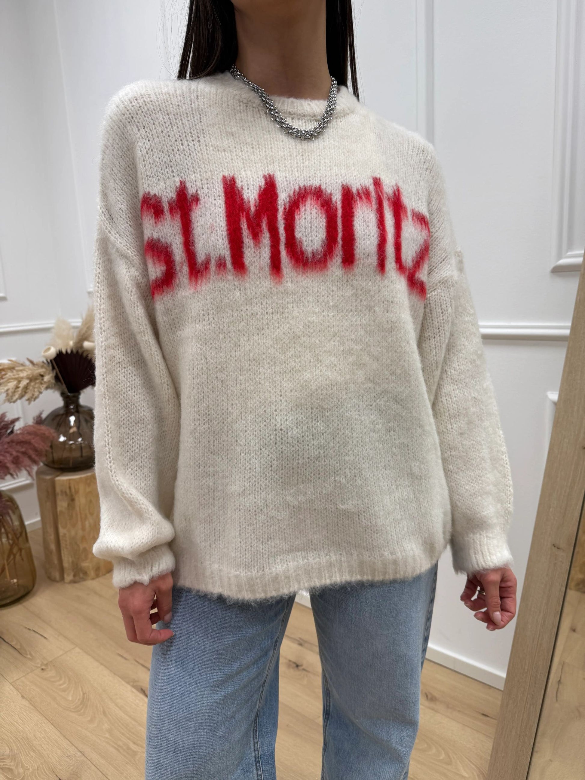 Maglia girocollo St.Moritz panna e rosso - HaveOne