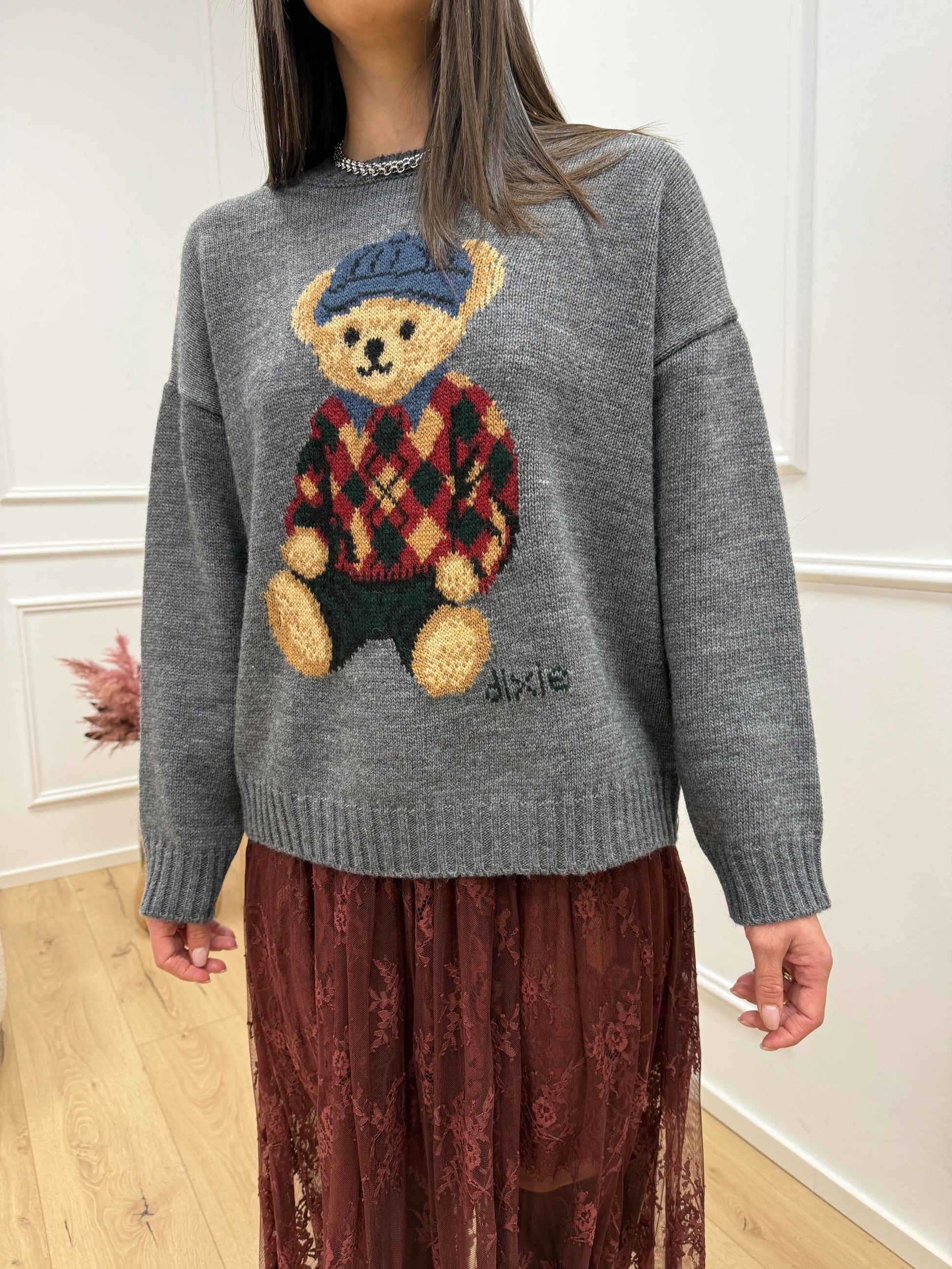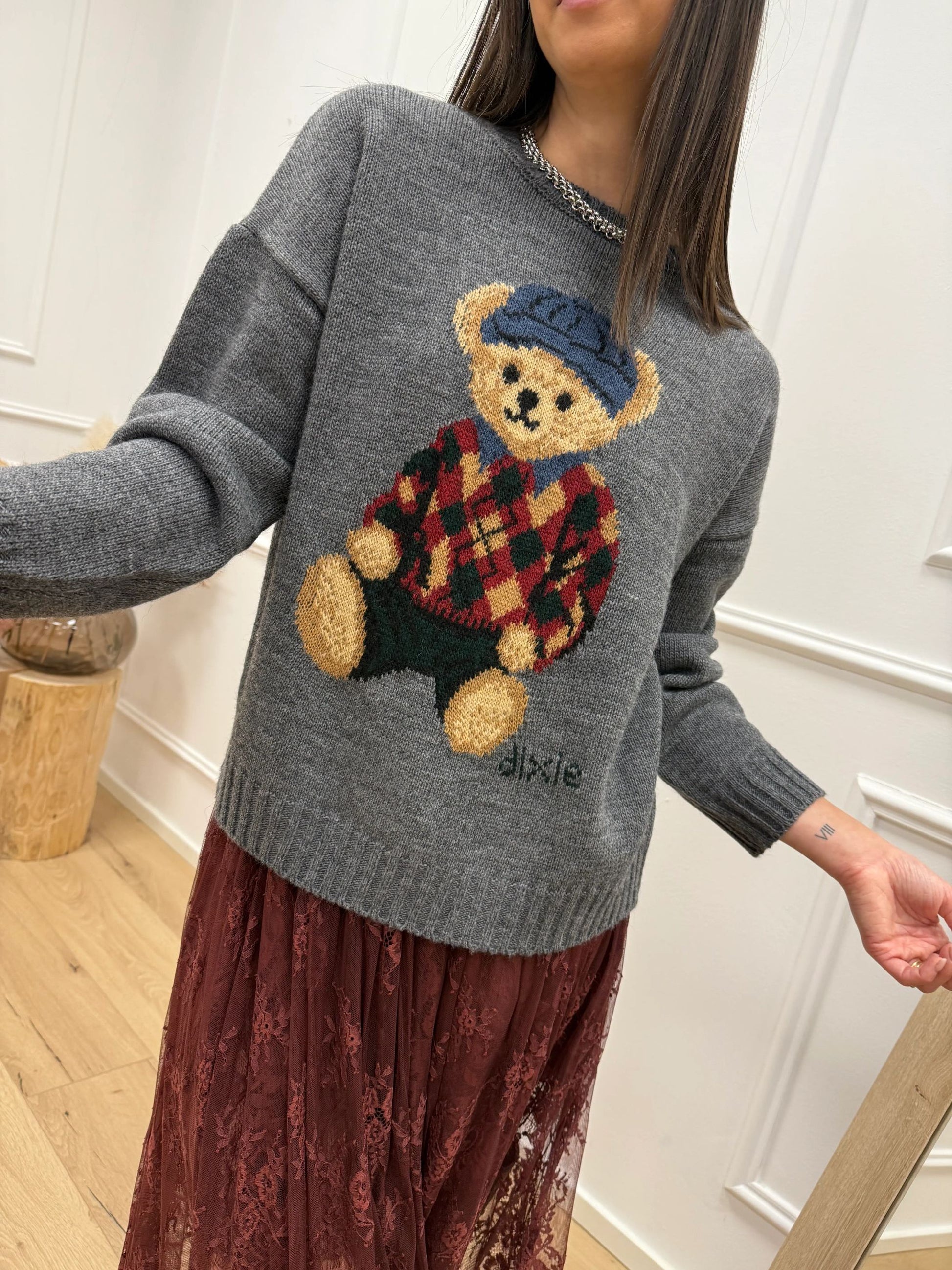 Maglia grigia teddy multicolor - Dixie
