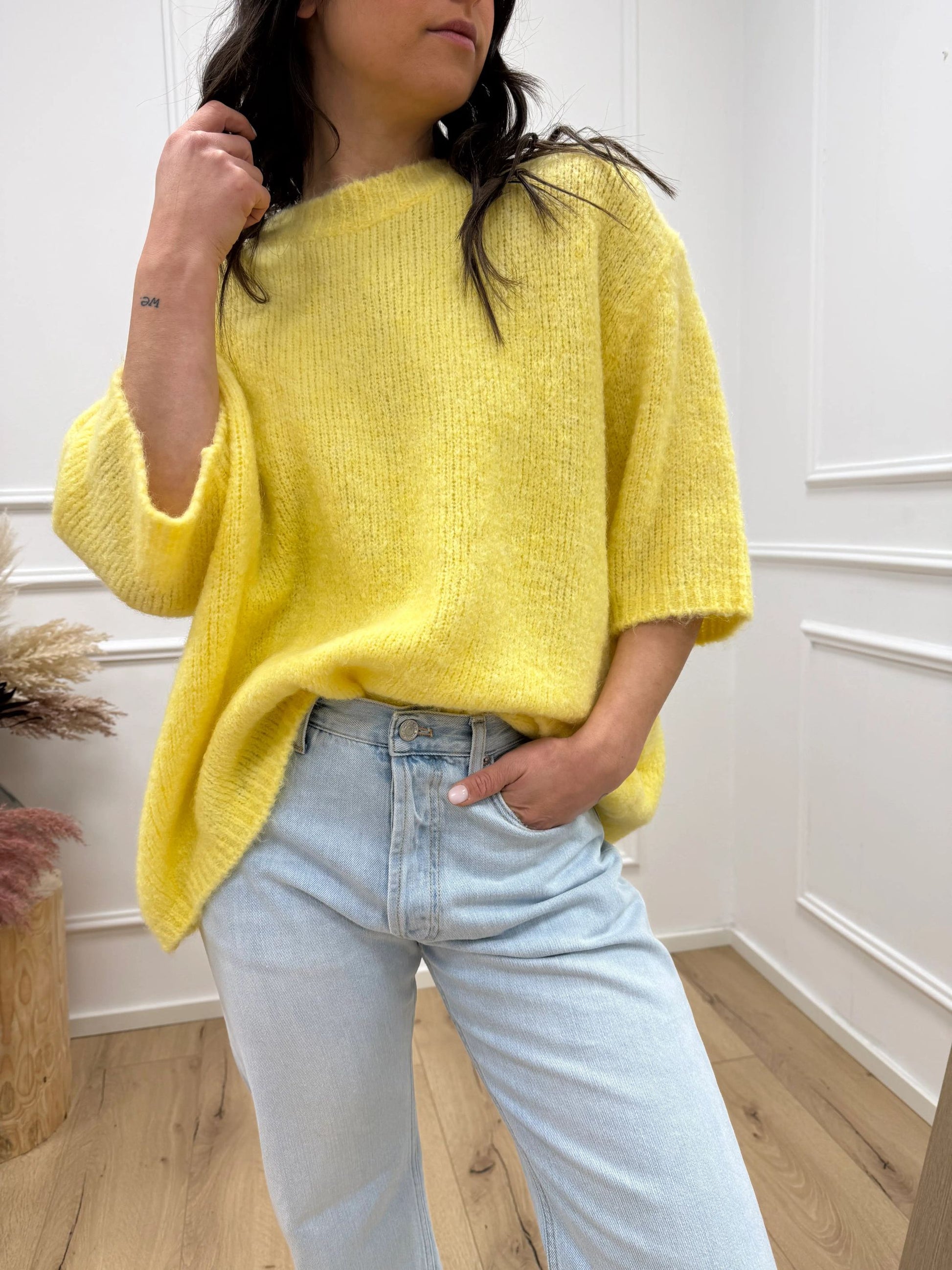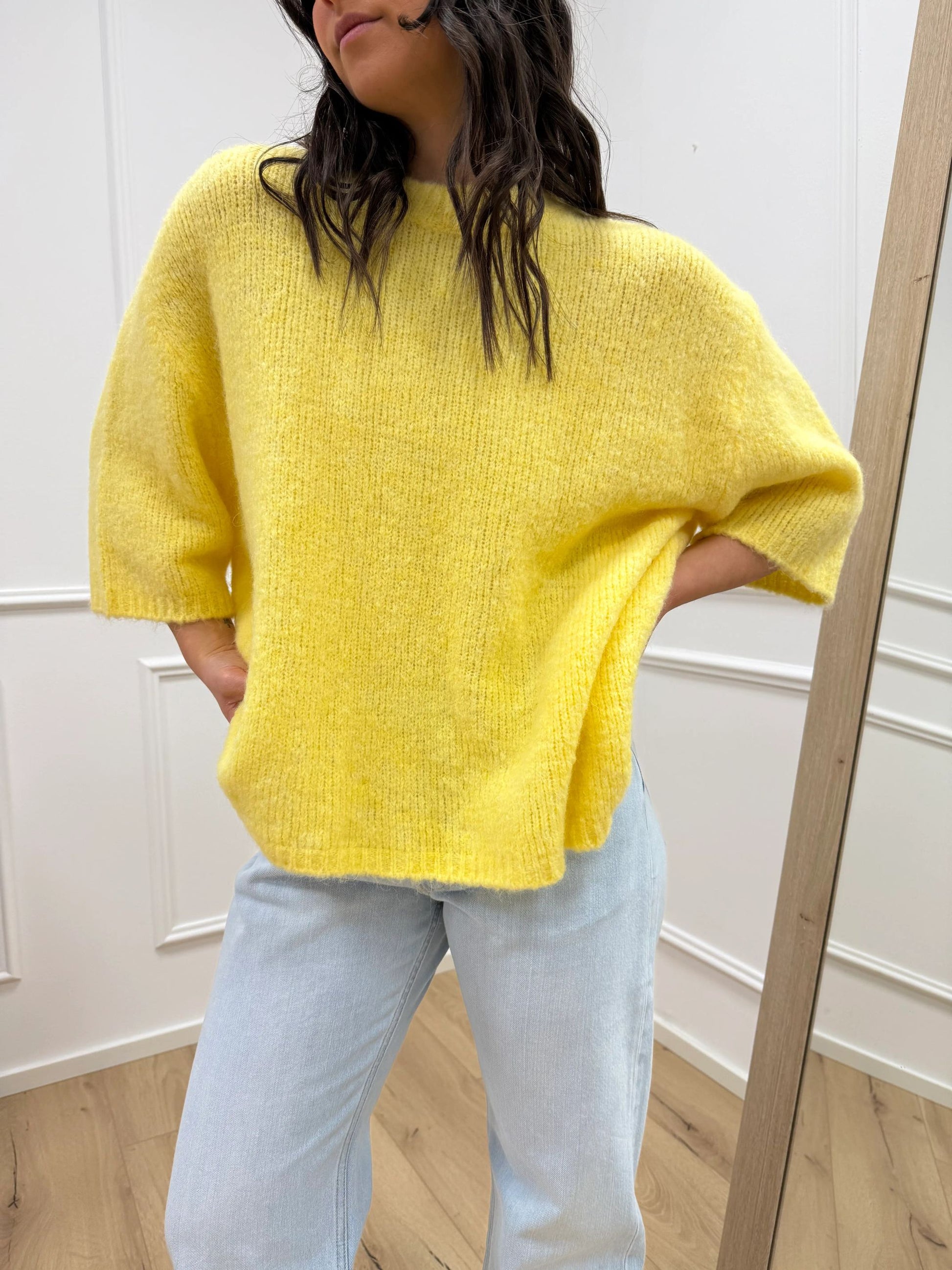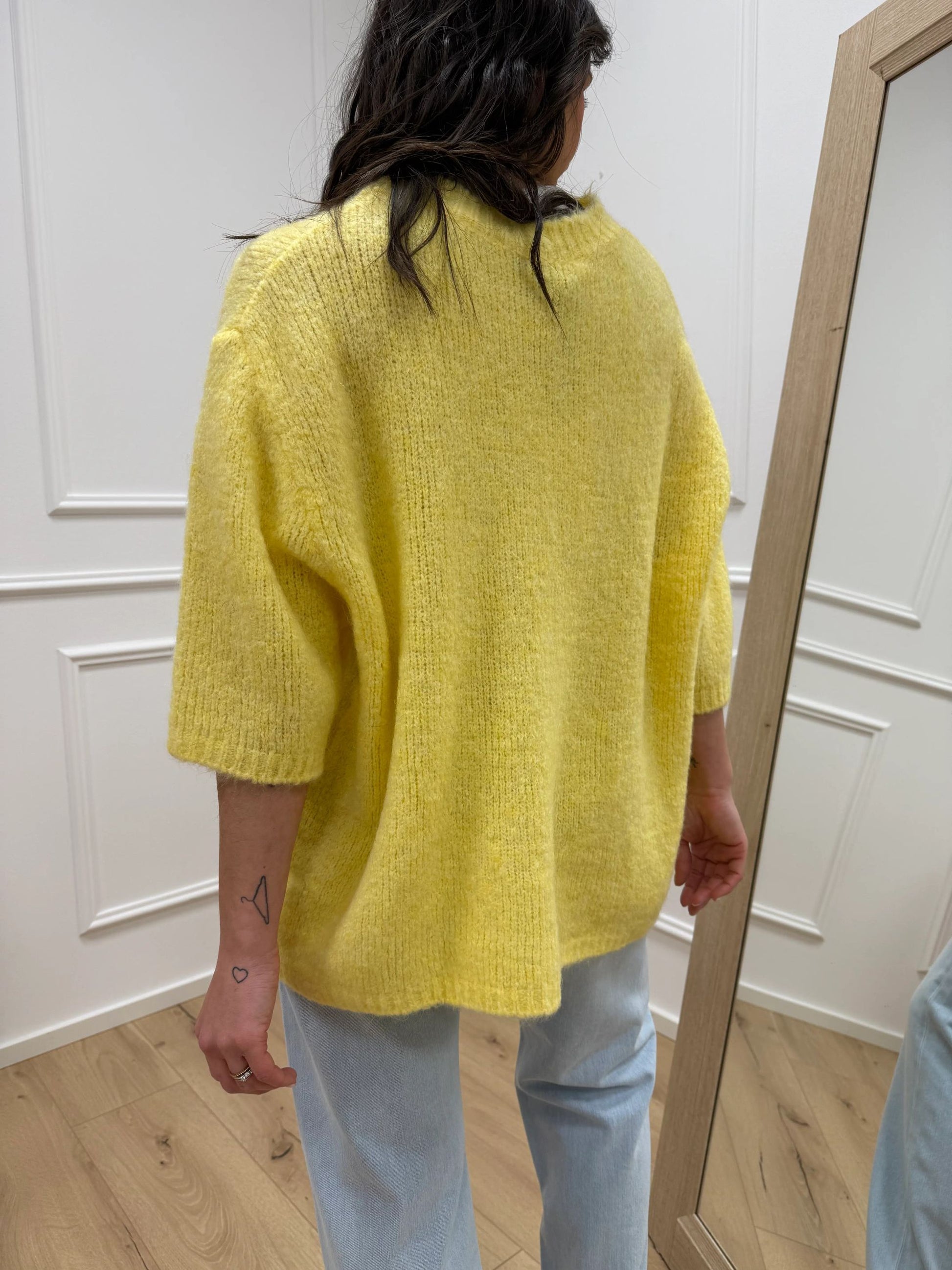 Maglia misto lana e mohair color giallo HaveOne. Modello fit morbido girocollo con manica a 3/4. Finiture a coste.