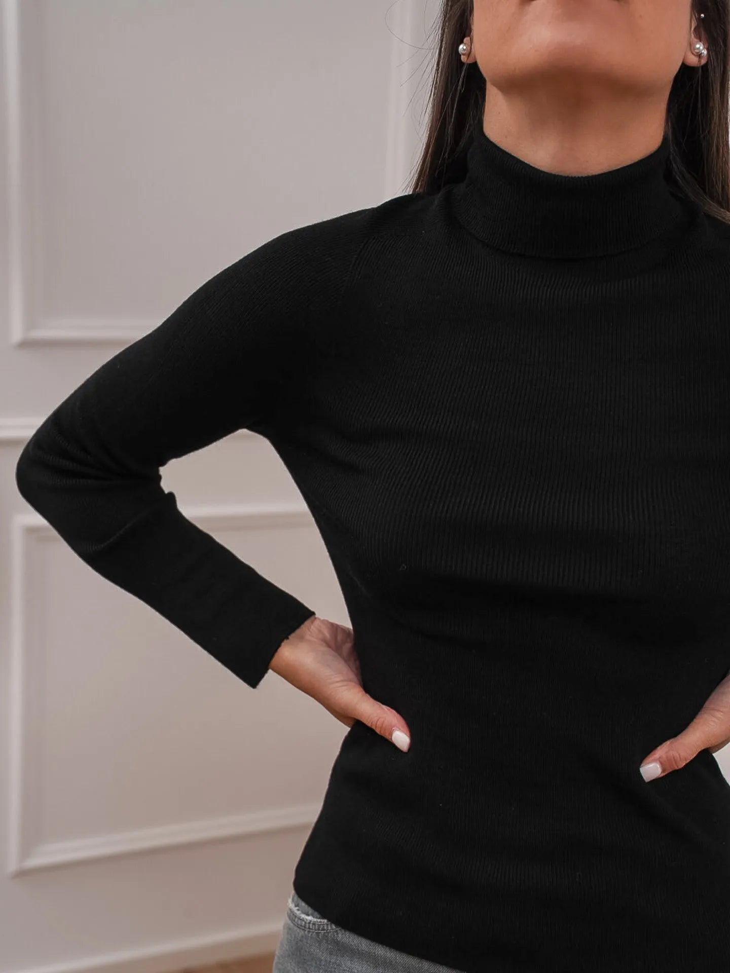 Maglia color nero a costine HaveOne. Modello fit aderente dolcevita a collo alto e maniche lunghe.