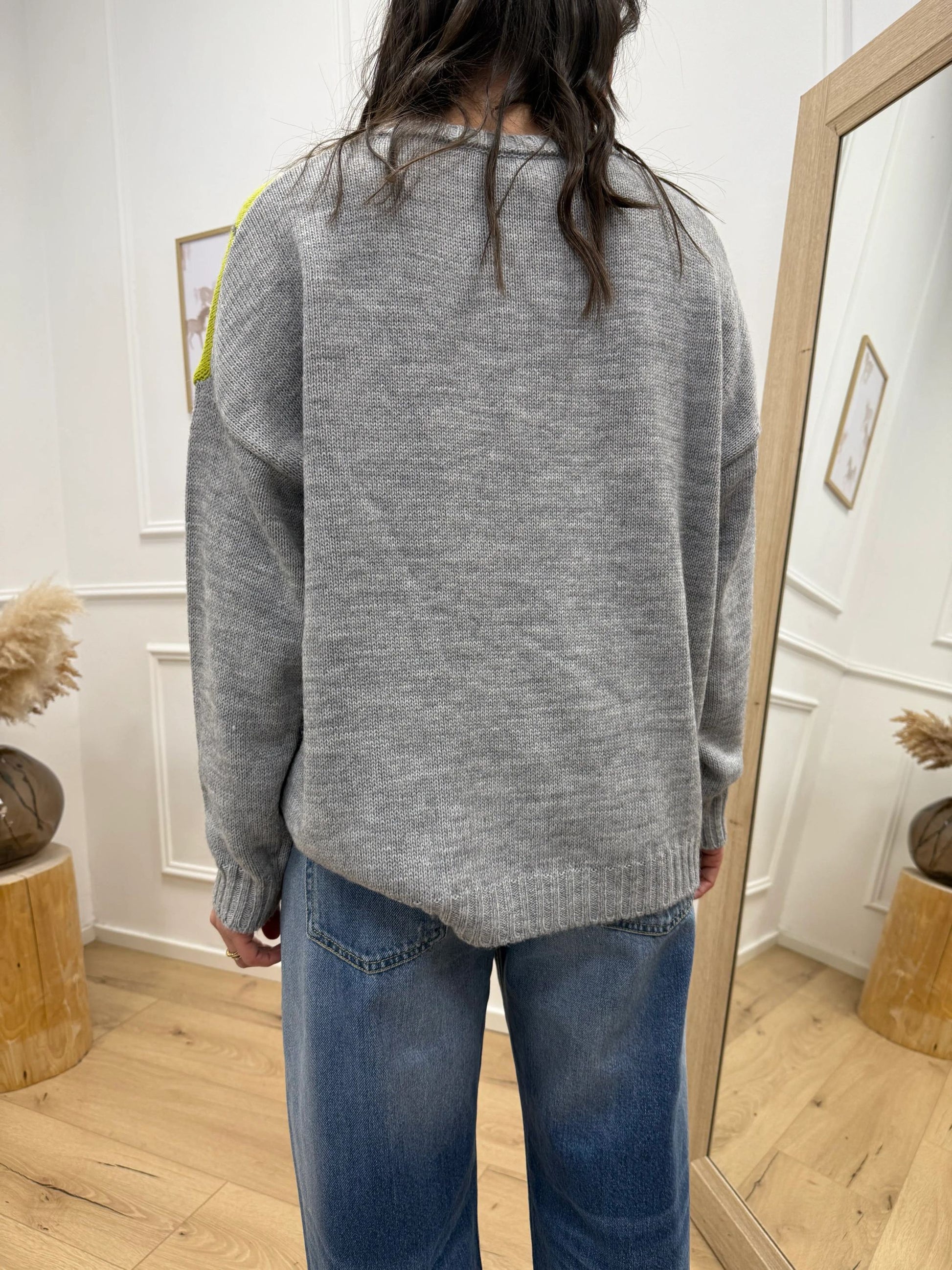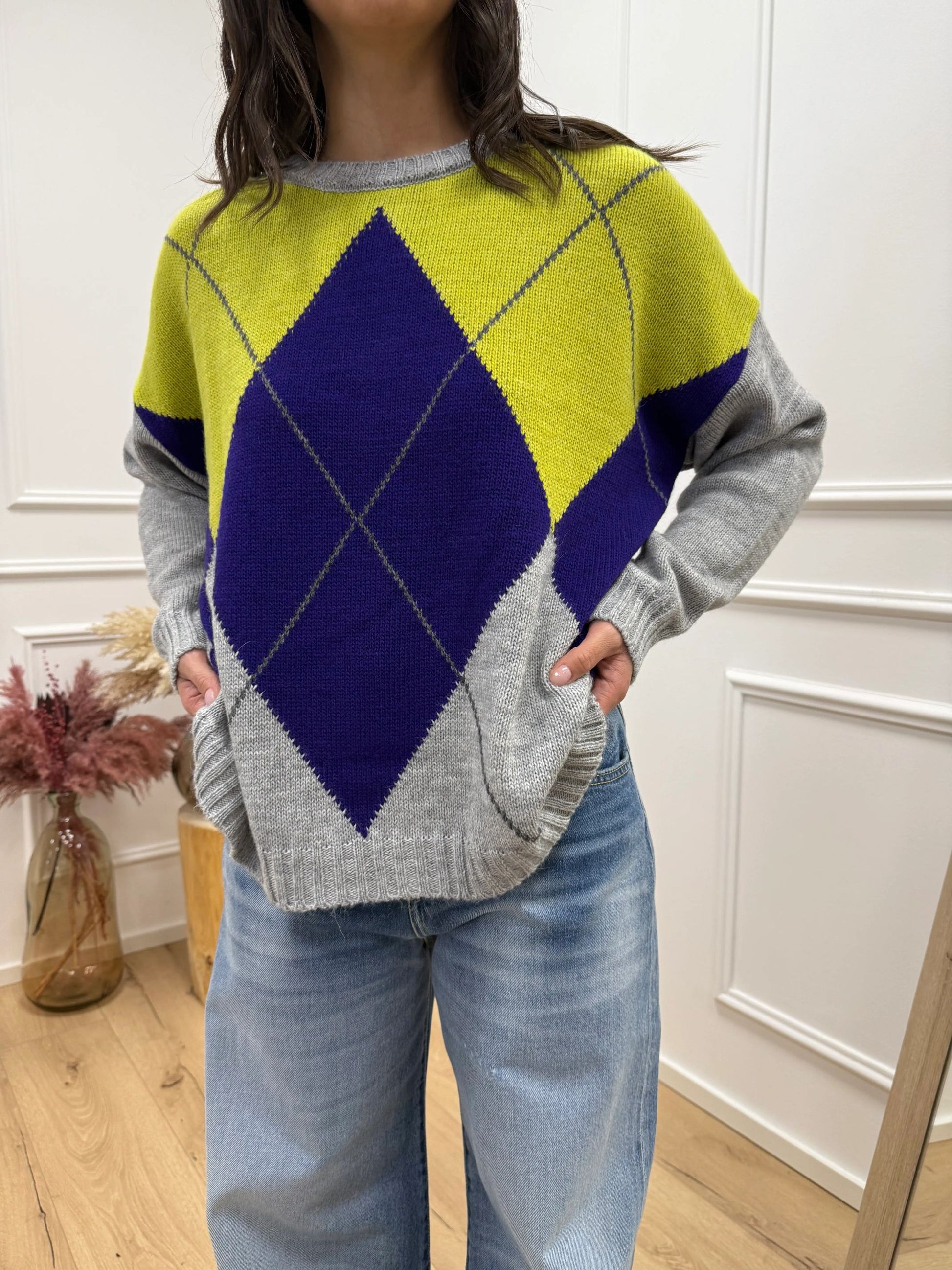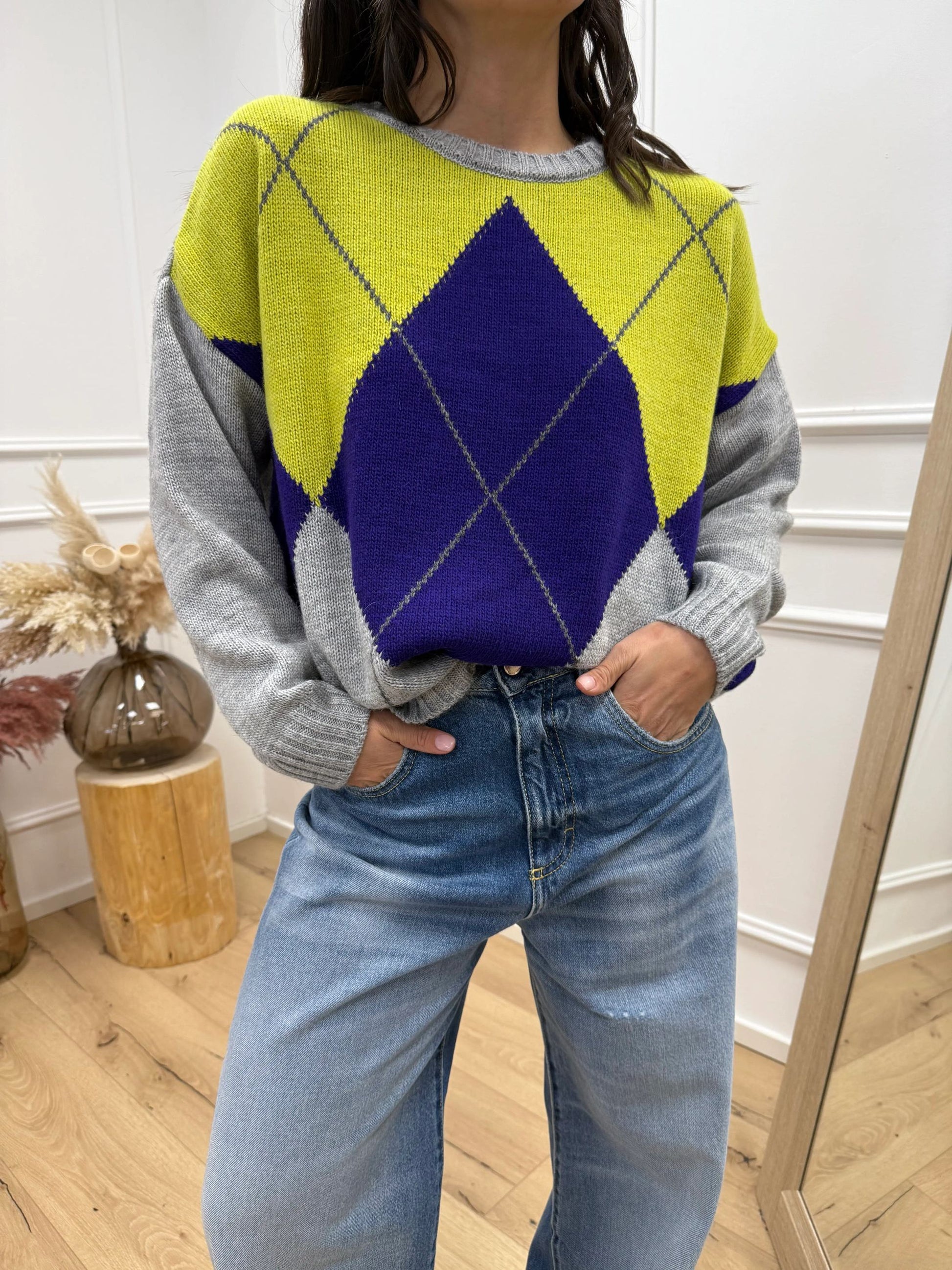 Maglia over rombi grigio, viola, lime e antracite - HaveOne