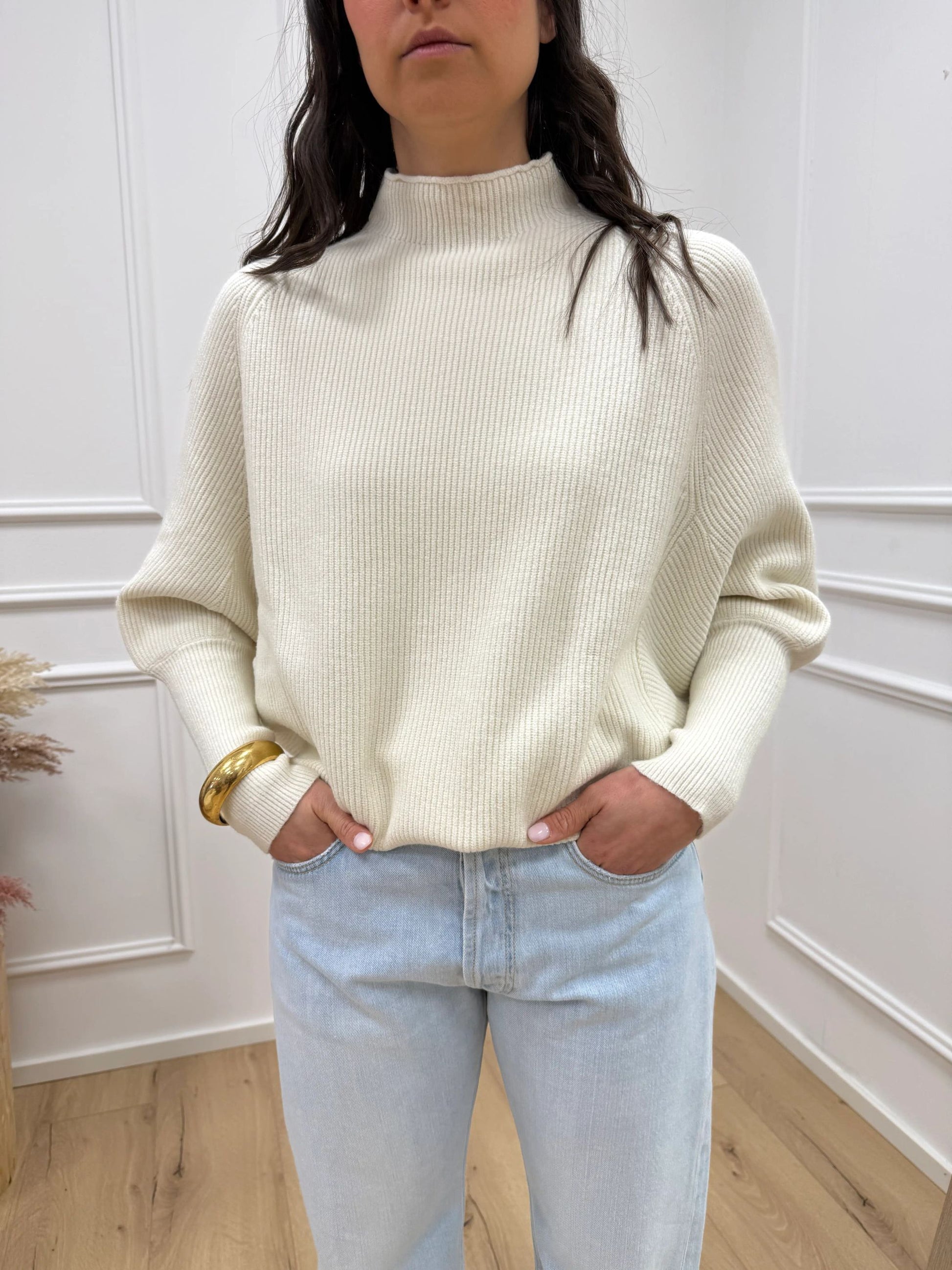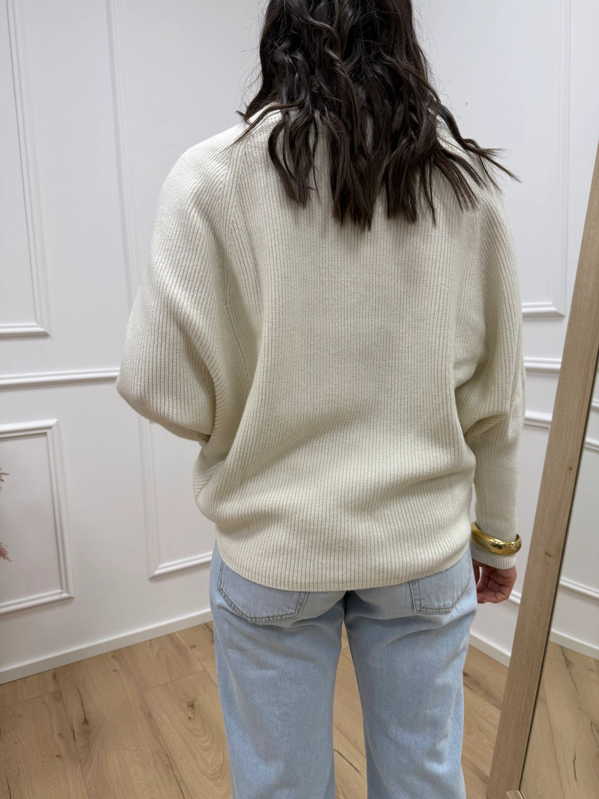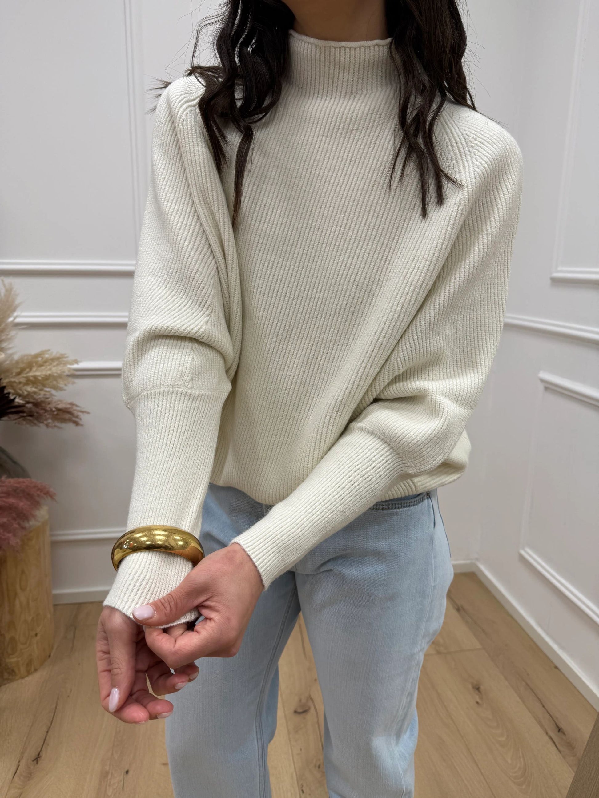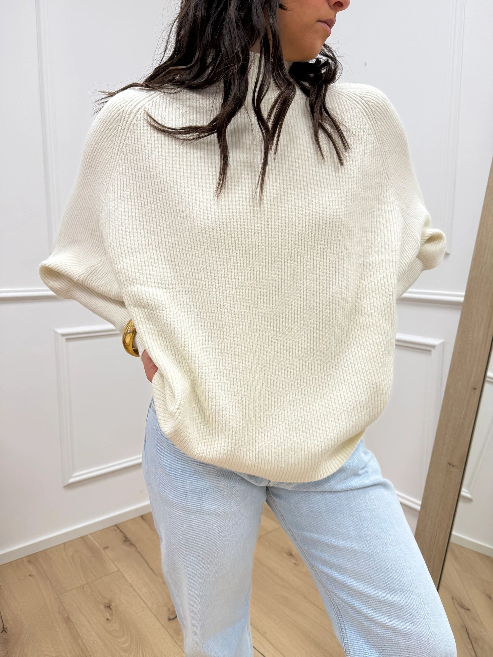 Maglia pipistrello panna a collo alto - HaveOne