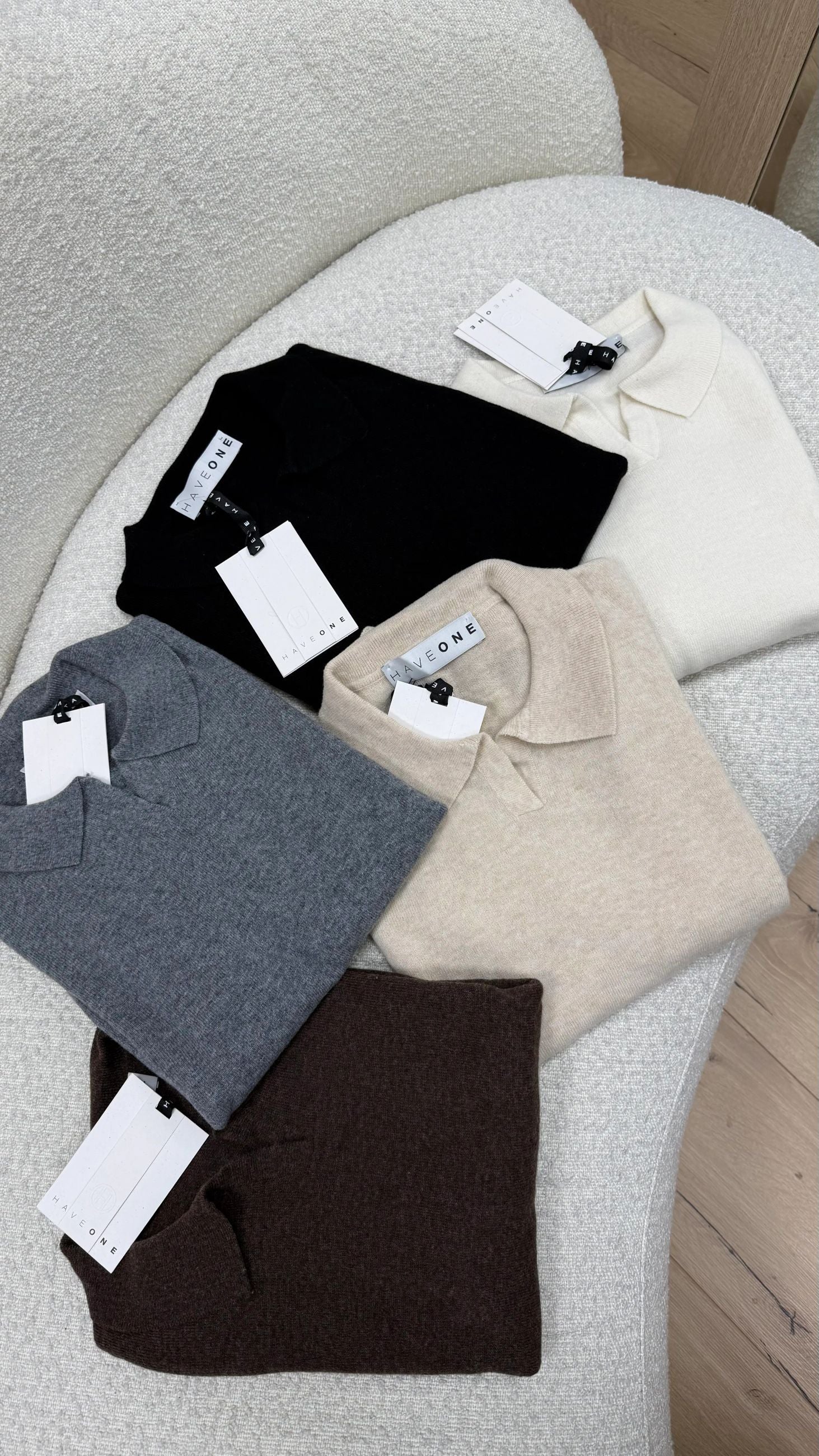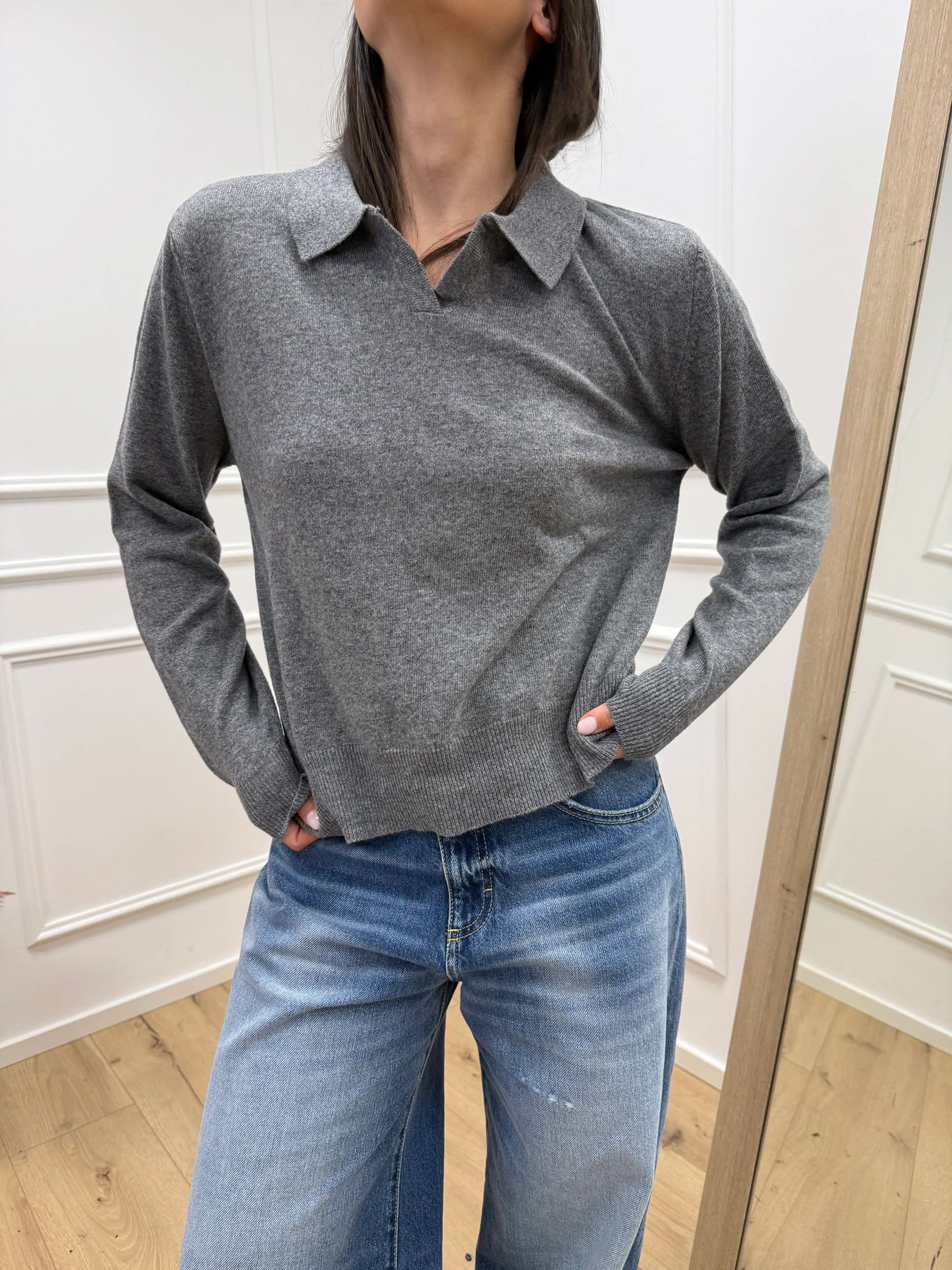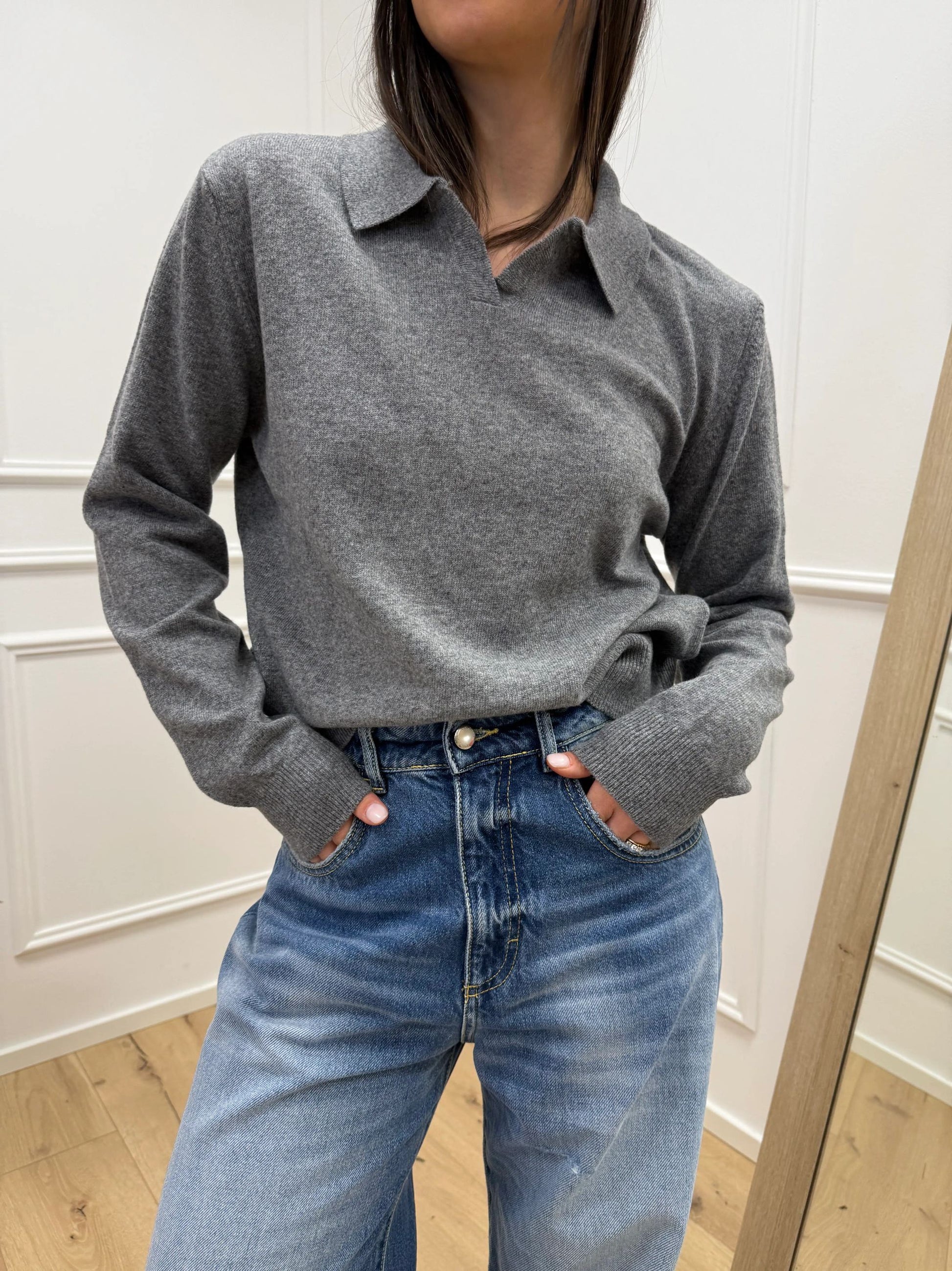 Maglia color grigio HaveOne. Modello con colletto stile polo e maniche lunghe.
