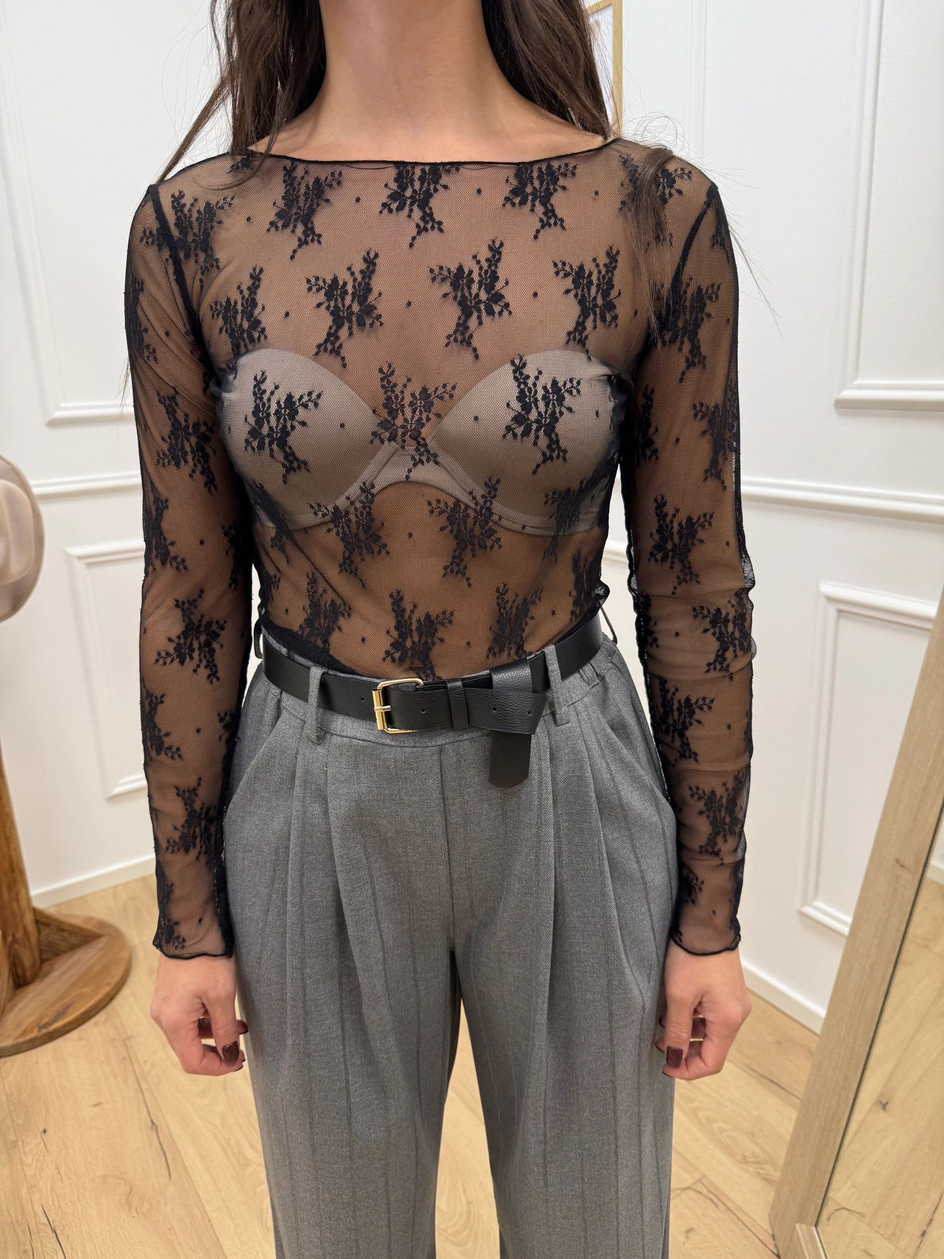 Maglia sottogiacca in pizzo nera - Vicolo