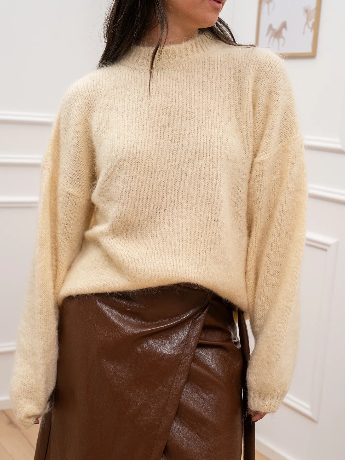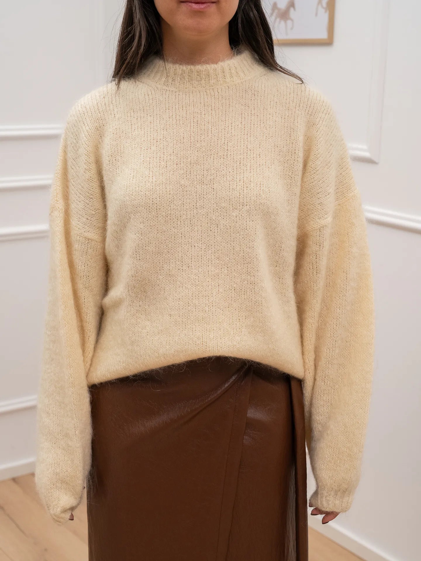 Maglia over in misto mohair vaniglia Tensione In. Modello girocollo con manica a palloncino.