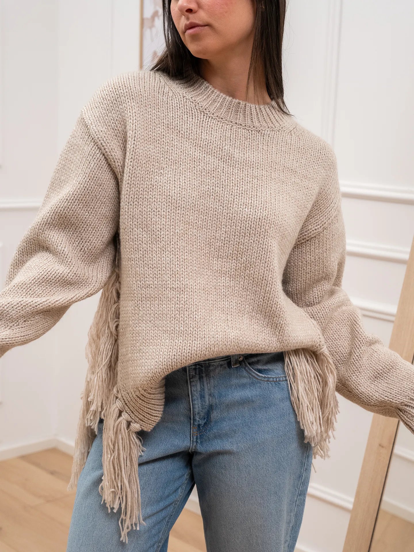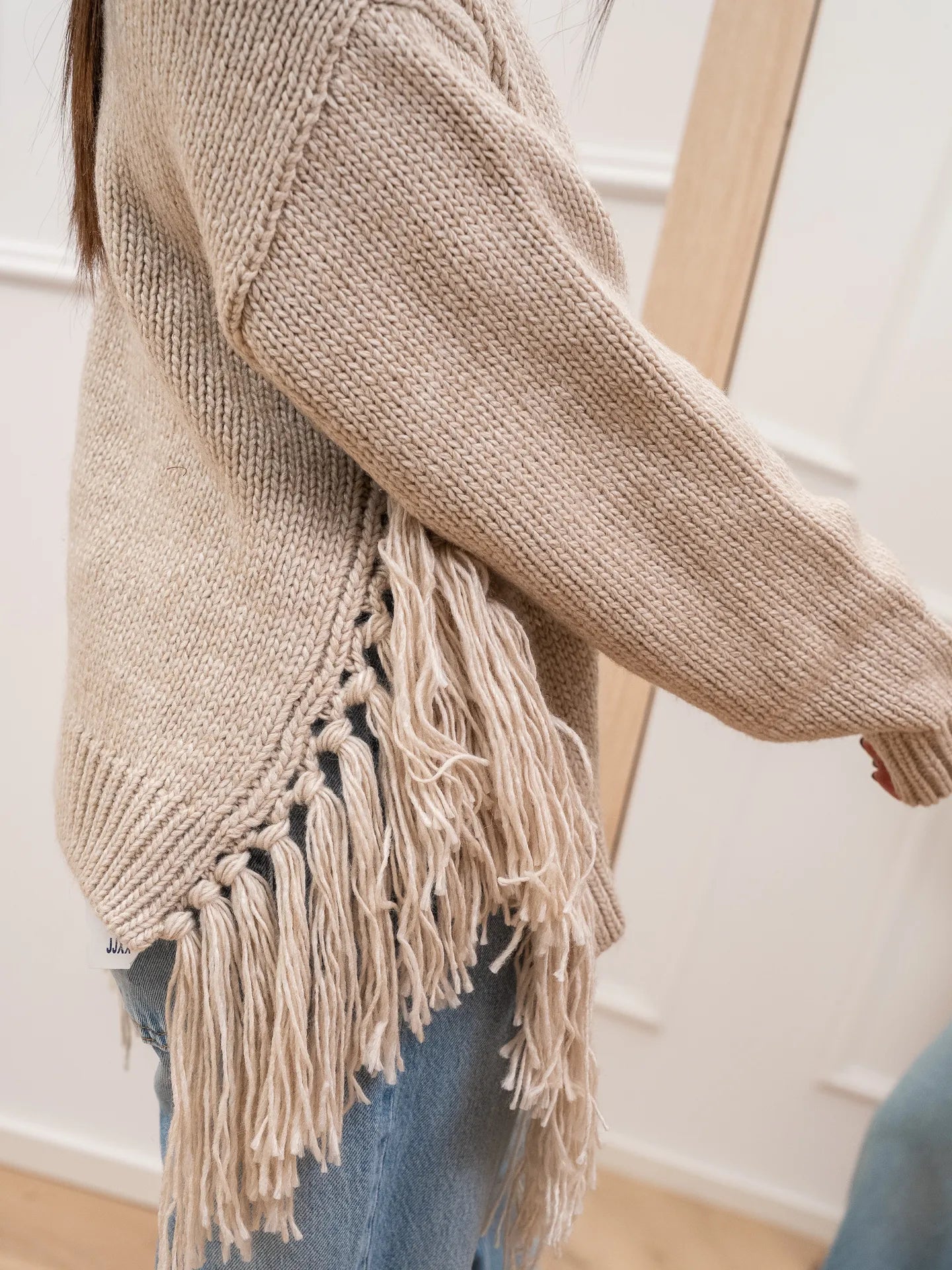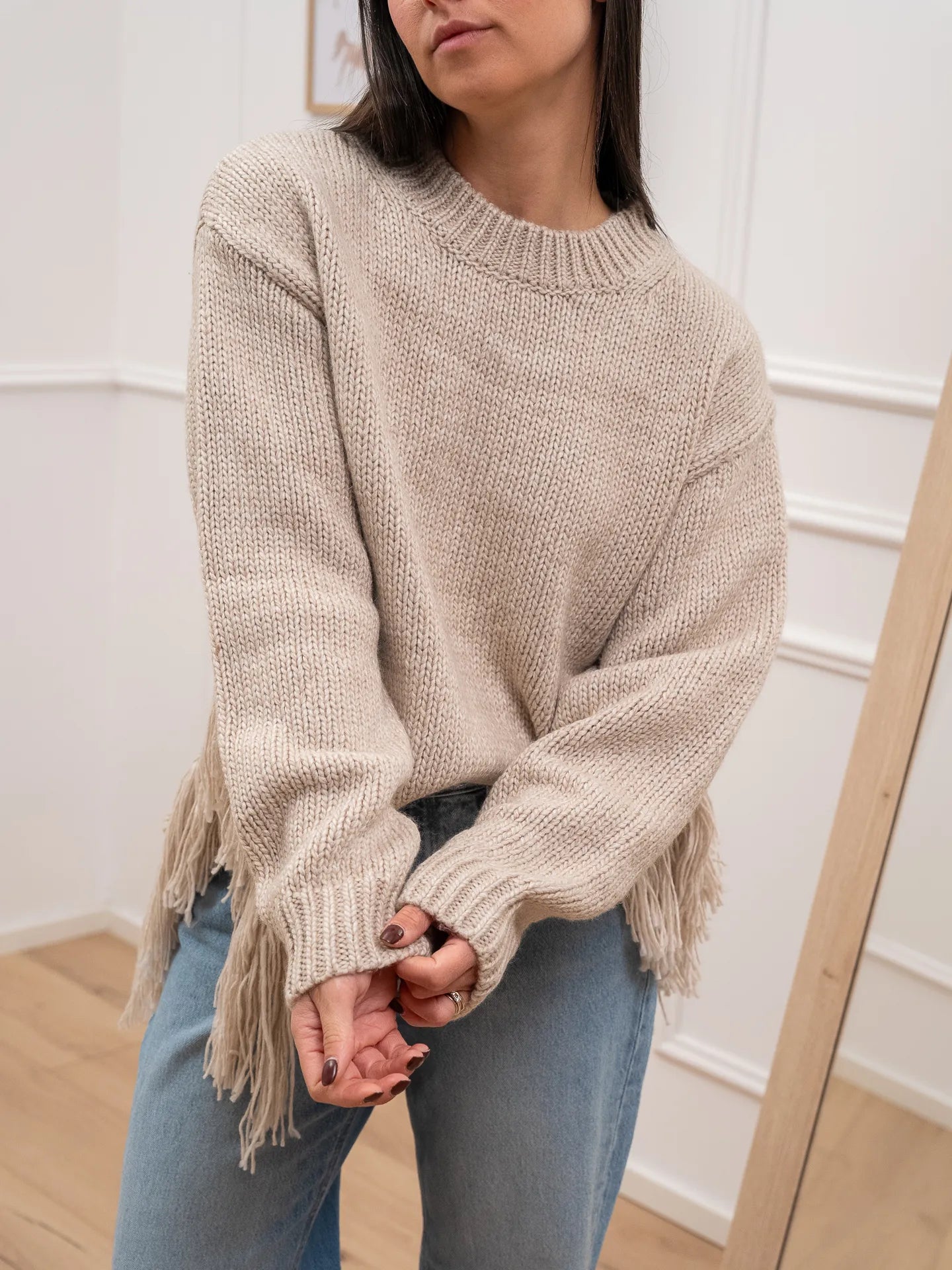 Maglione taupe con spacchi laterali e frange - Glamorous