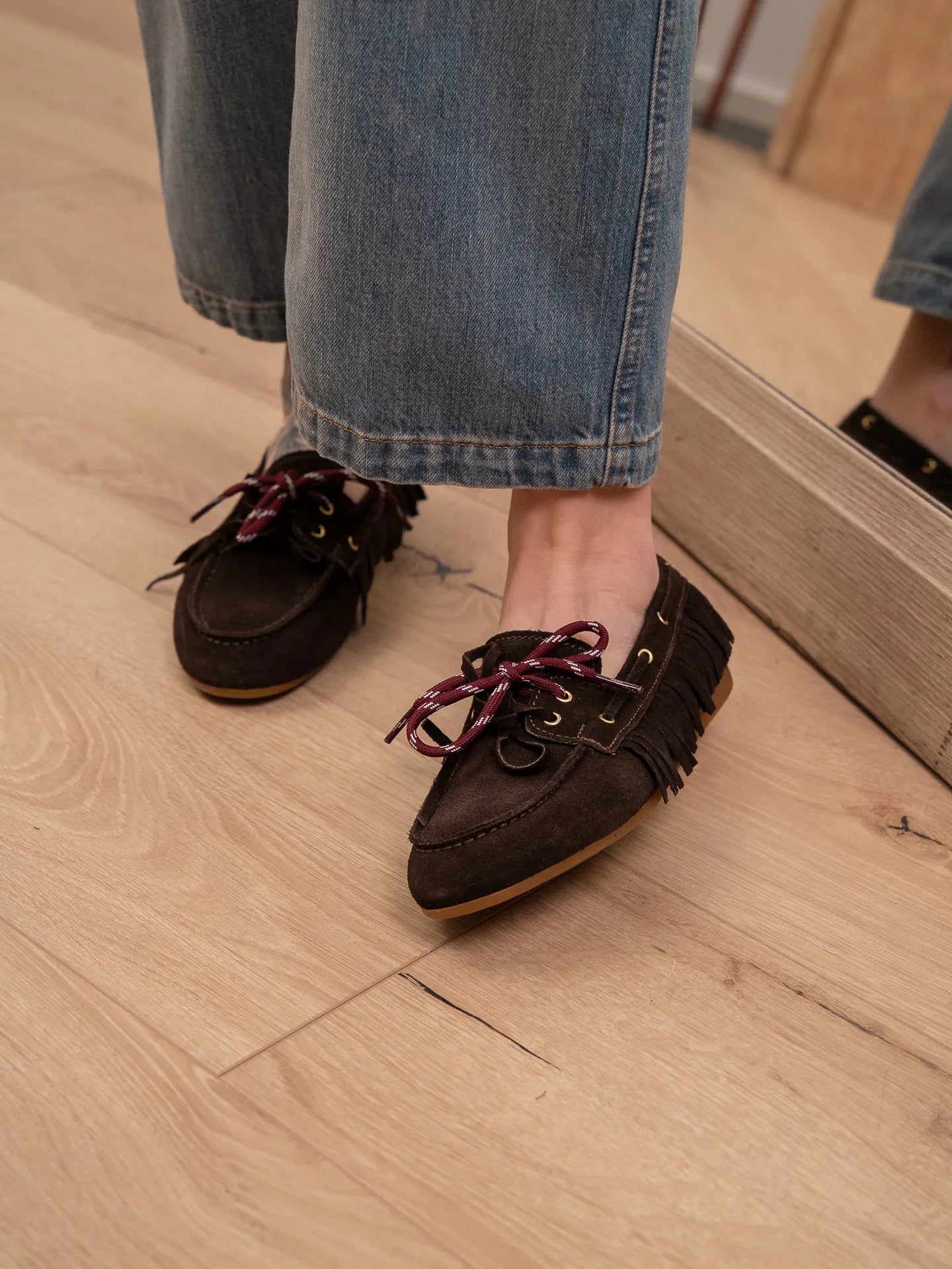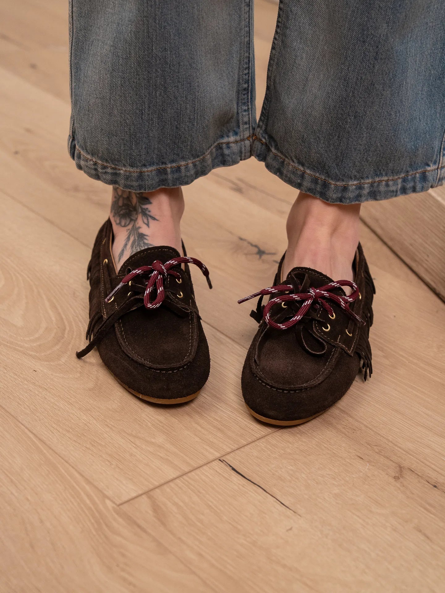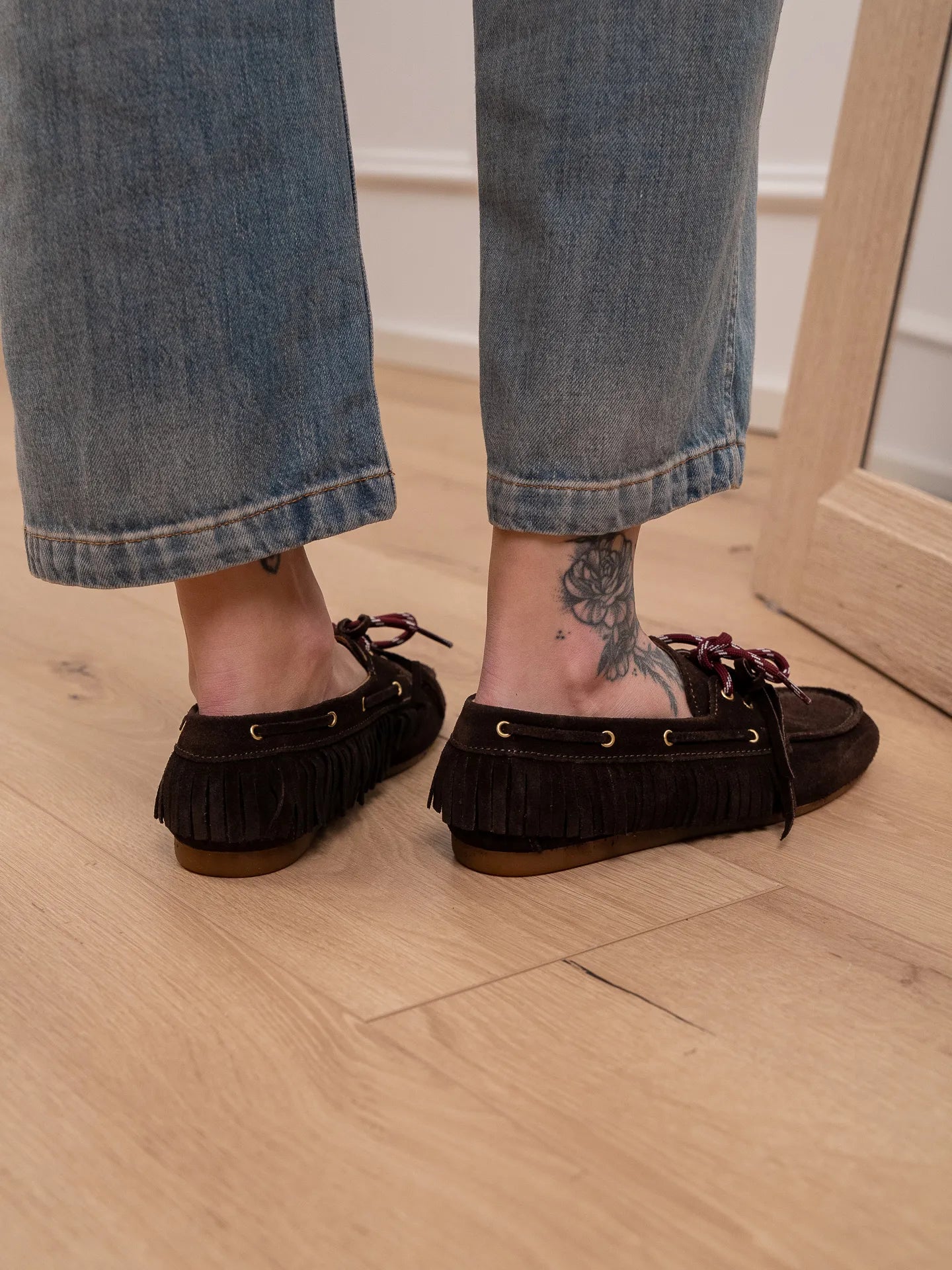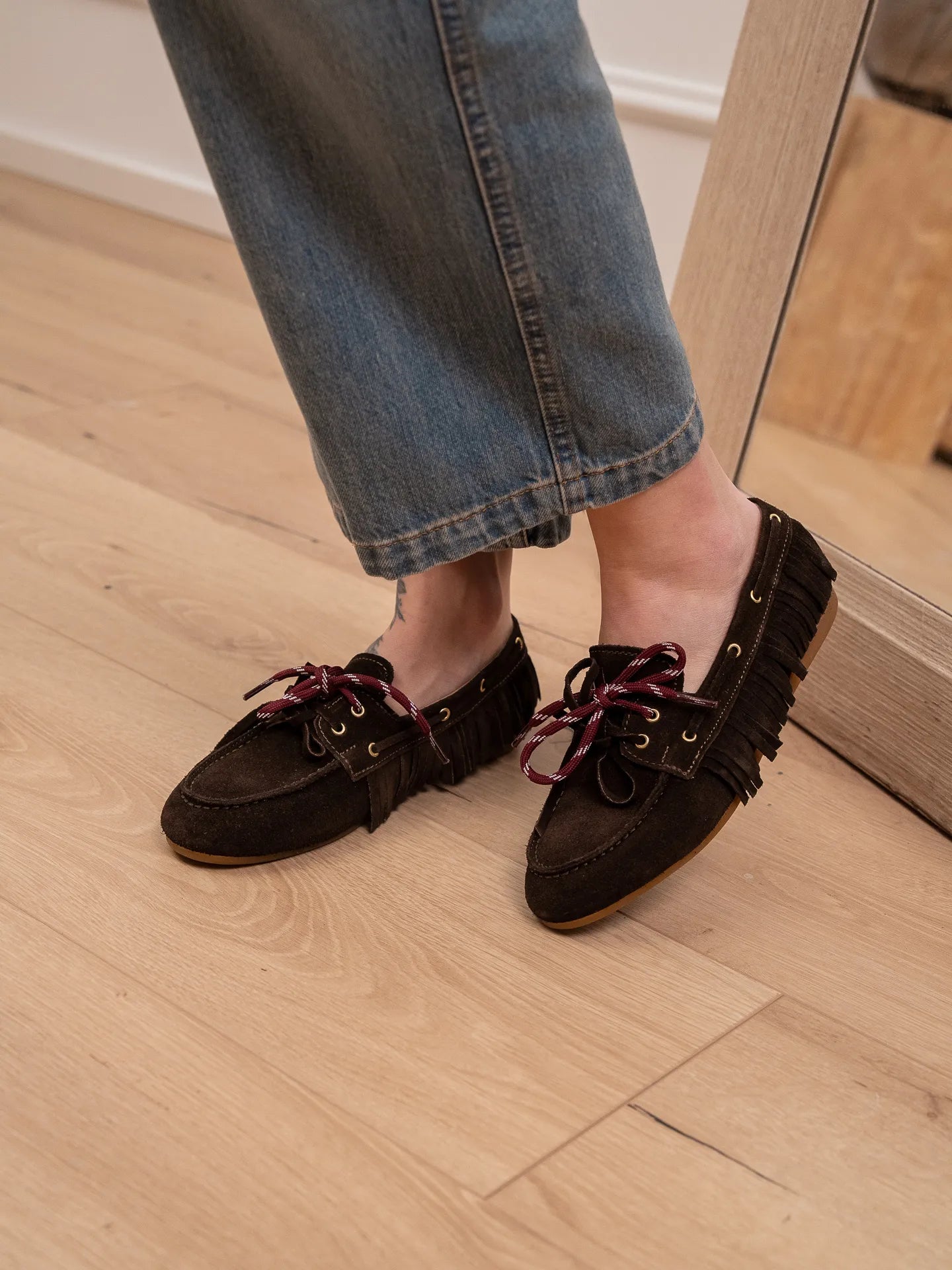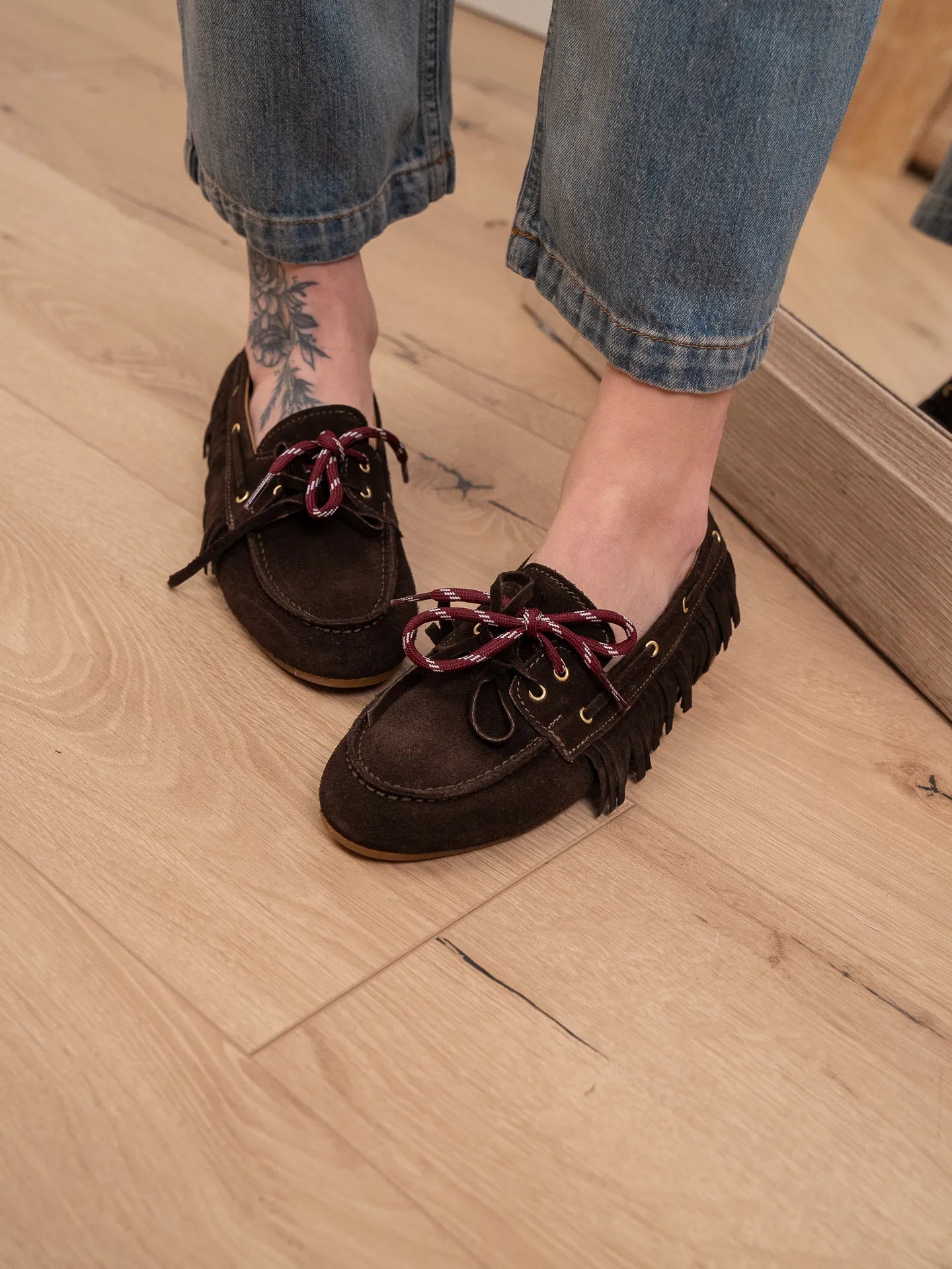 Mocassino scamosciato moro con frange - Ovyè
