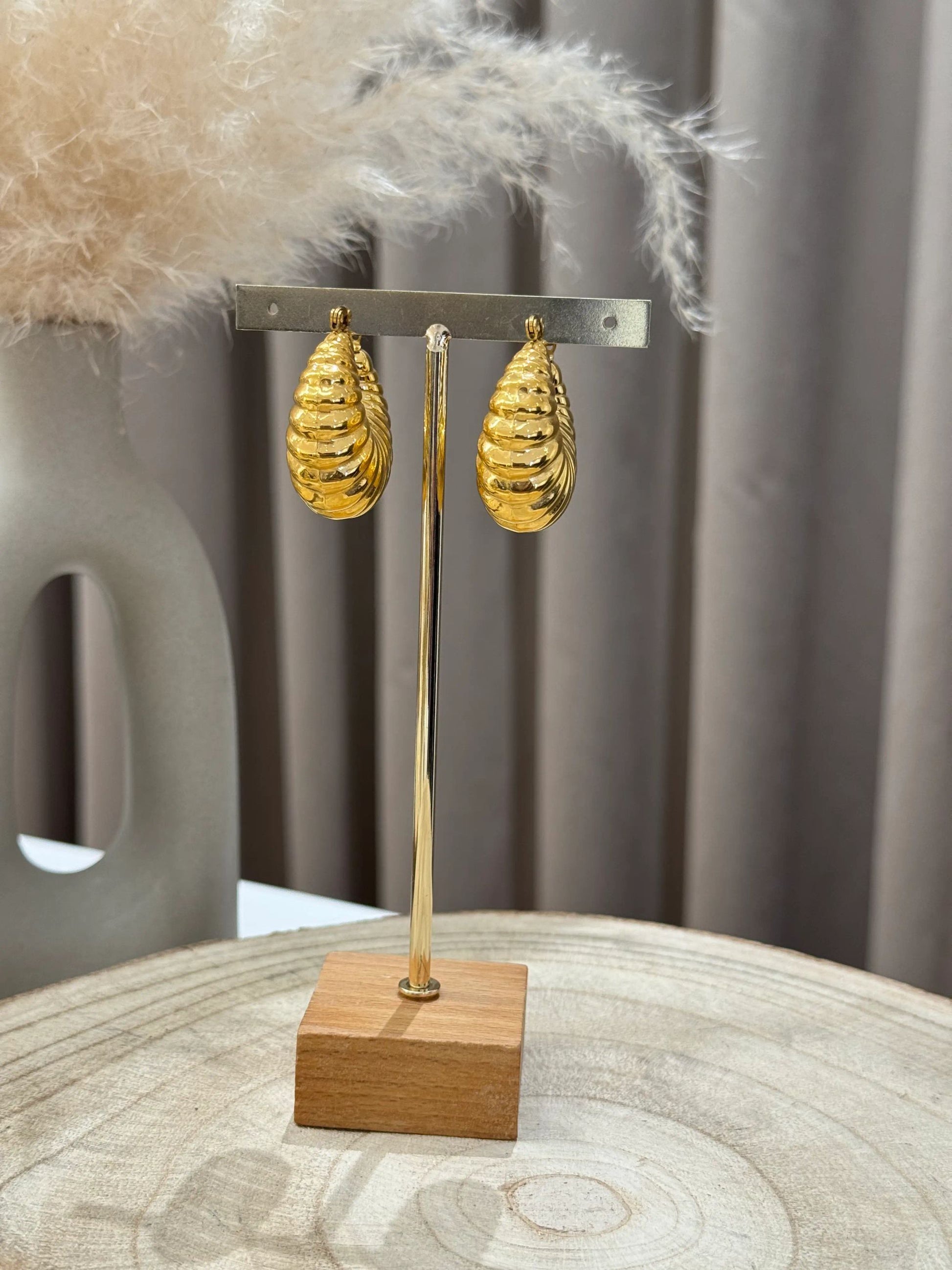 Orecchini balloon rigati oro. In acciaio inossidabile.