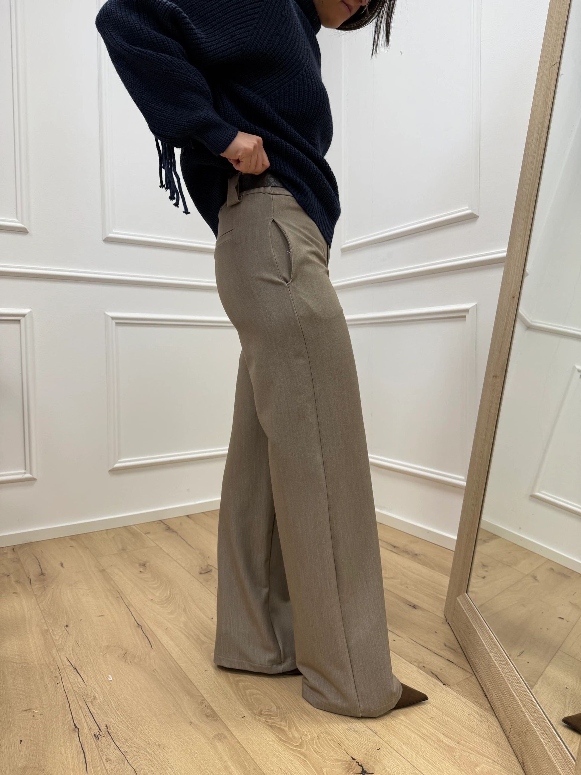 Pantaloni basic a palazzo beige con cintura - HaveOne