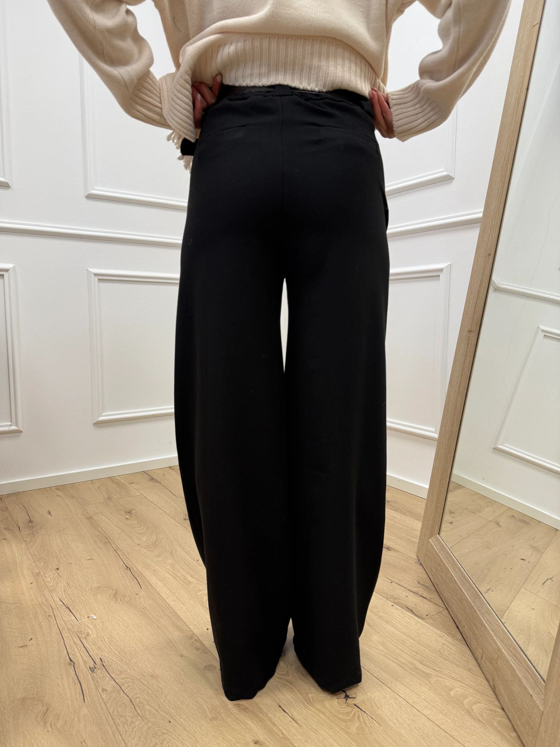 Pantaloni basic a palazzo nero con cintura - HaveOne