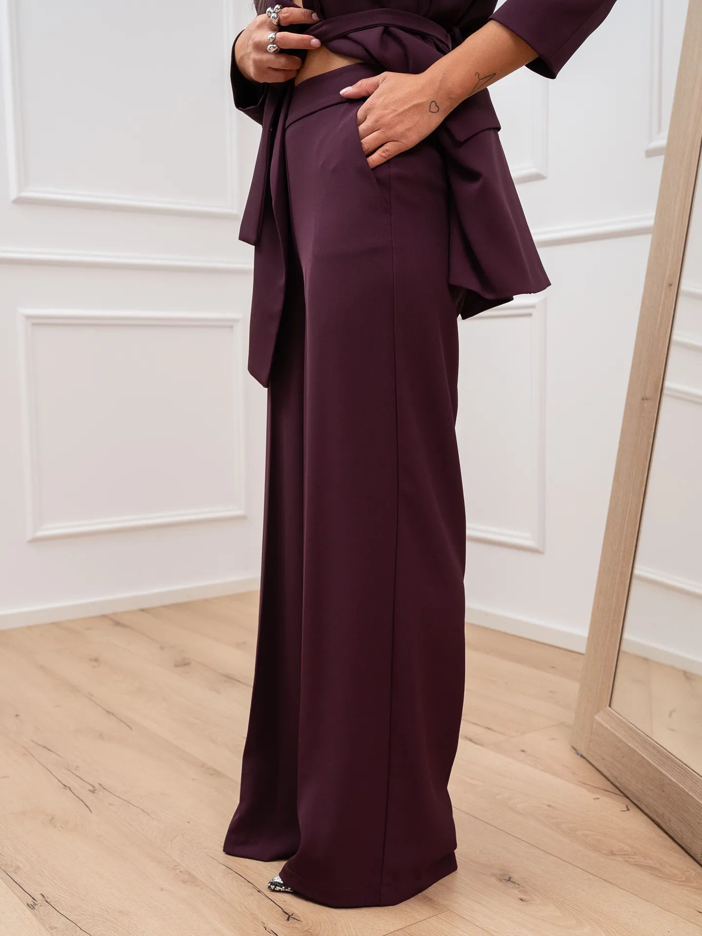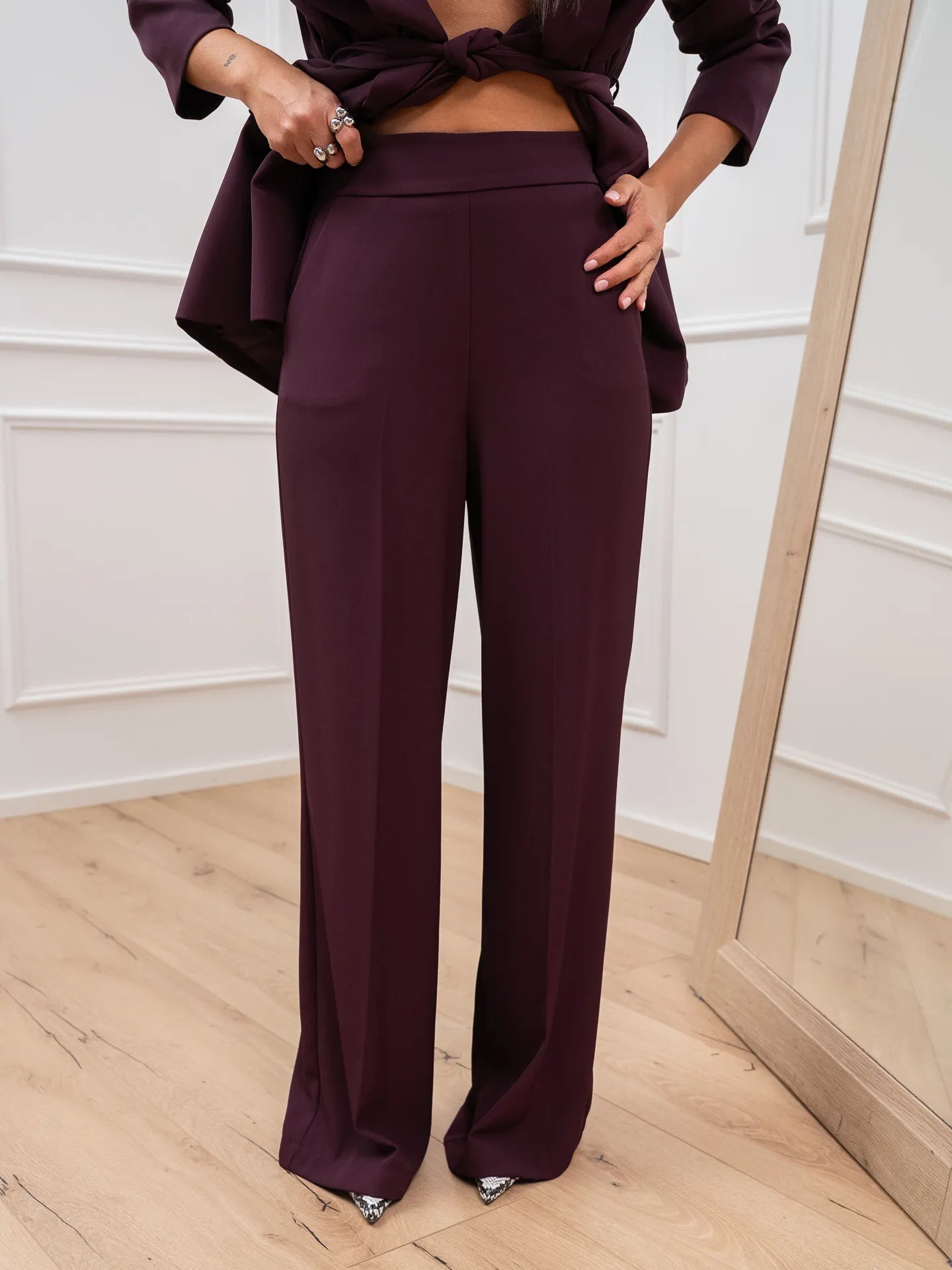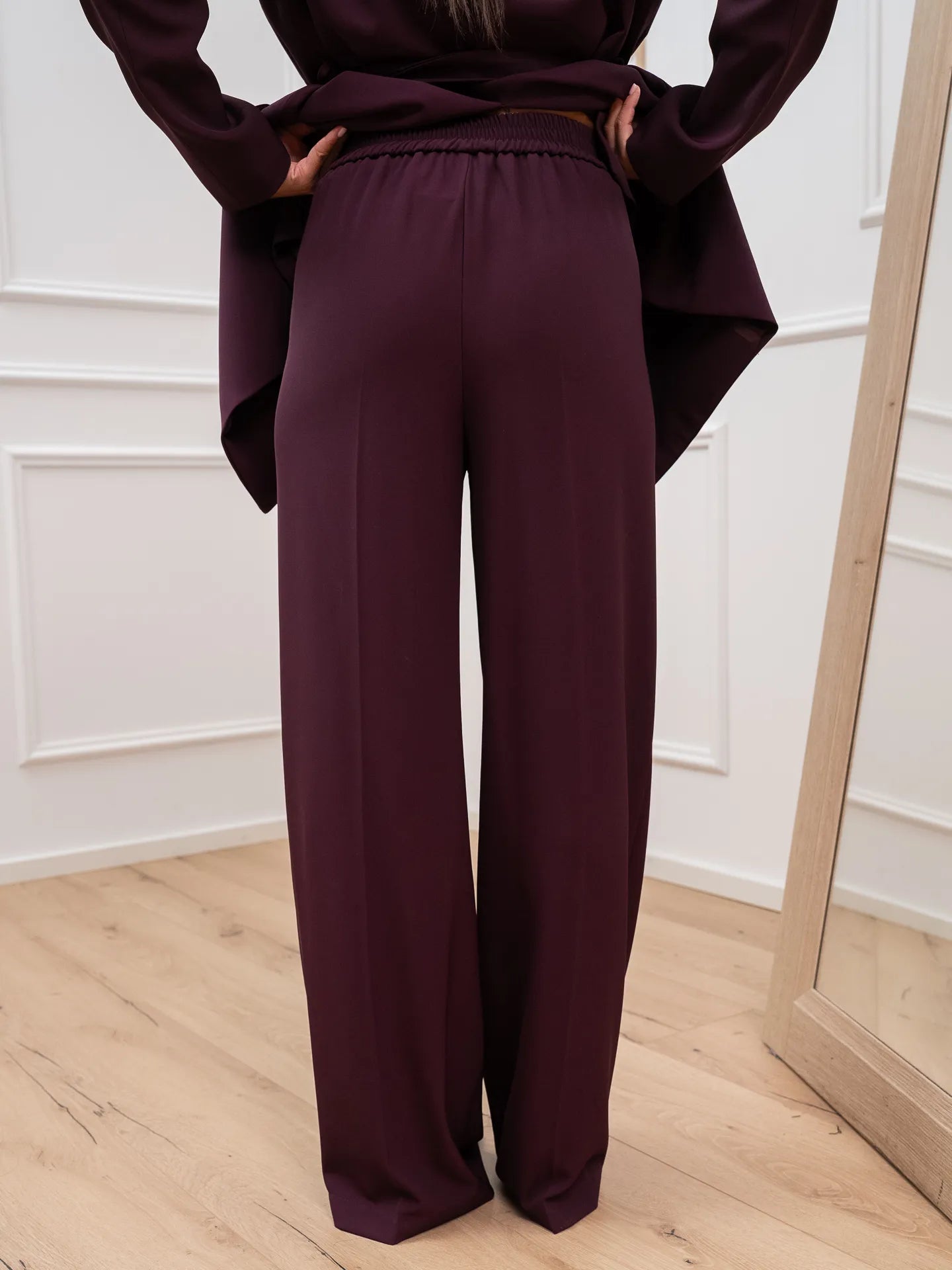 Pantaloni color bordeaux Vicolo. Modello basic a palazzo con vita alta e molla elasticizzata sul retro. Tasche laterali.