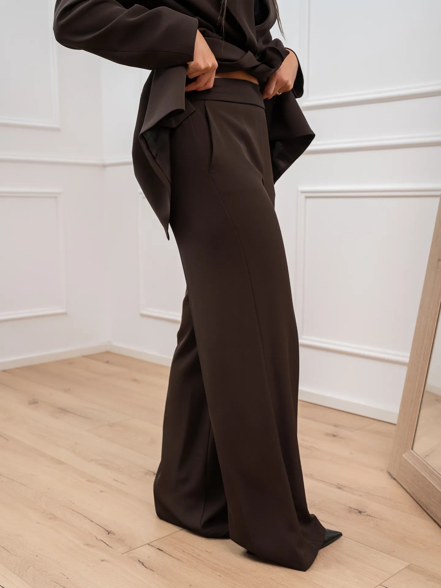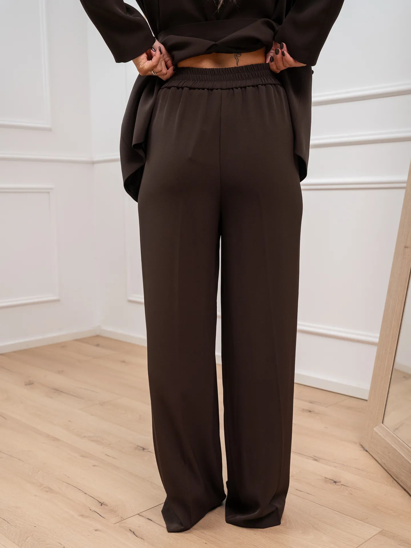 Pantaloni color fondente Vicolo. Modello basic a palazzo con vita alta e molla elasticizzata sul retro. Tasche laterali.