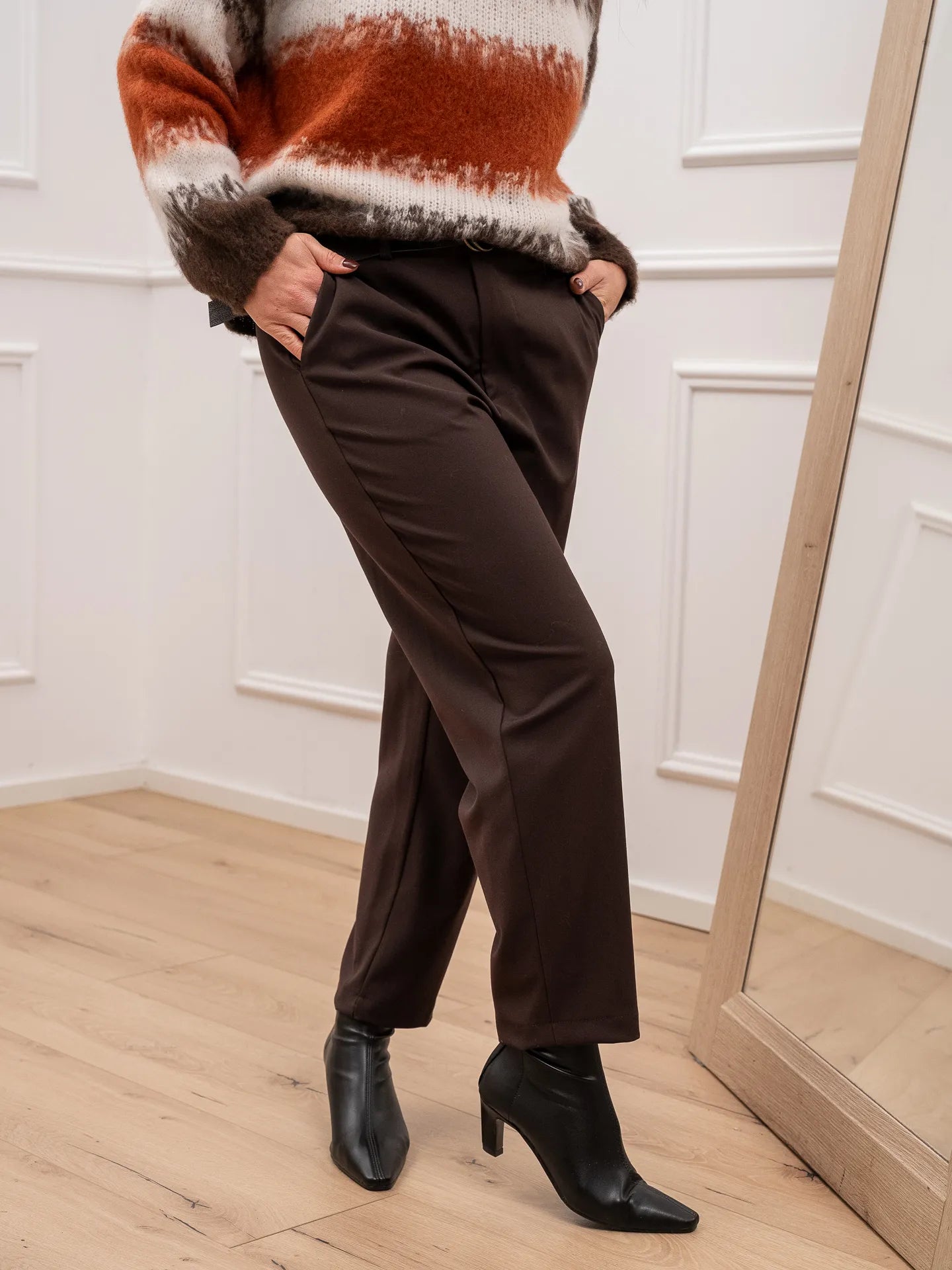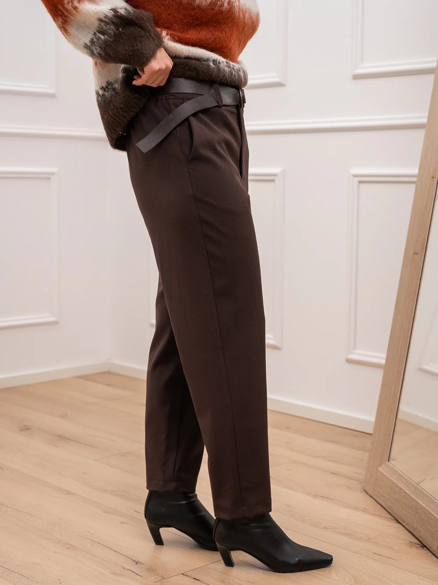Pantaloni basic moro a sigaretta con cintura - HaveOne