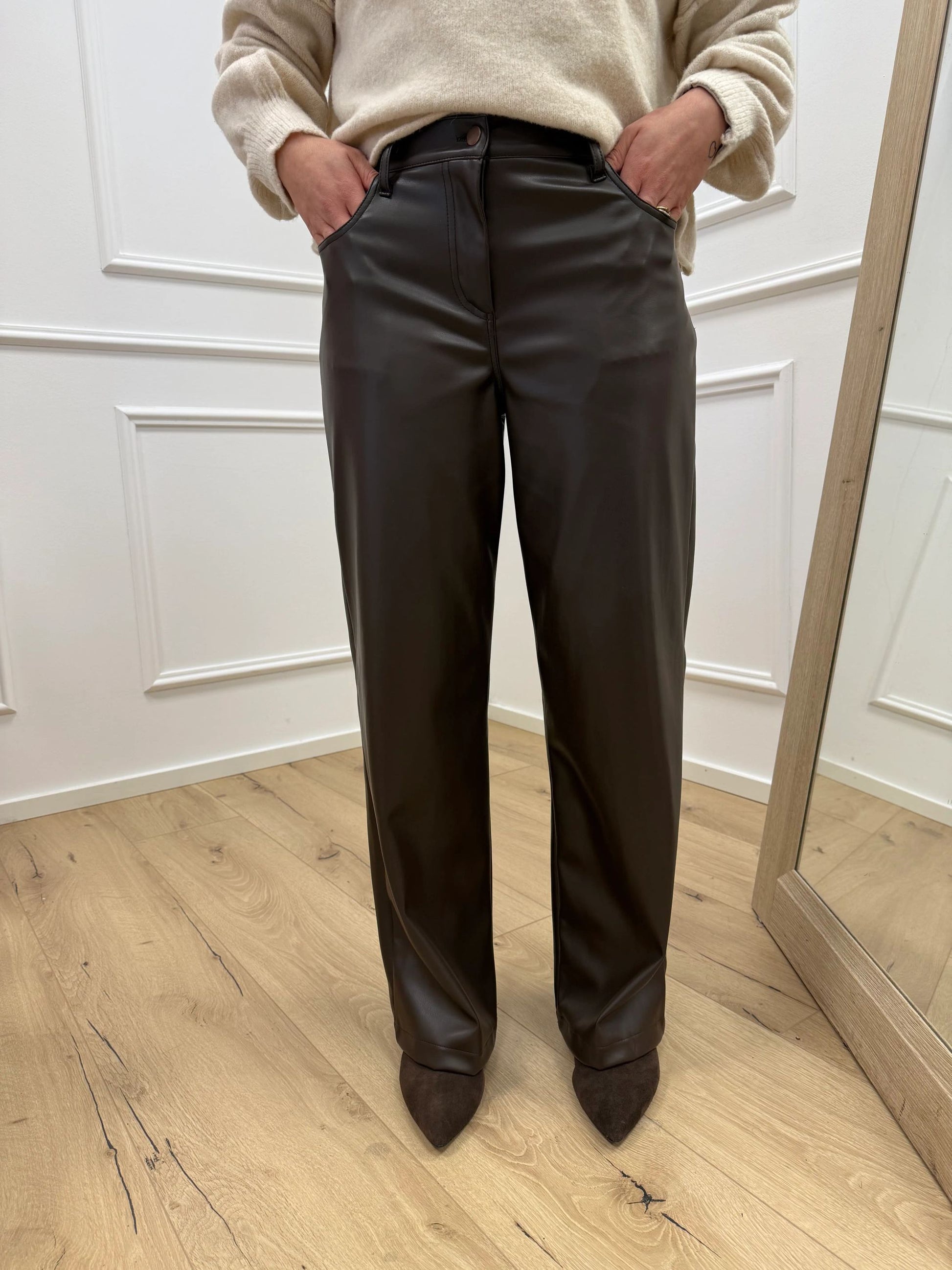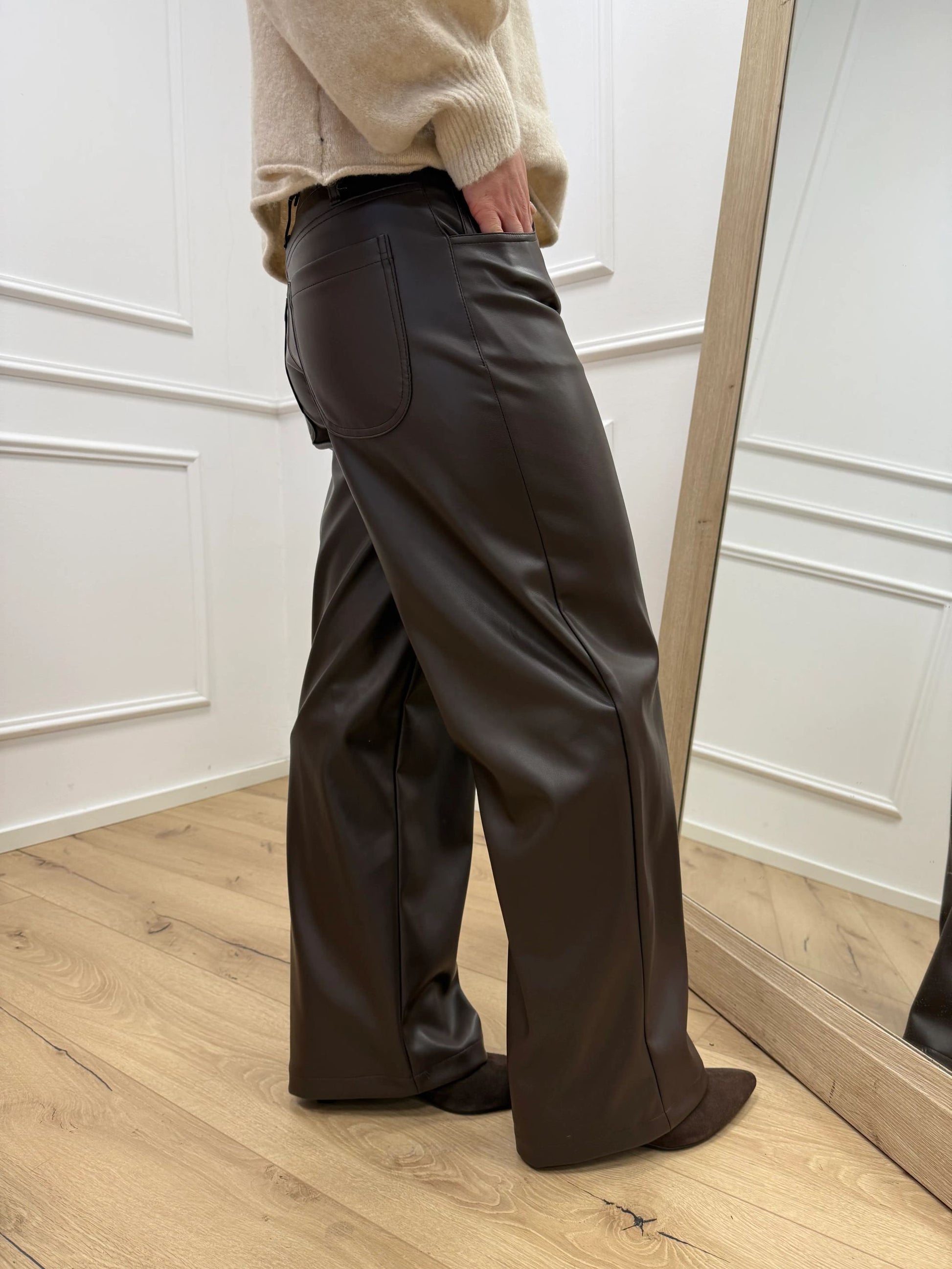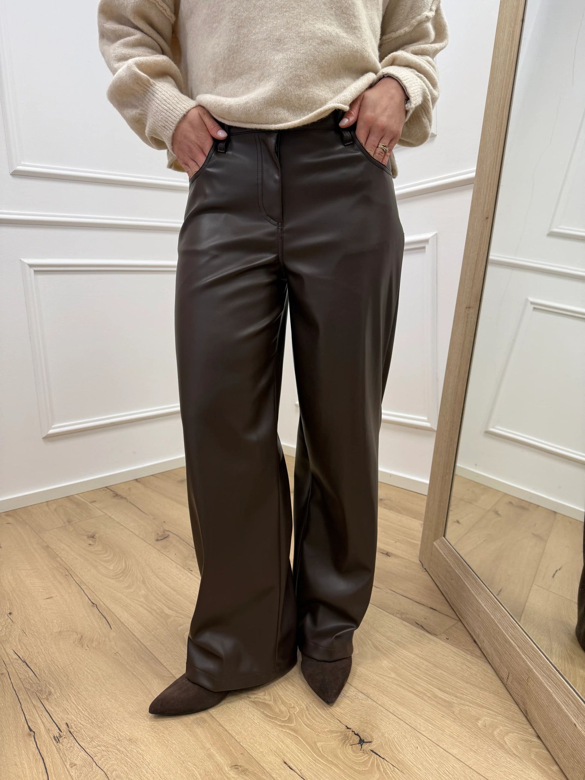 Pantaloni Bella in ecopelle moro wide leg - HaveOne