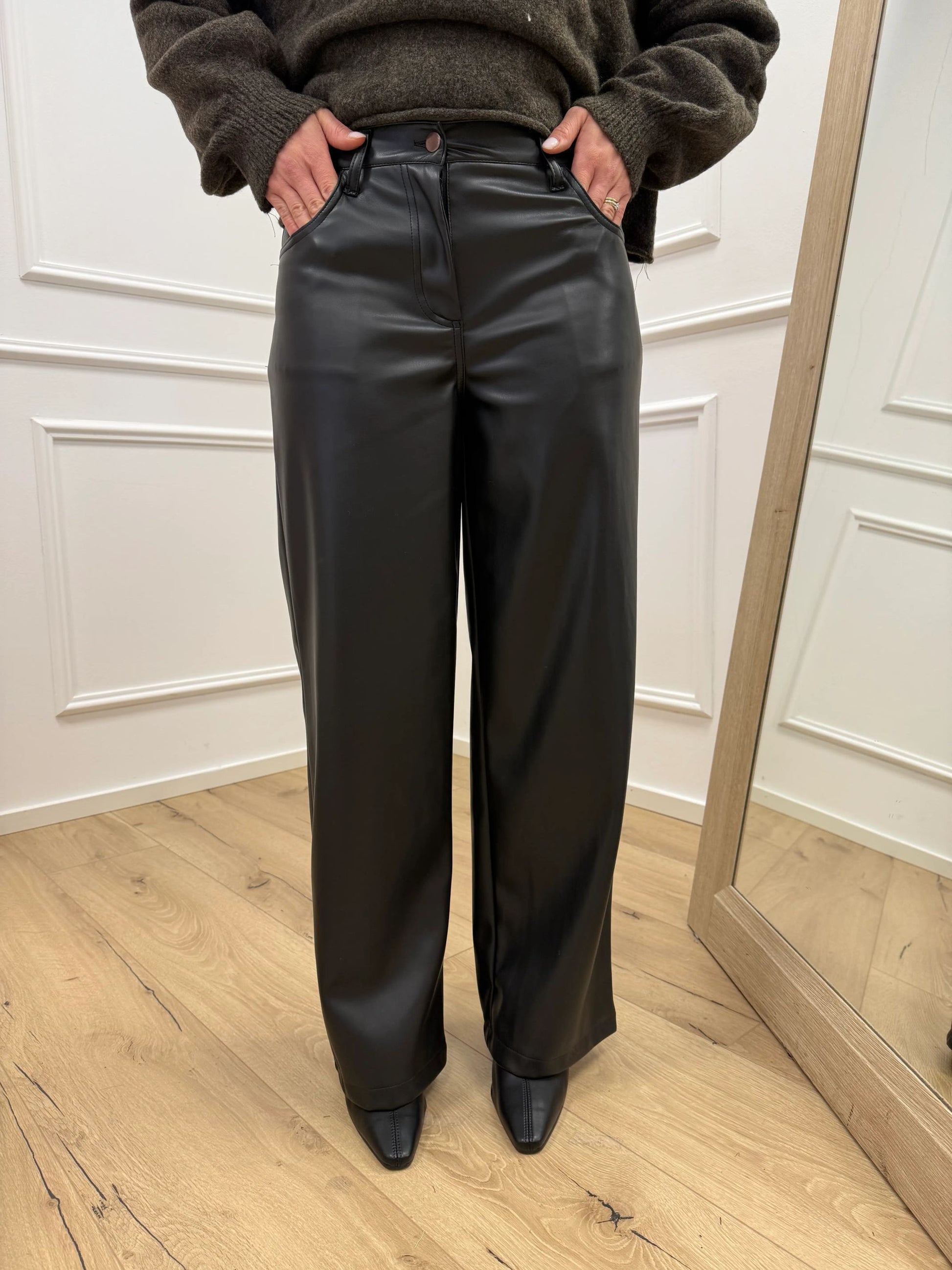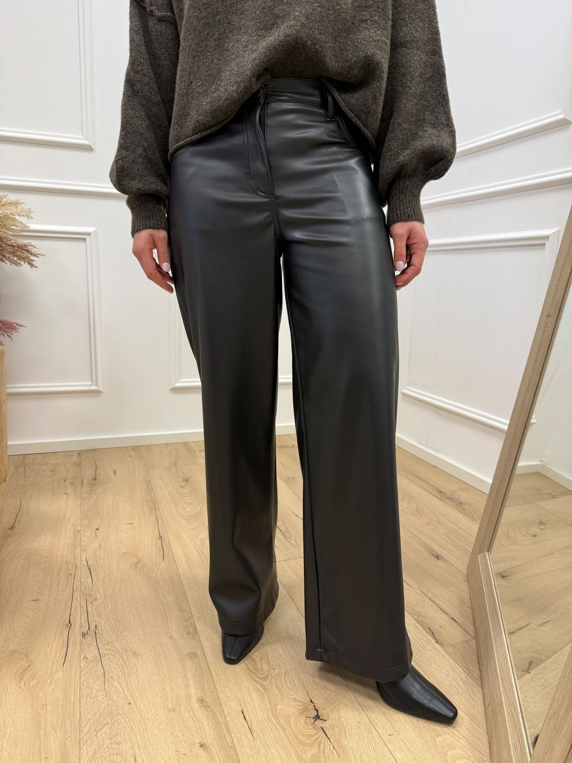 Pantaloni Bella in ecopelle nero wide leg - HaveOne