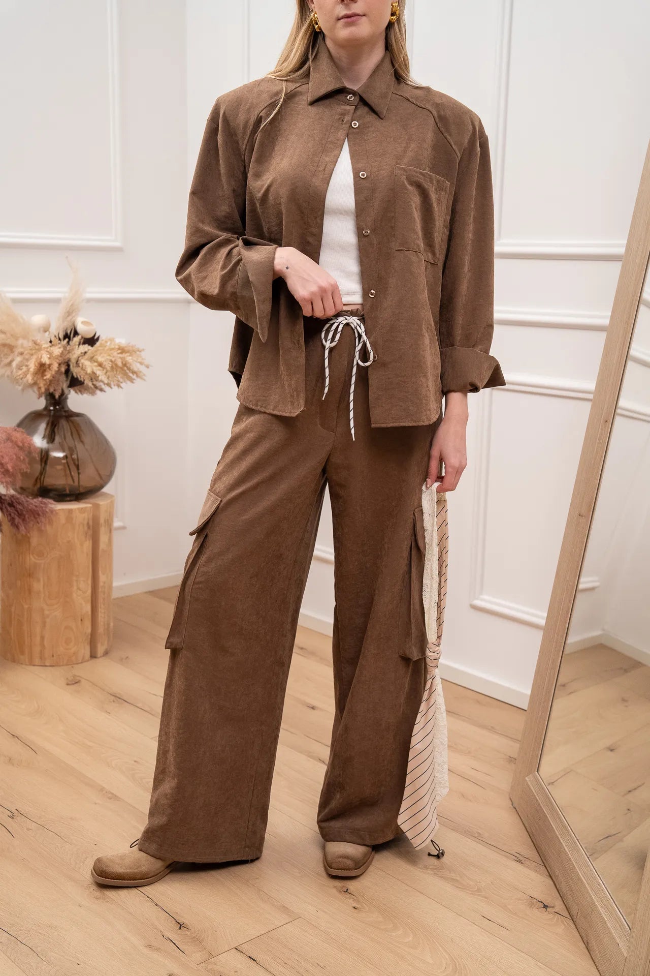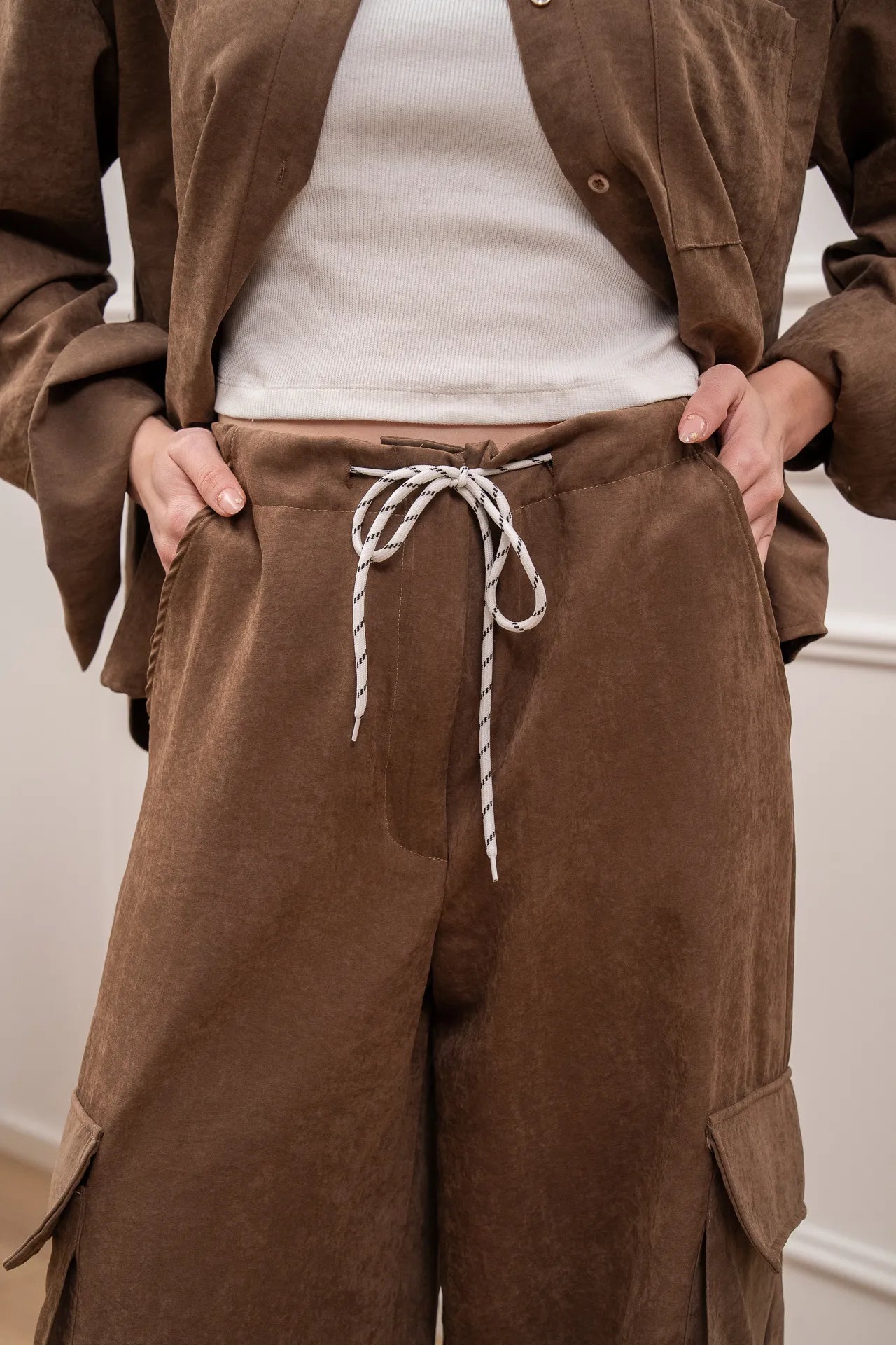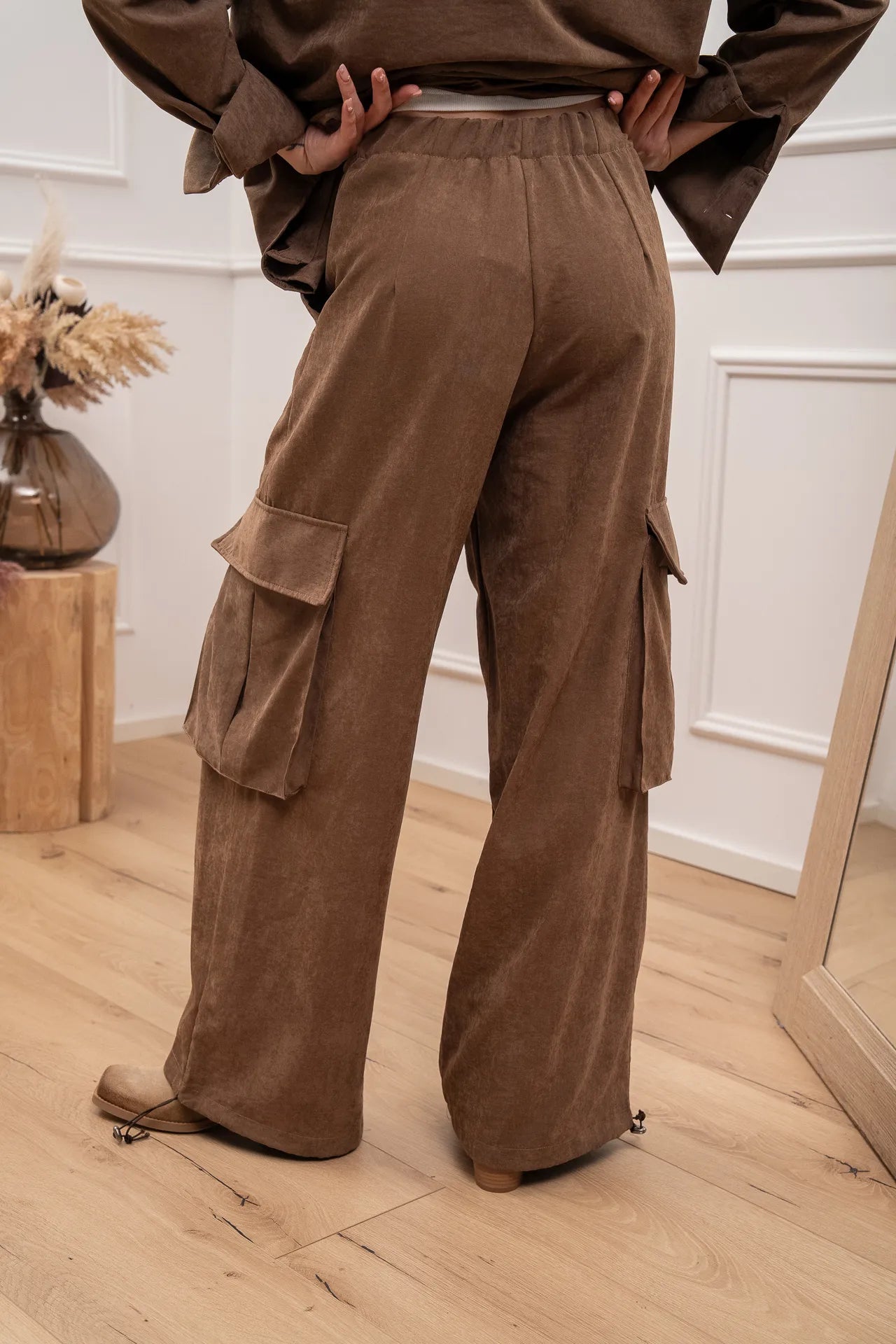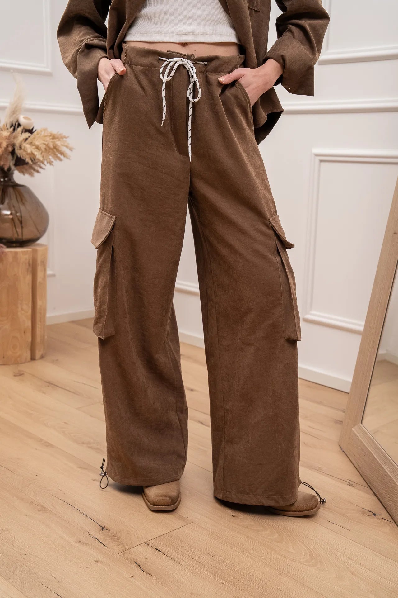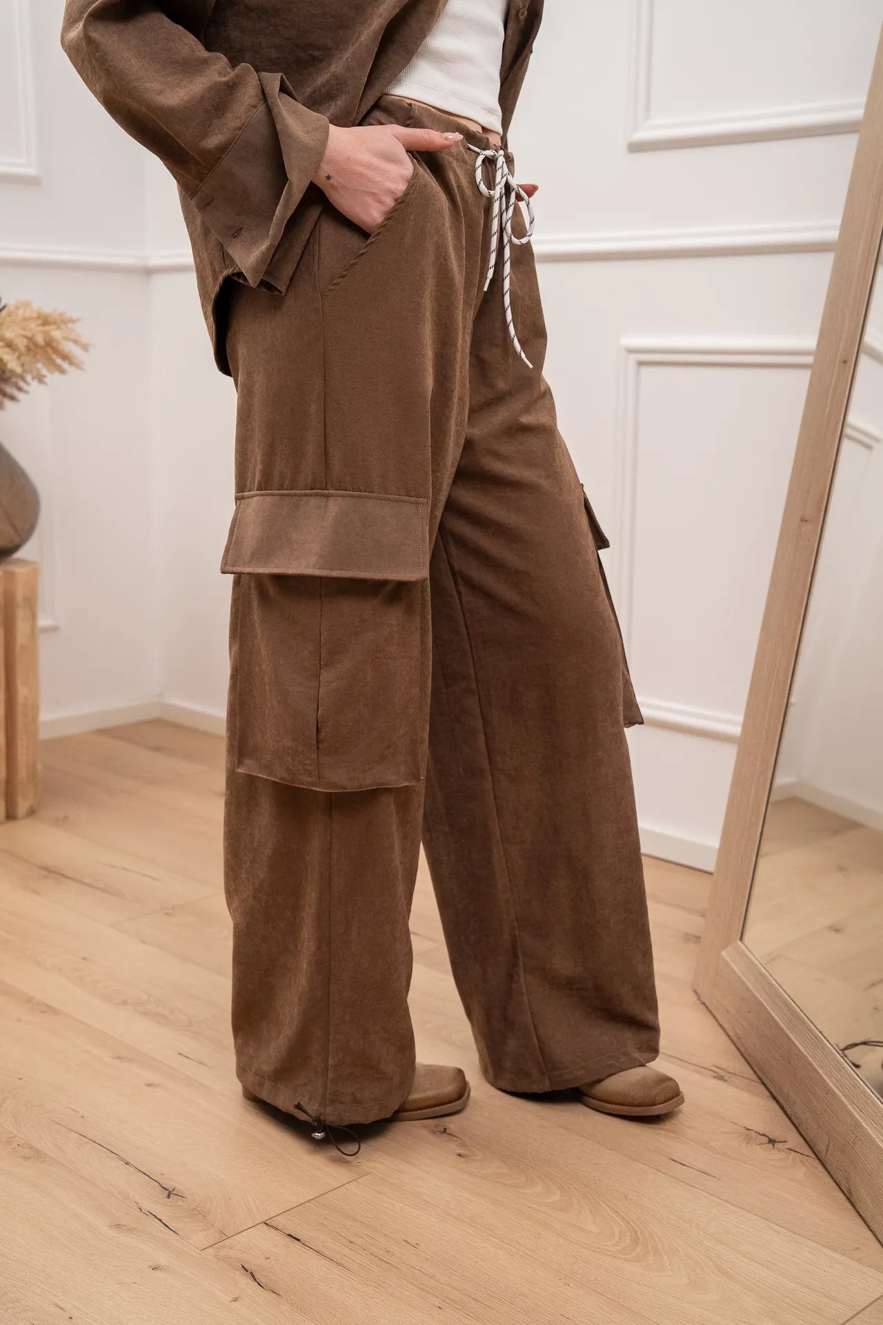 Pantaloni cargo in suede biscotto con coulisse sul fondo - HaveOne