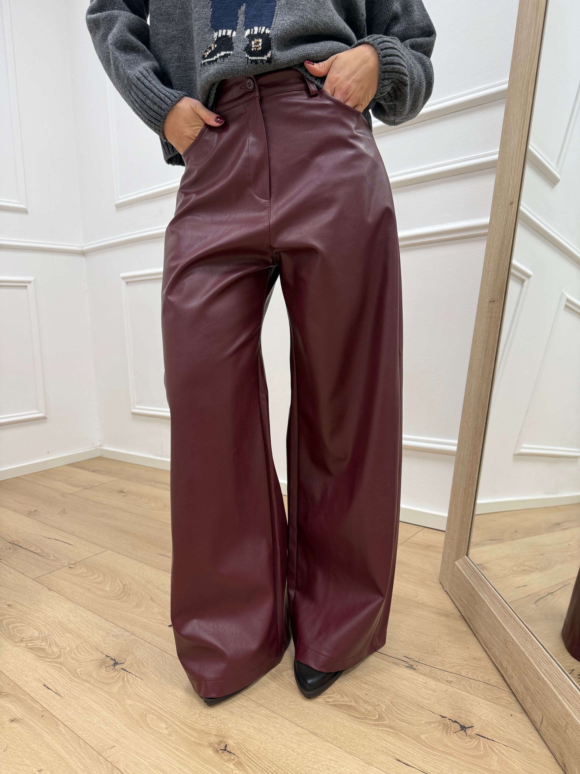 Pantaloni Giusy bordeaux ecopelle martellata - Tensione In