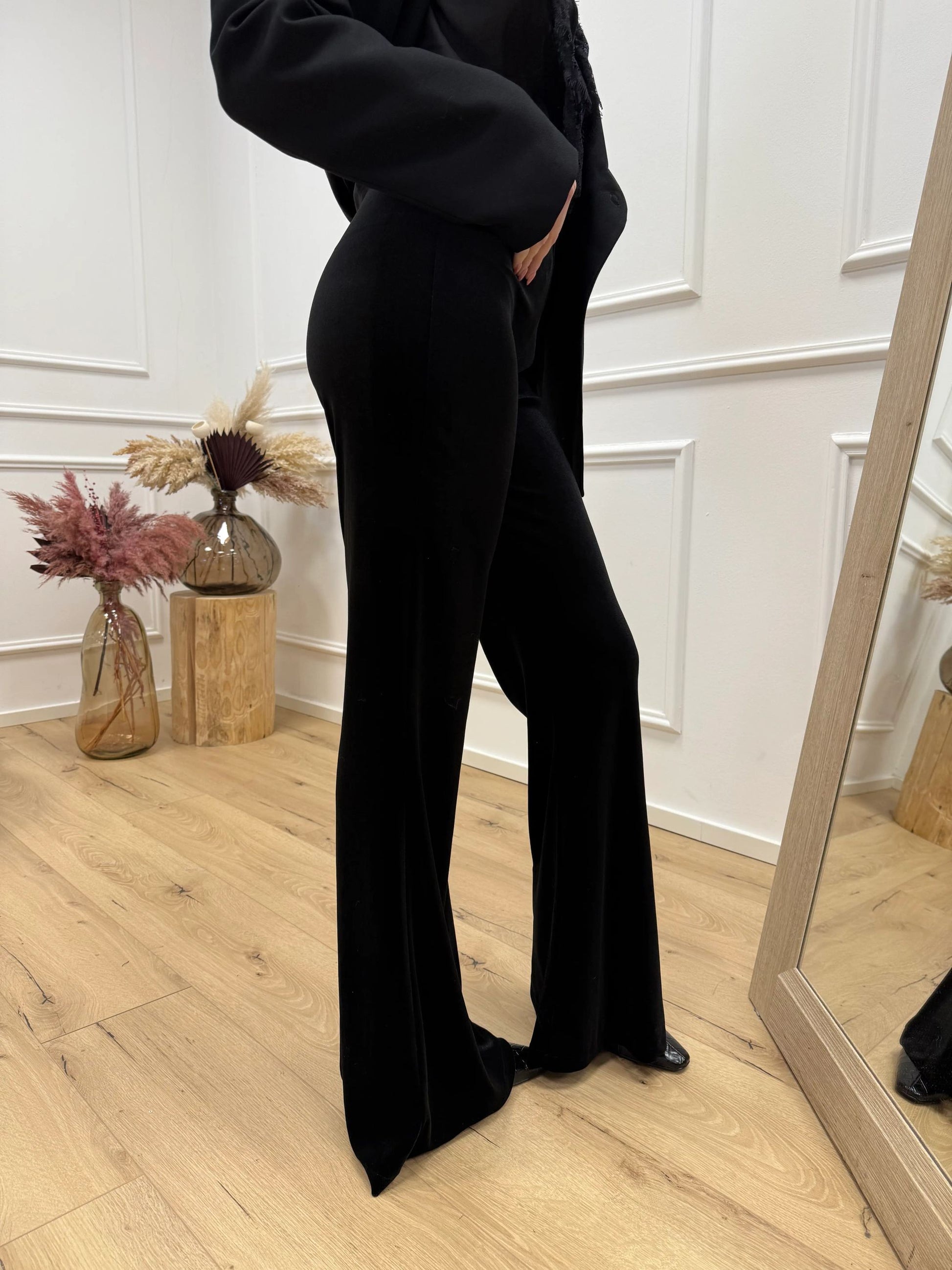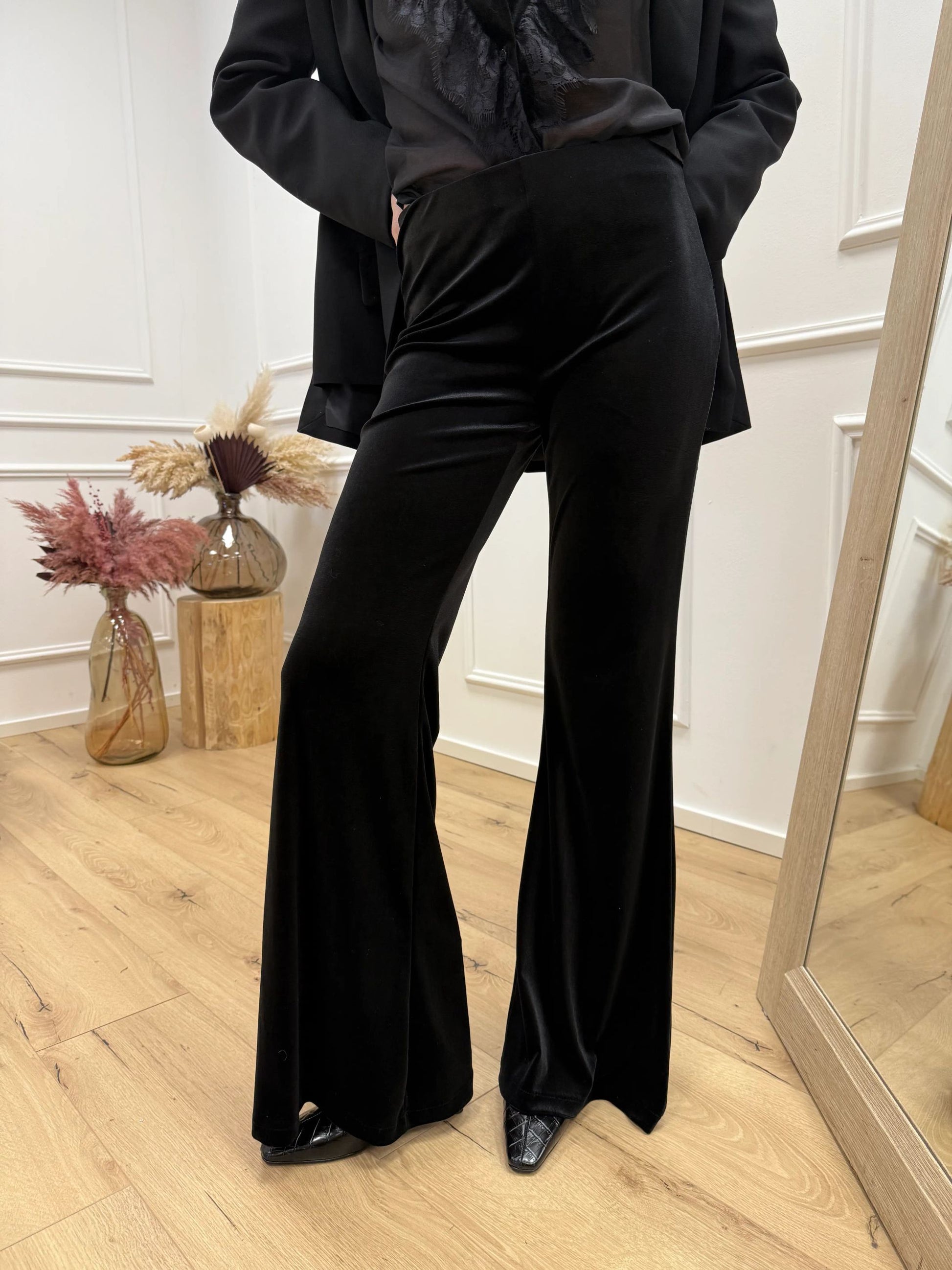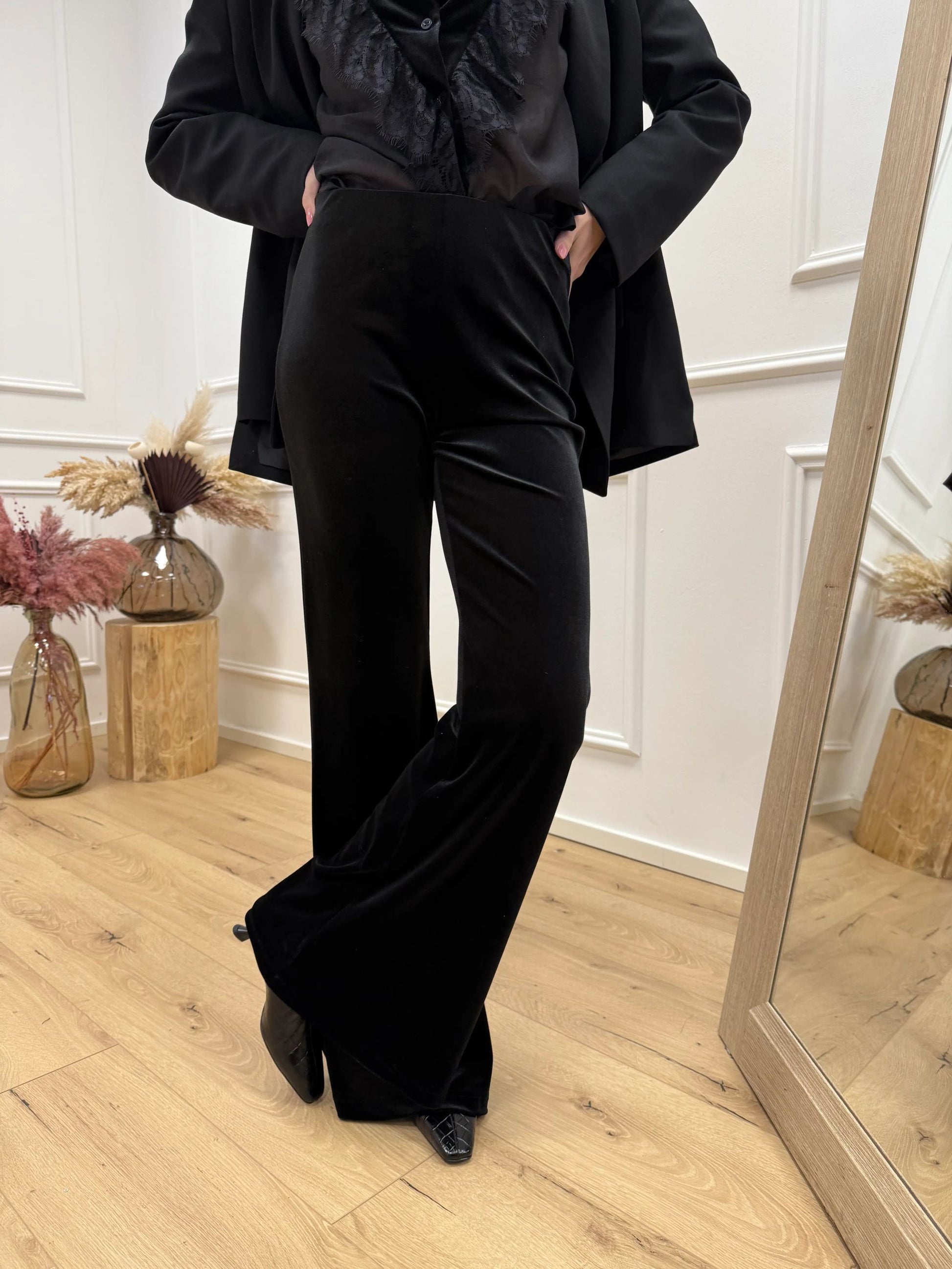 Pantaloni in velluto color nero HaveOne. Modello fit dritto scampato sul fondo con vita medio alto elasticizzata.