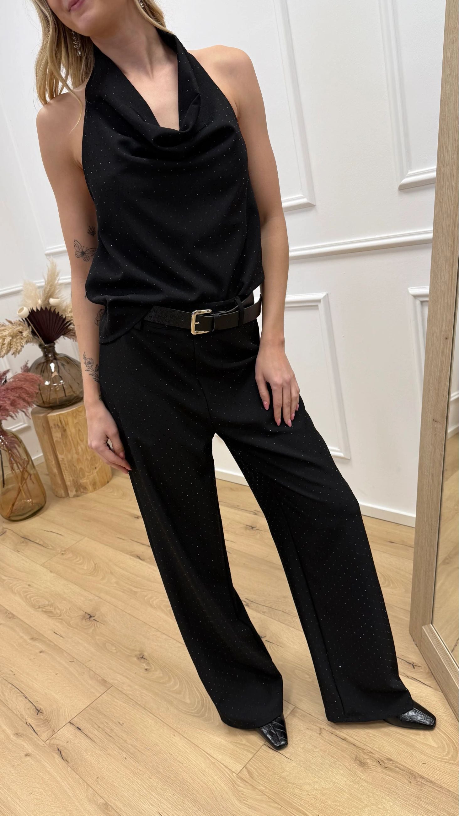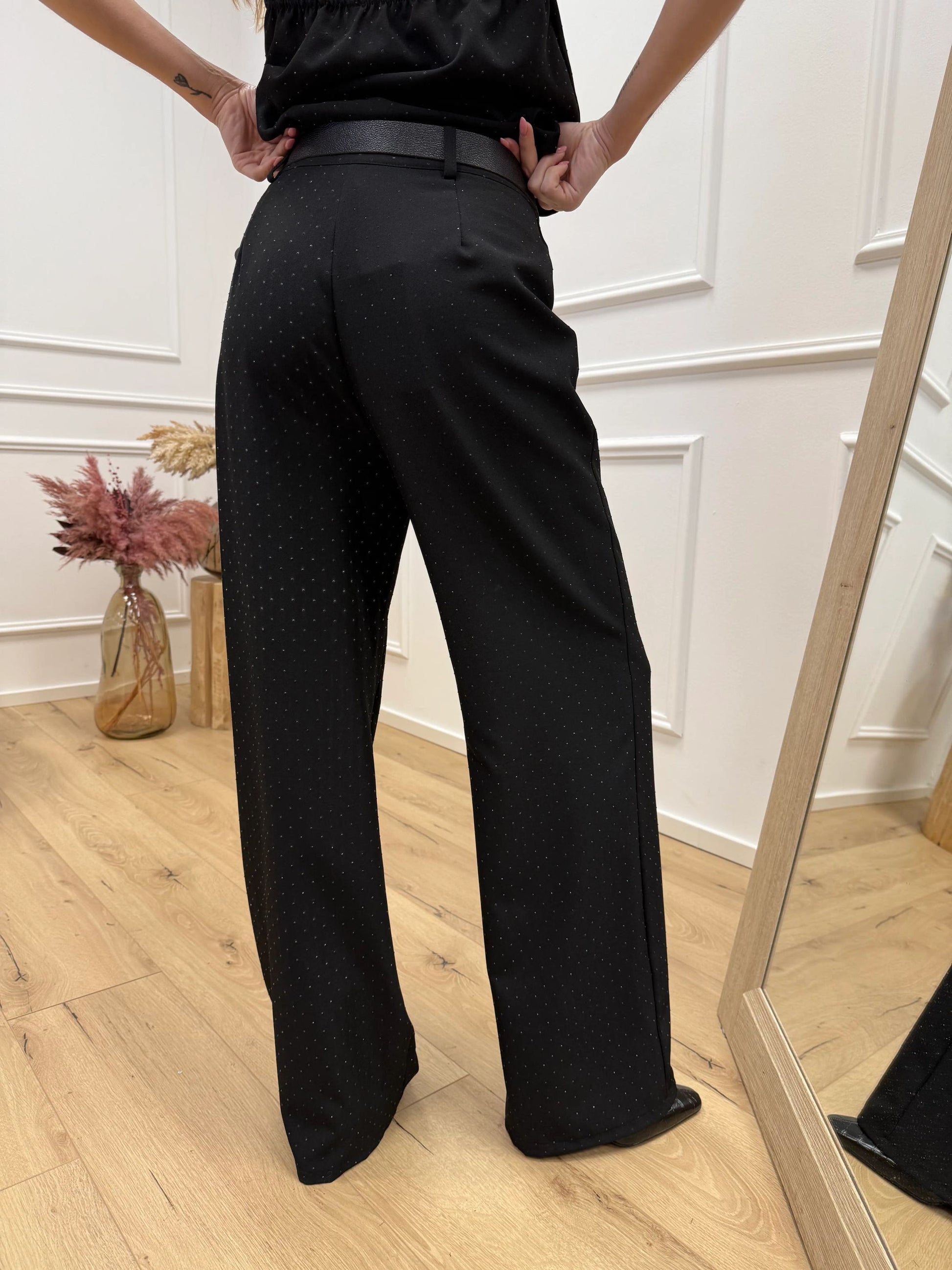 Pantaloni neri con strass nero - HaveOne