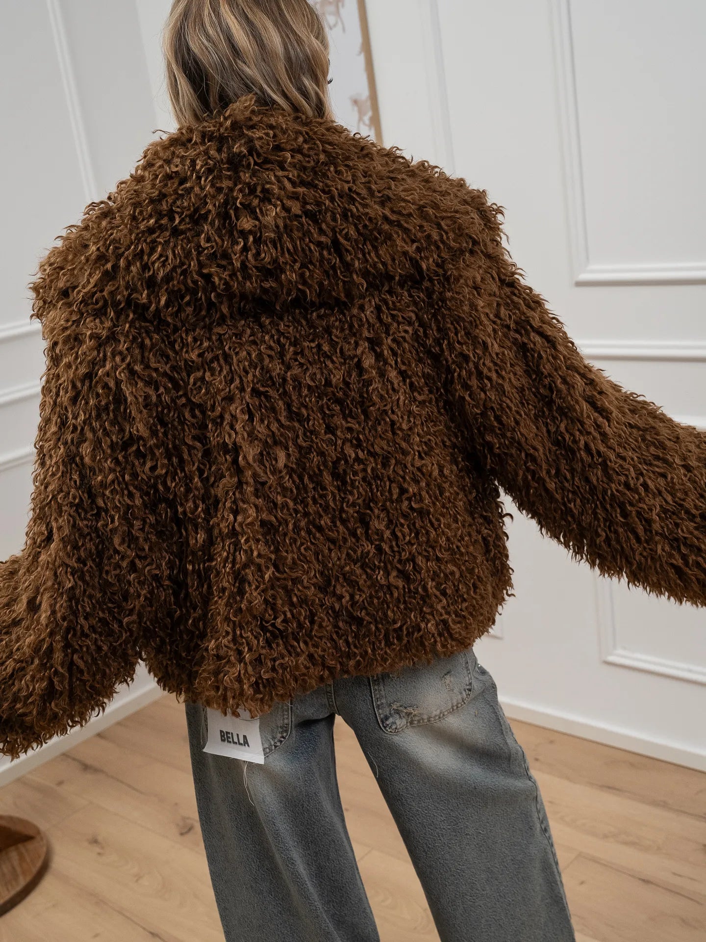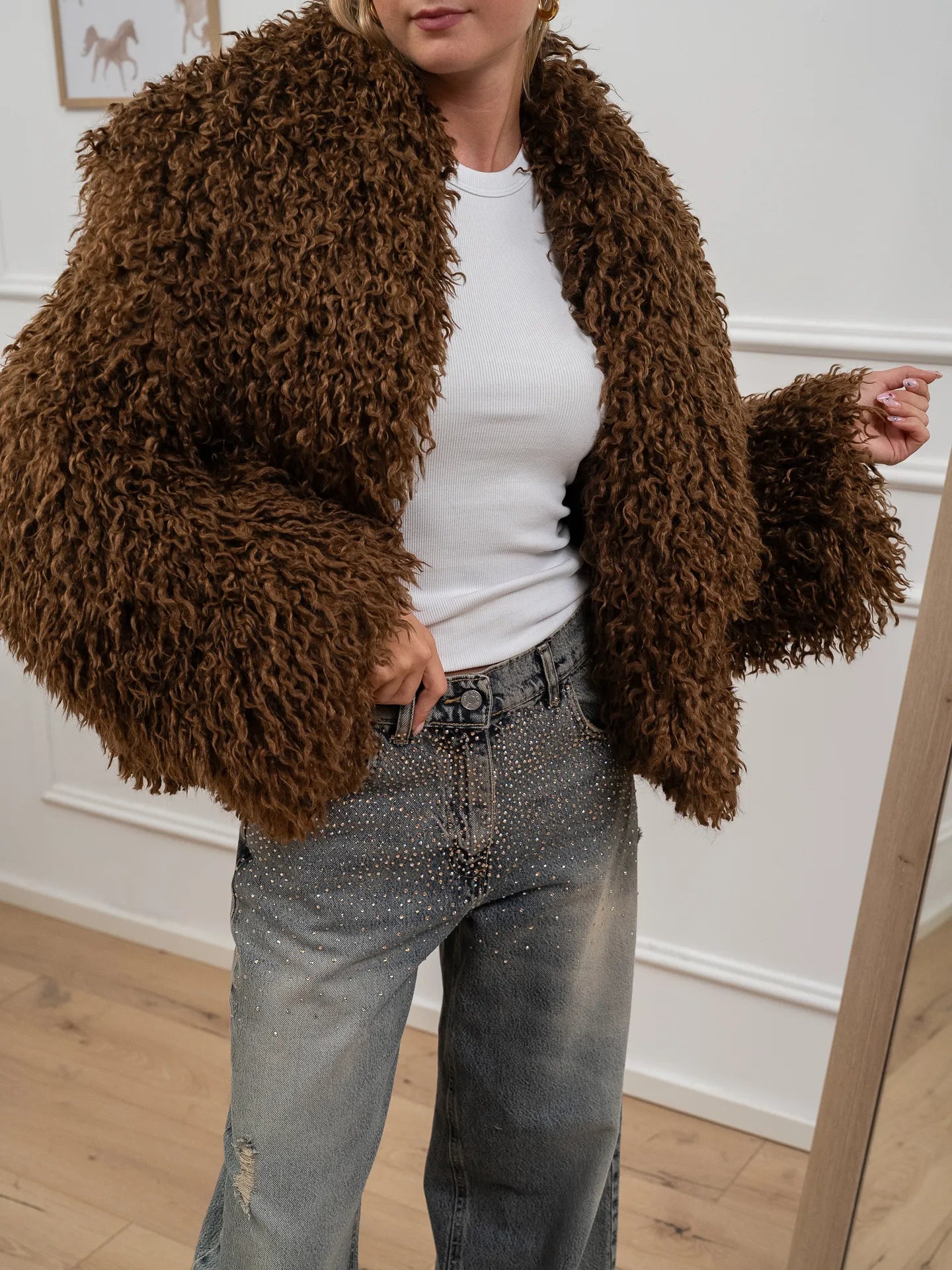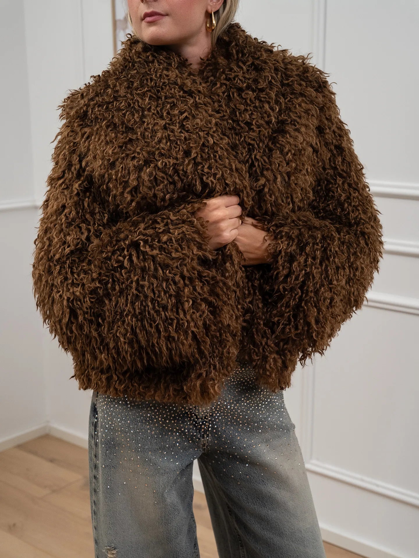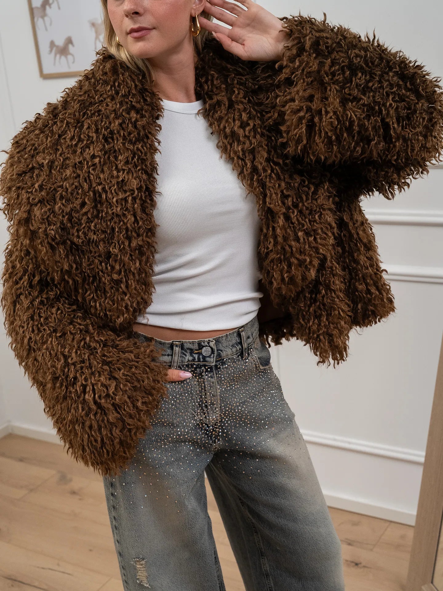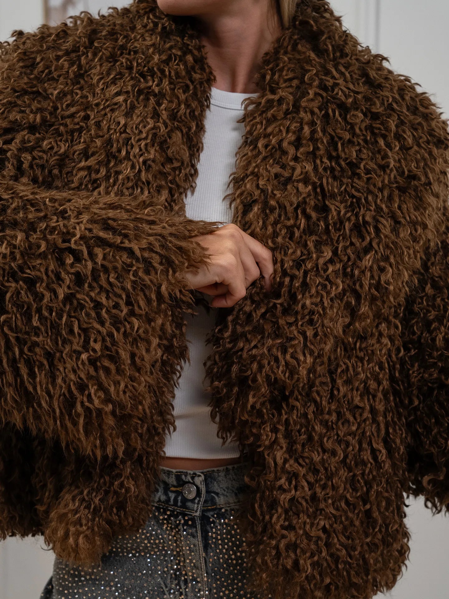 Pelliccia fluffly color tabacco HaveOne. Modello fit crop