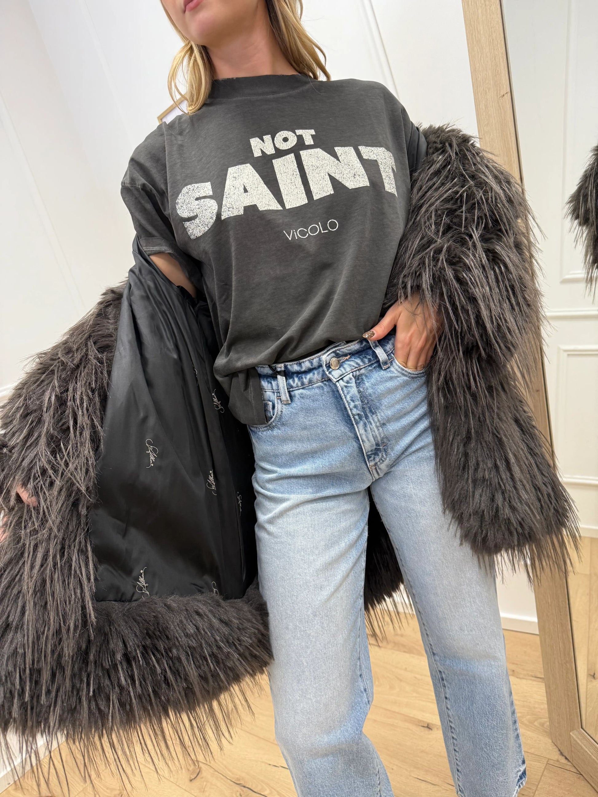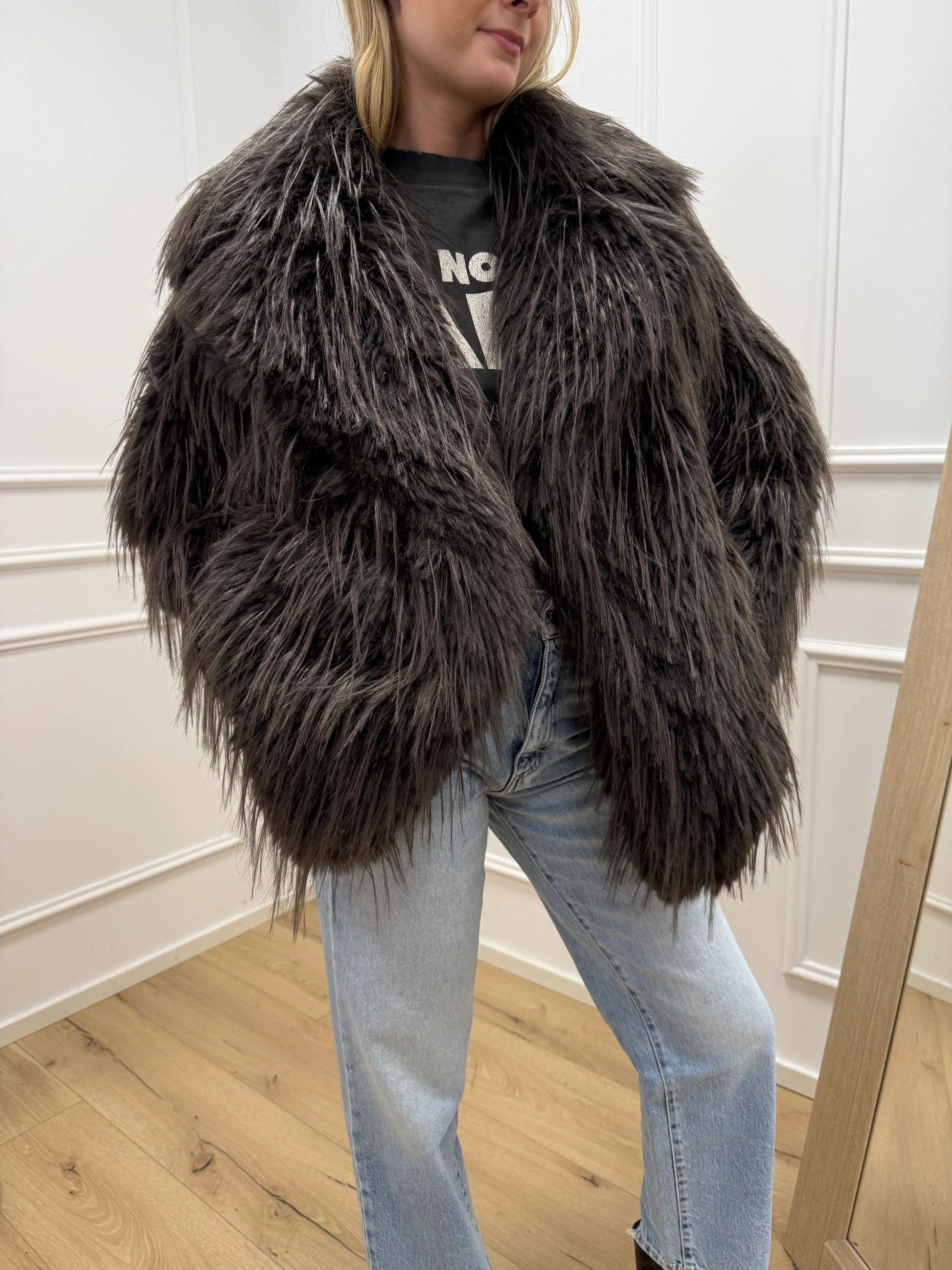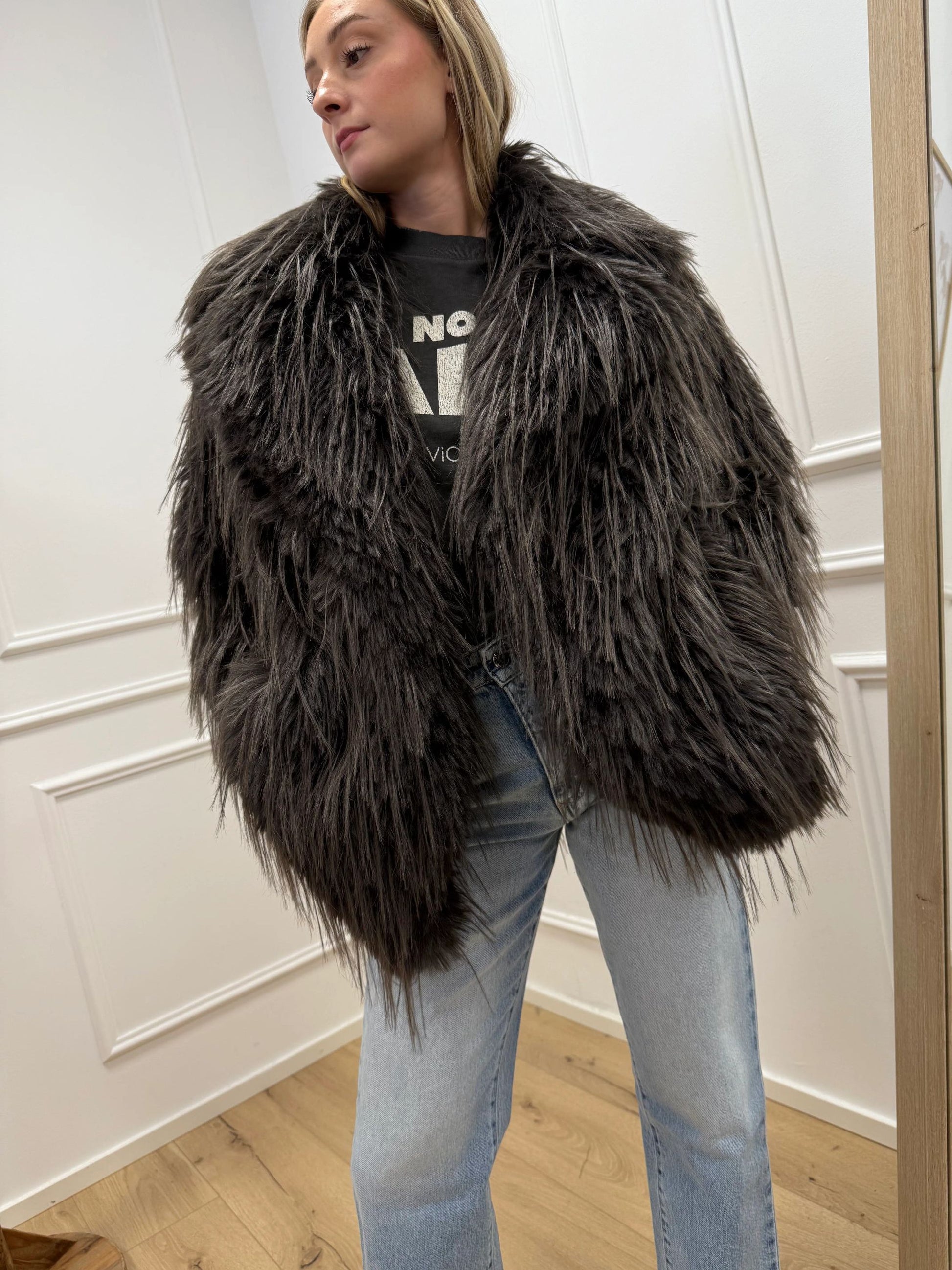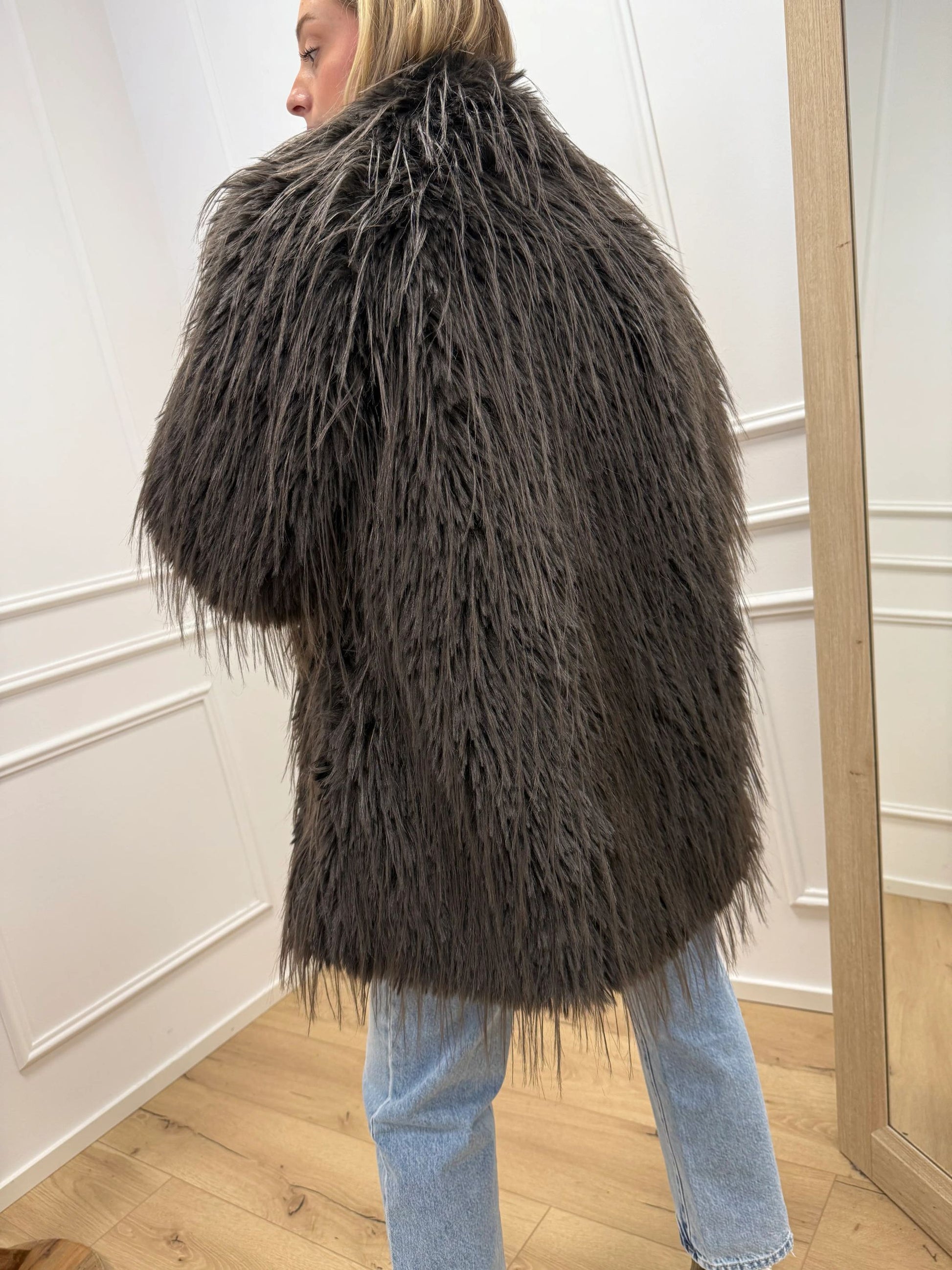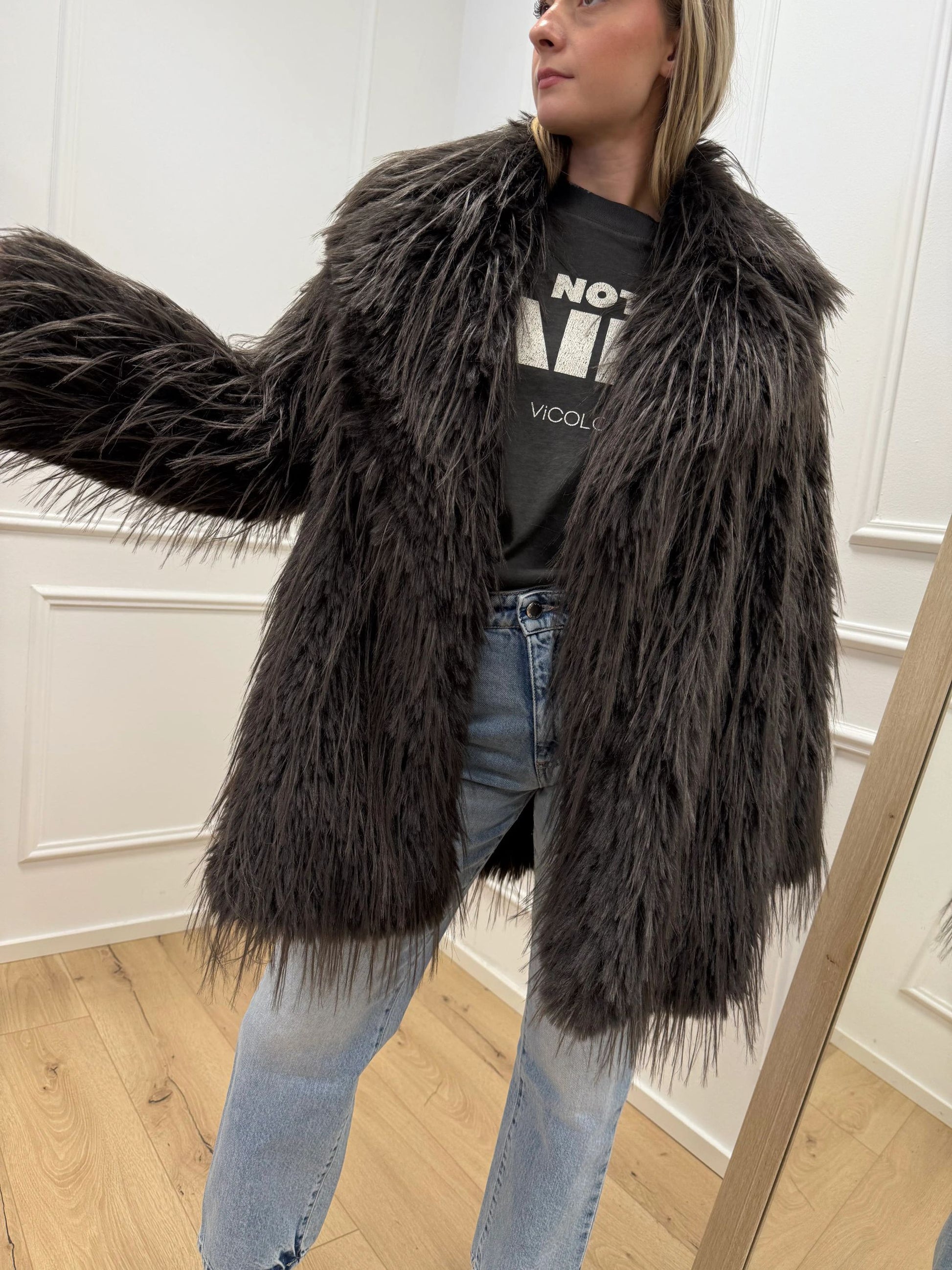 Pelliccia color fondente So Allure. Modello fit oversize senza chiusura. Maxi collo revers e maniche lunghe. Tasche laterali.