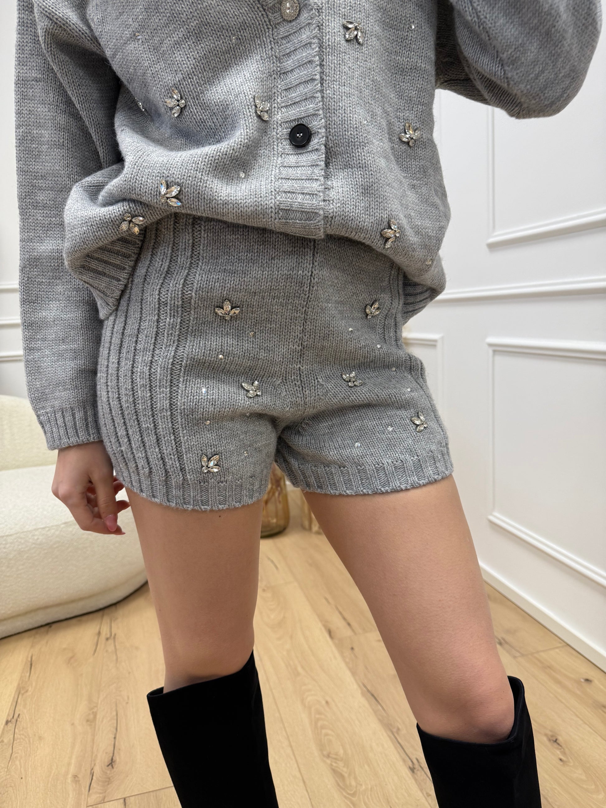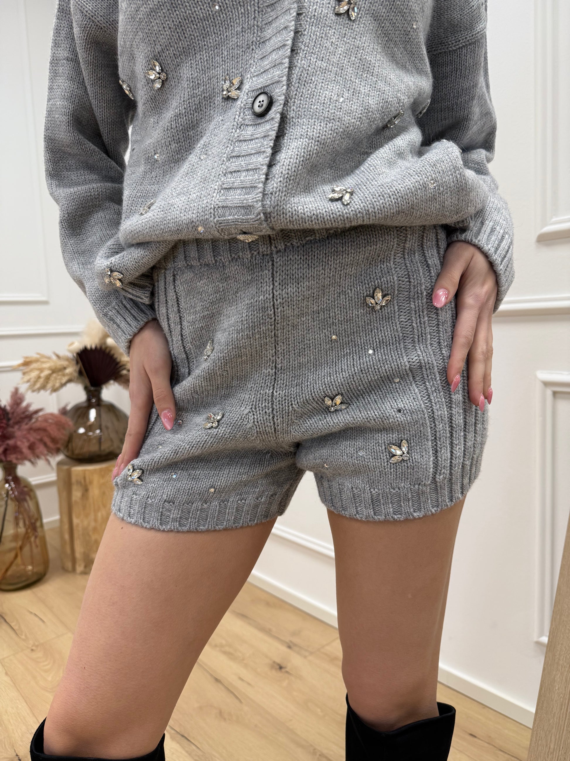 Shorts in maglia grigi con cabochon - Vicolo