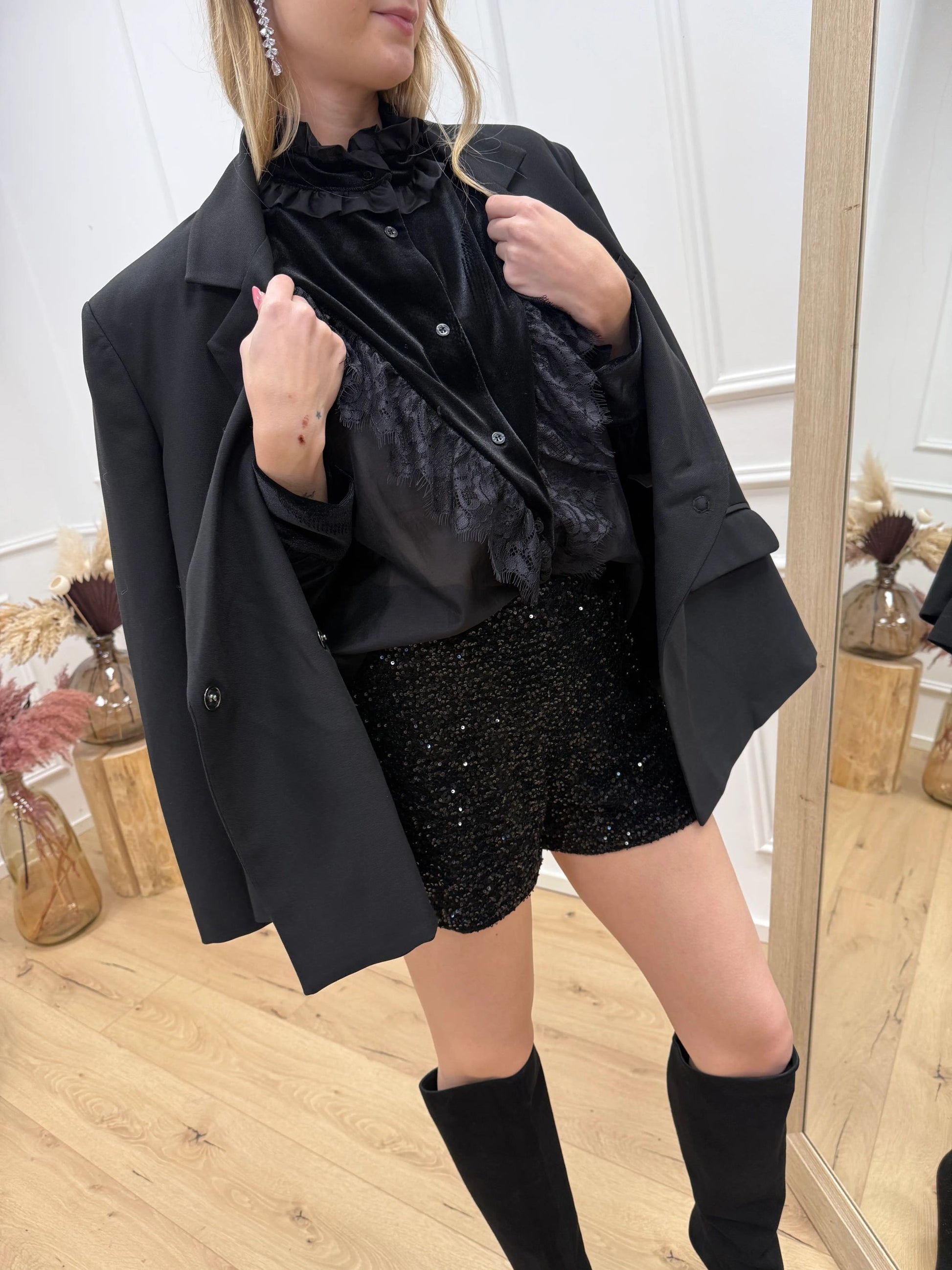 Shorts mini in ciniglia e paillettes nero - HaveOne