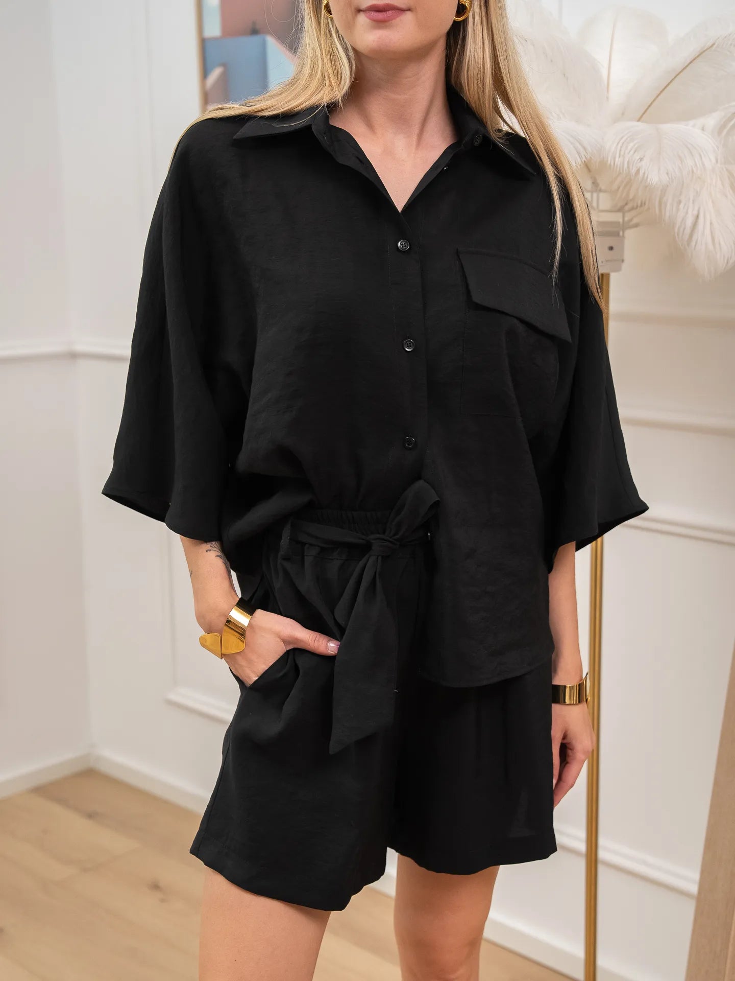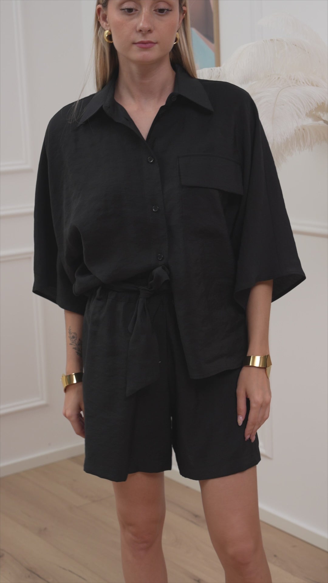 Shorts color nero in modal HaveOne. Modello fit morbido a vita alta elasticizzata con fusciacca da annodare.
