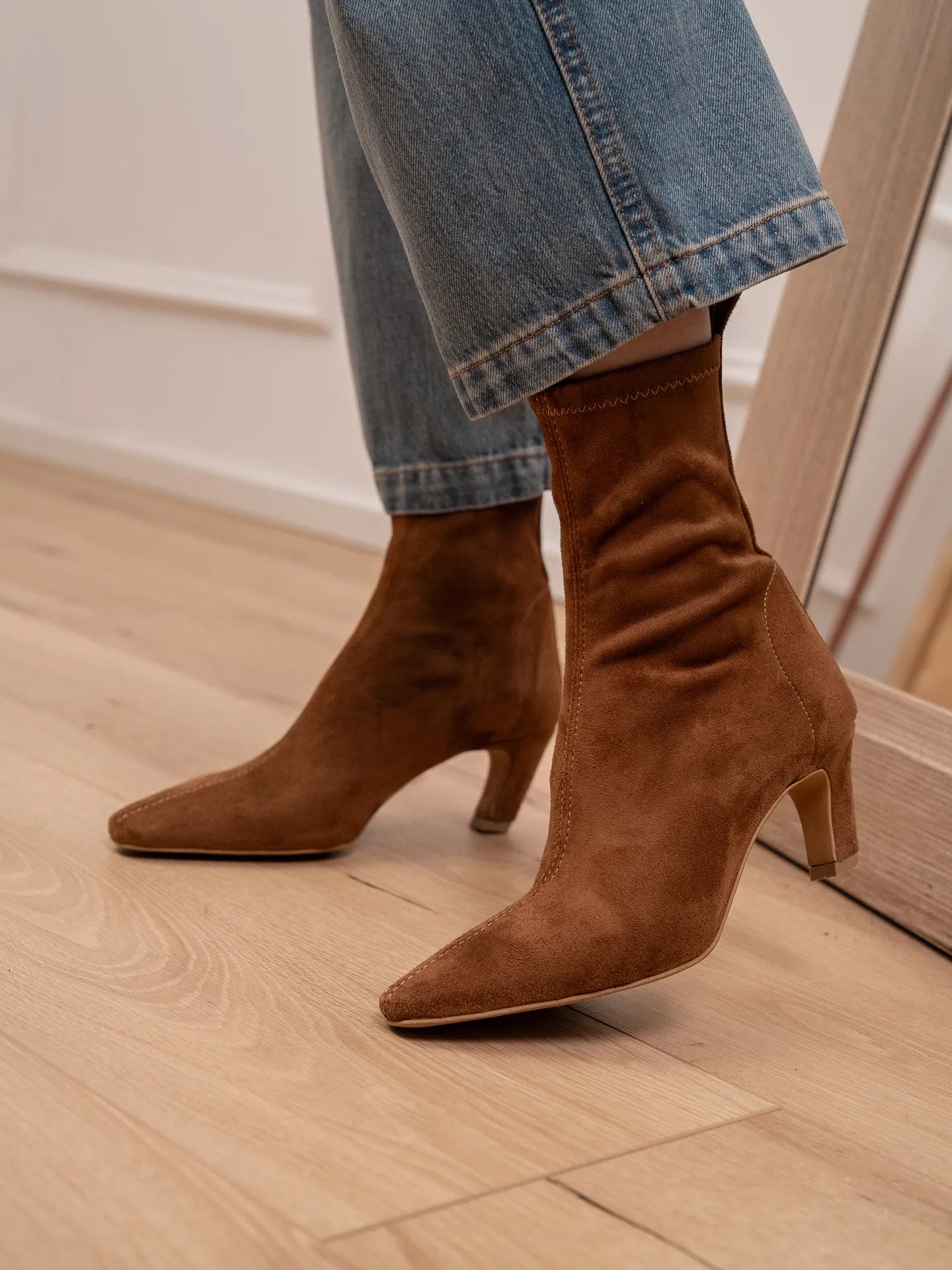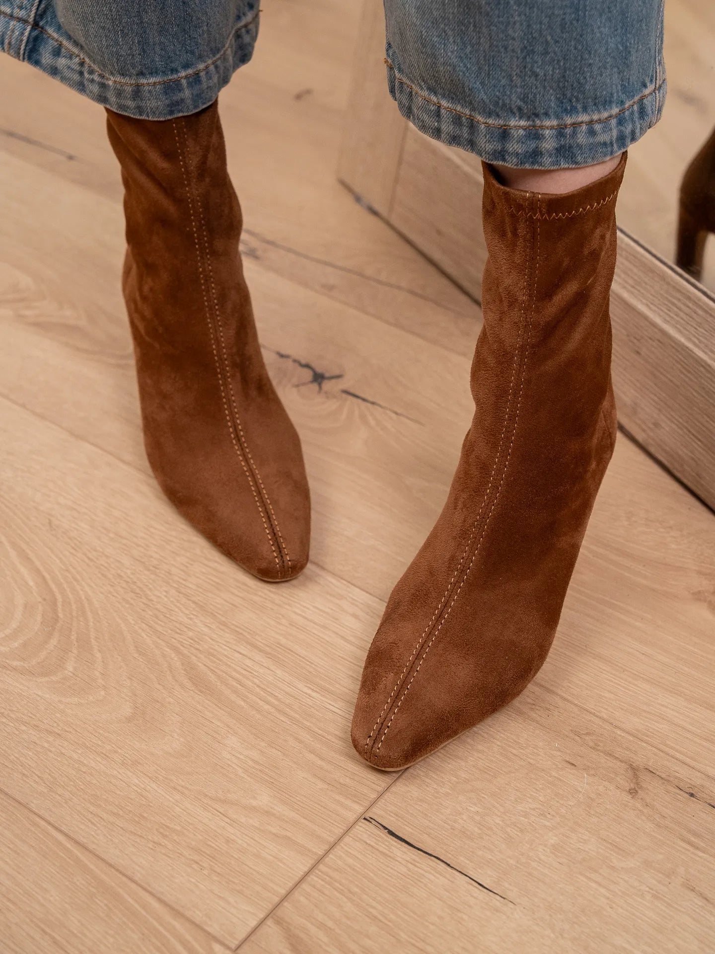 Stivaletti a calzino scamosciati cuoio con punta squadrata - Ovyè
