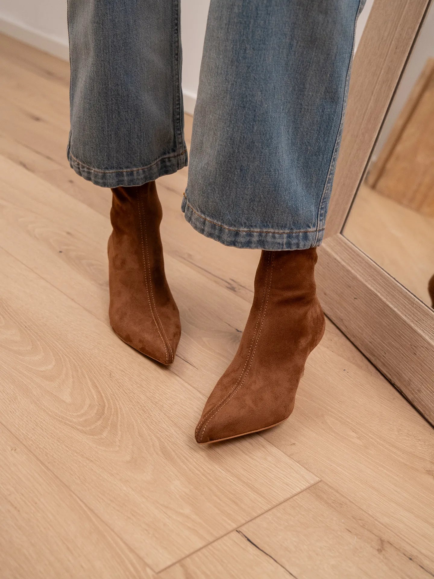 Stivaletti a calzino scamosciato cuoio a punta - Ovyè