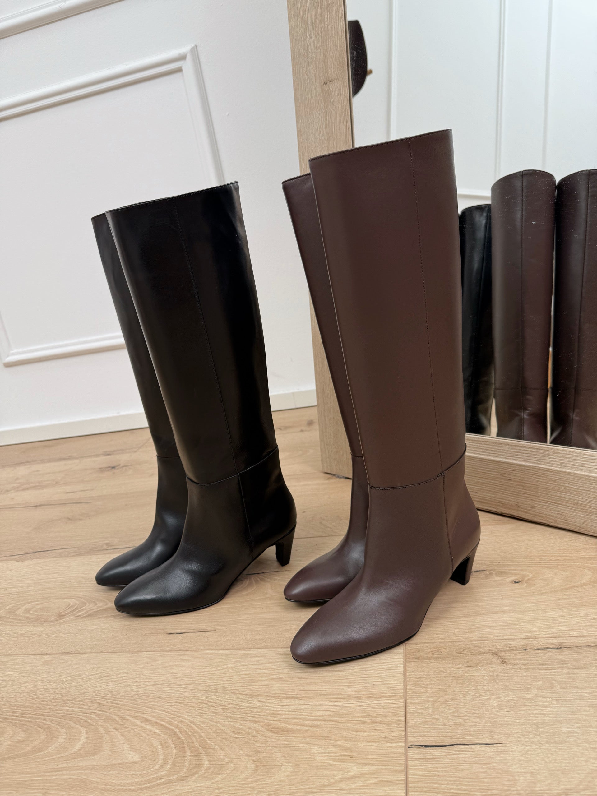 Stivali a tubo in pelle neri con tacco - Ovyè