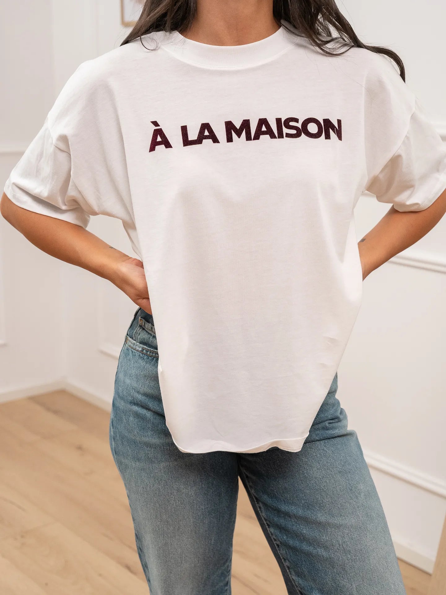T shirt "A la maison" floccata bordeaux - Vicolo