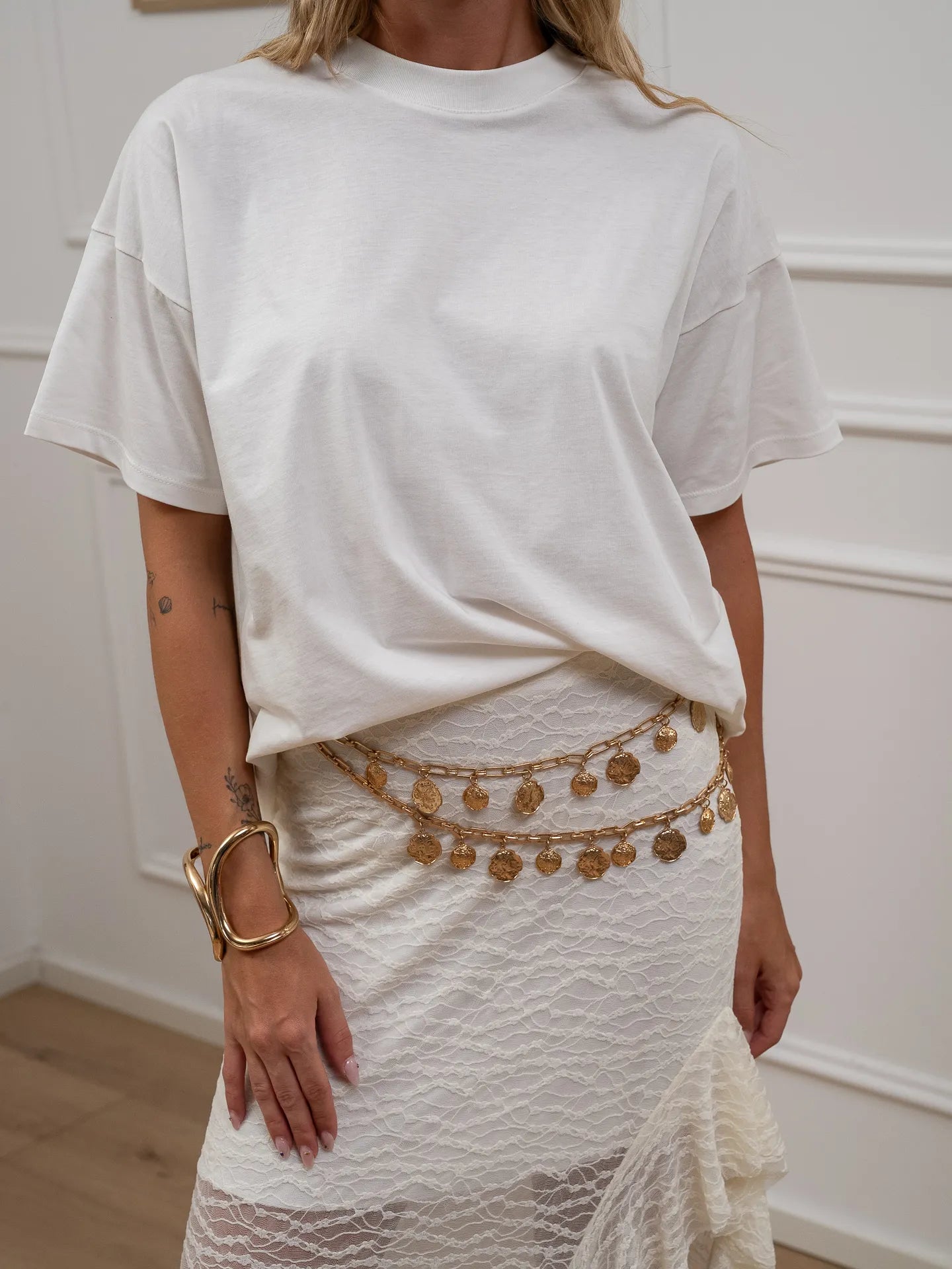 La modella è alta 170 cm e indossa tg U.