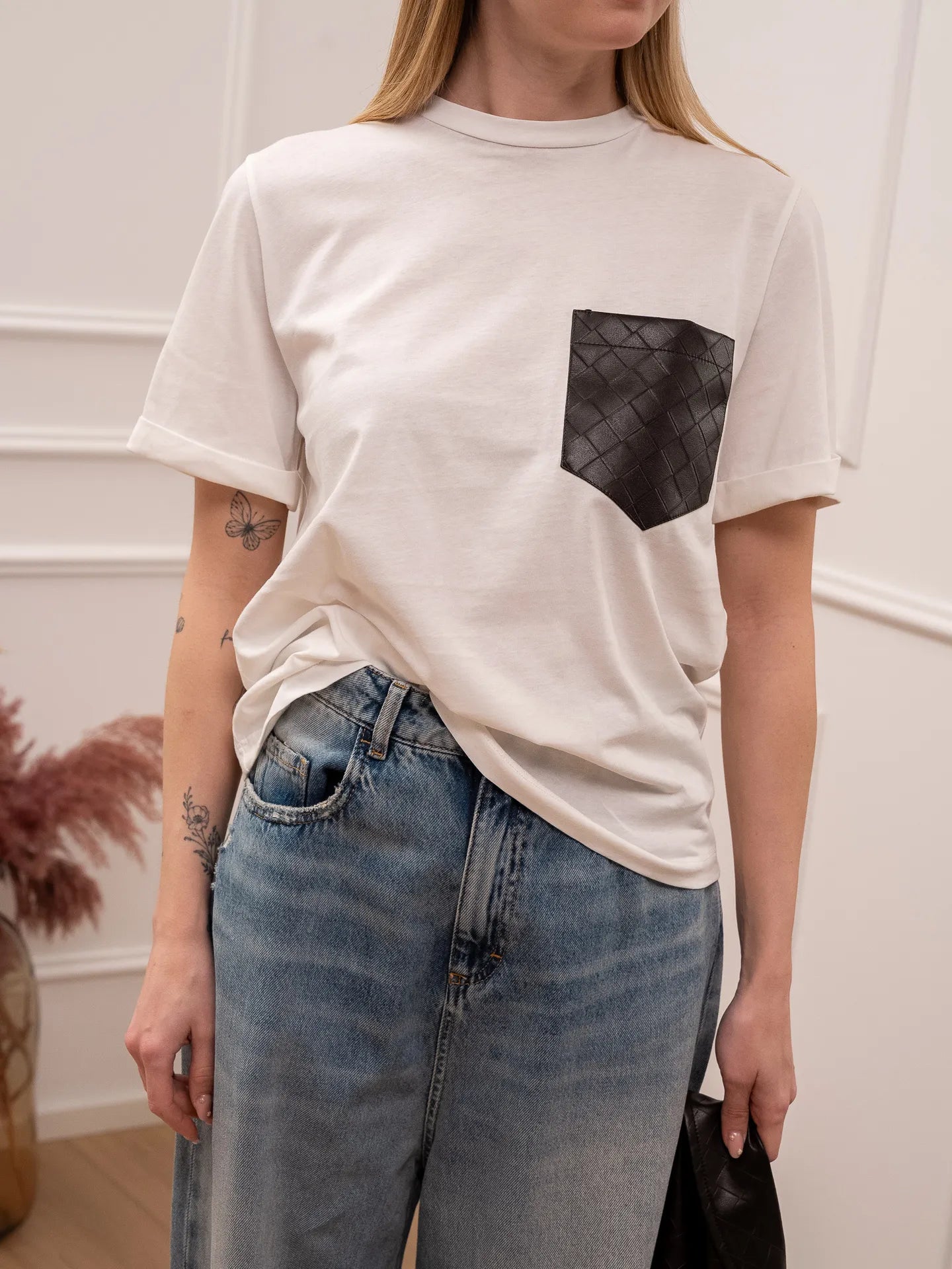 T shirt bianca tasca ecopelle moro - Tensione In