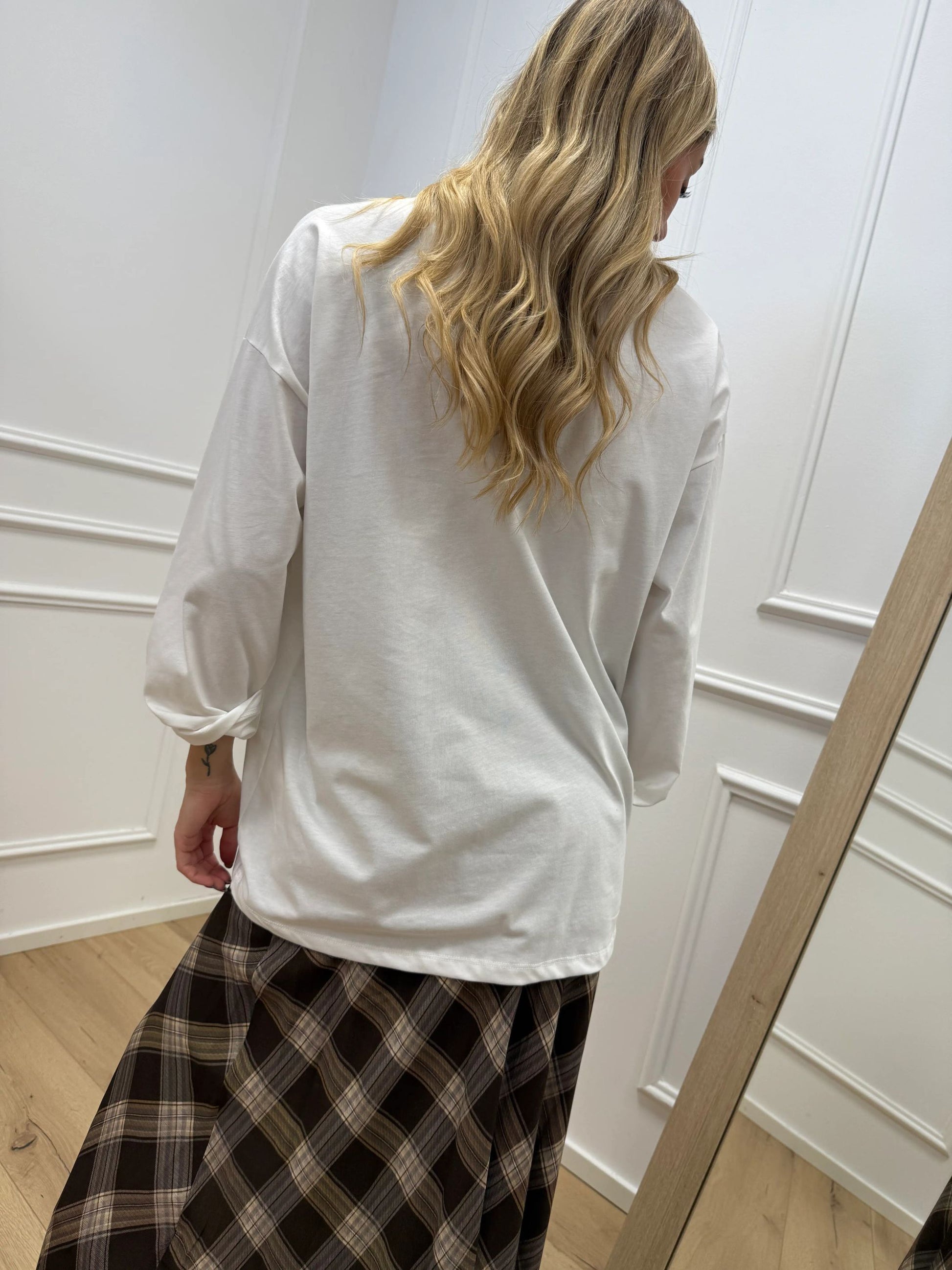 T shirt Fleur bianca manica lunga - Vicolo