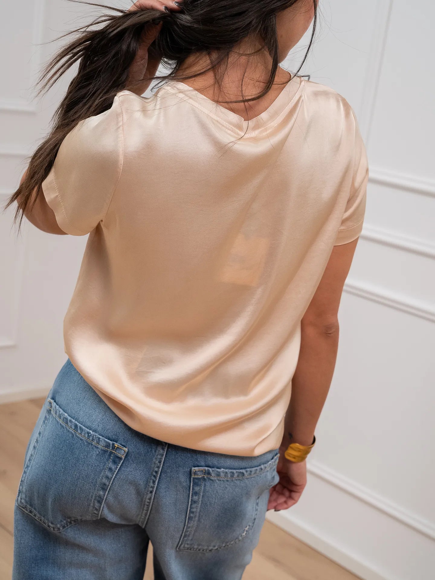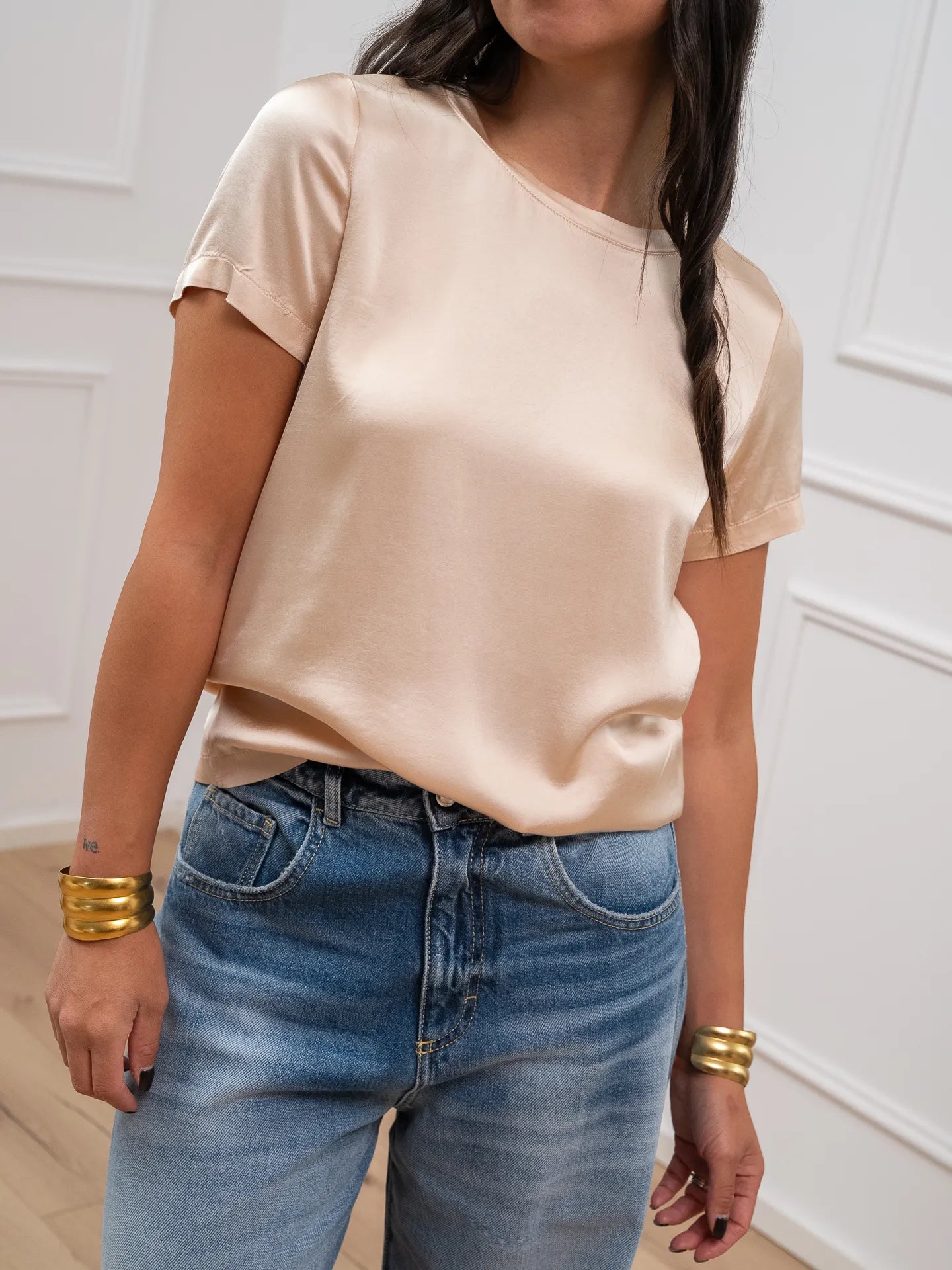 T shirt color crema in viscosa Vicolo. Modello girocollo a manica corta. Fit regolare.