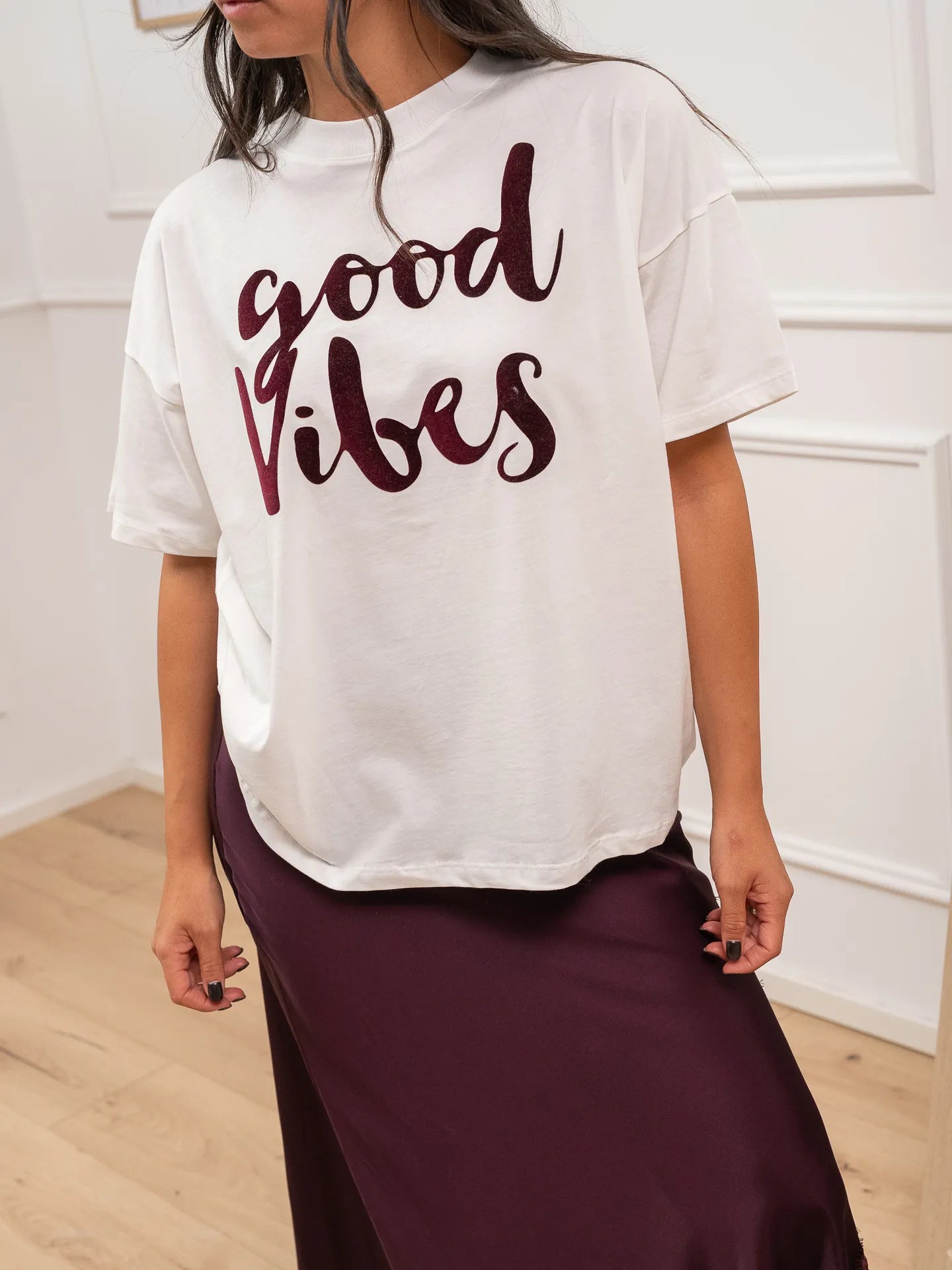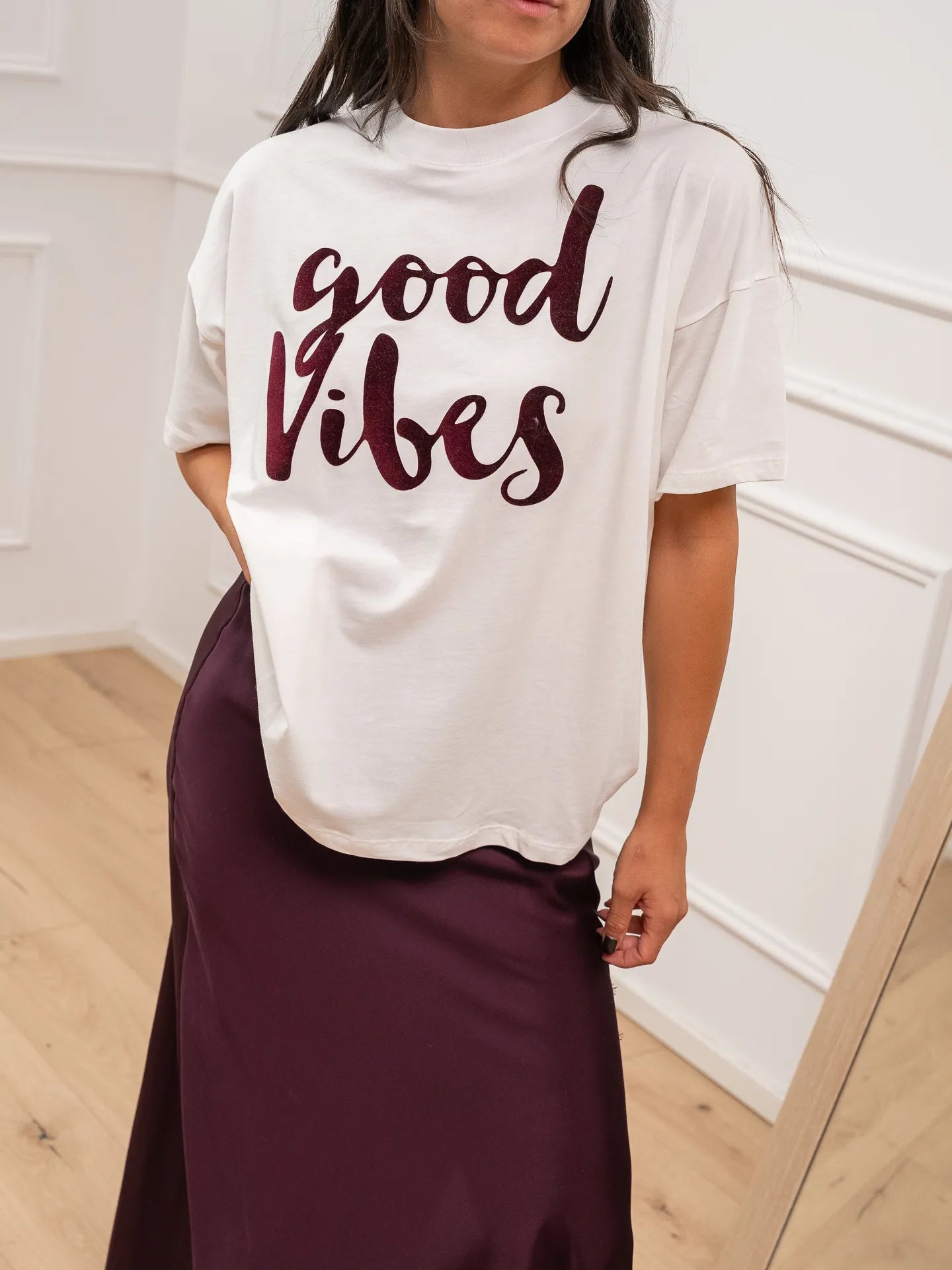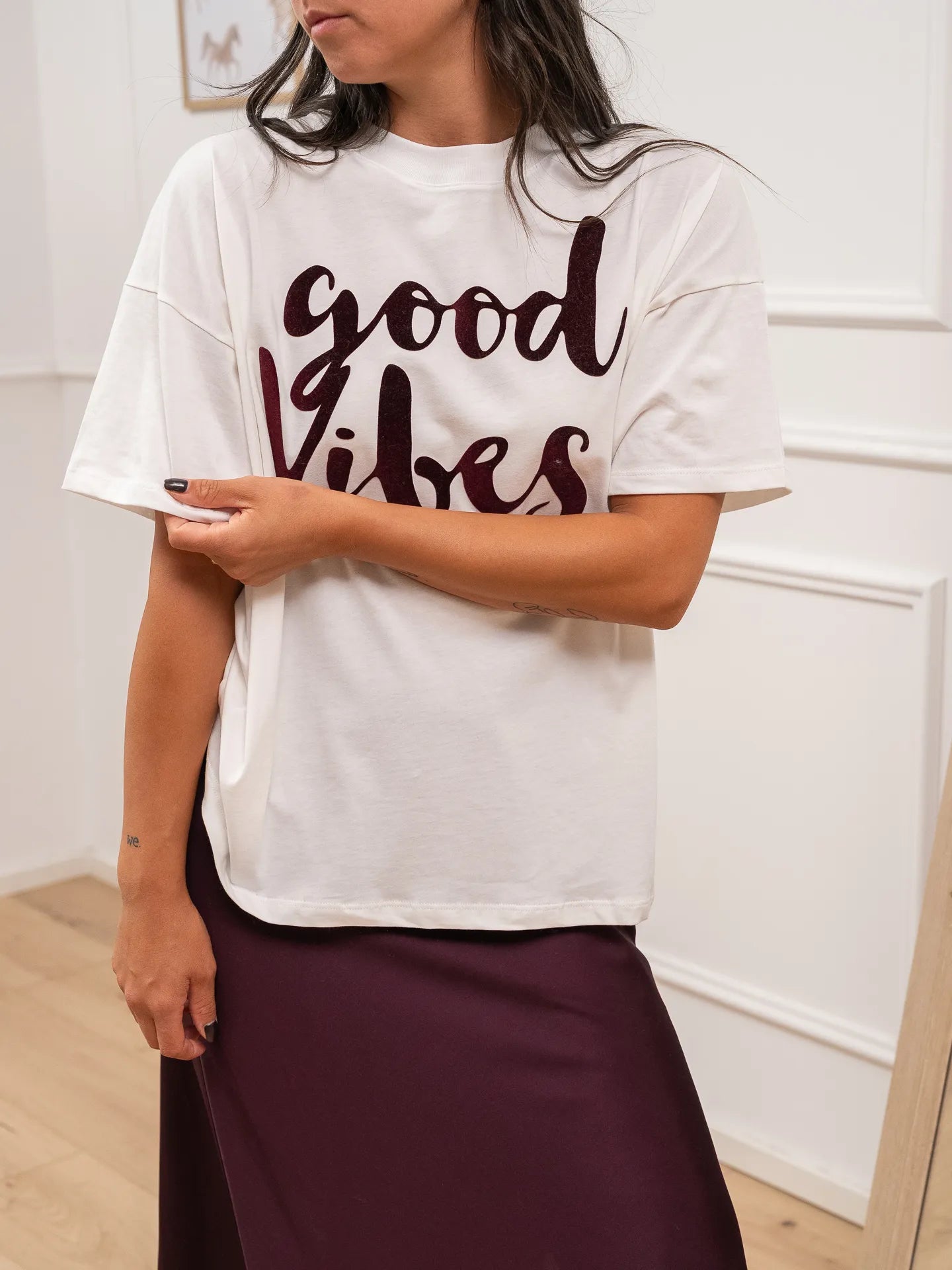 T shirt "Good vibes" floccata bordeaux - Vicolo
