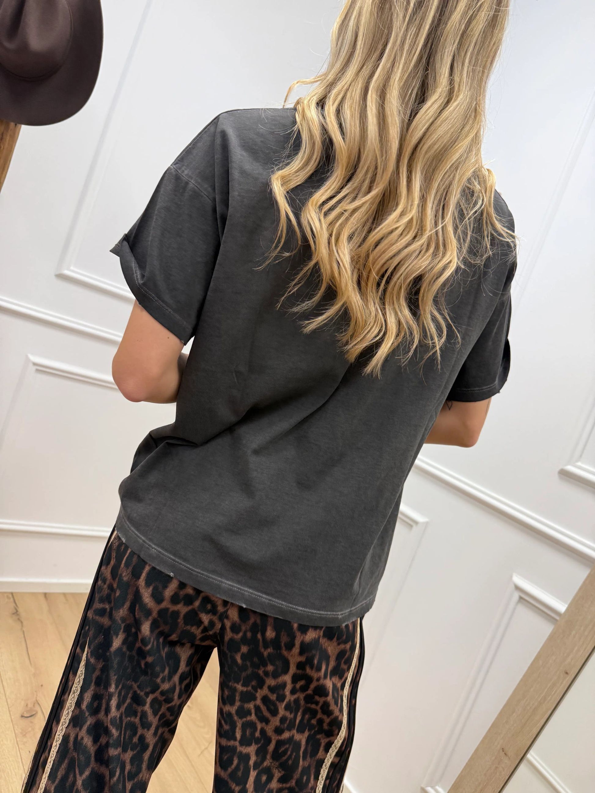 T shirt color grigio slavato Vicolo. Modello girocollo a manica corta. Dettaglio stampa "Not Saint".