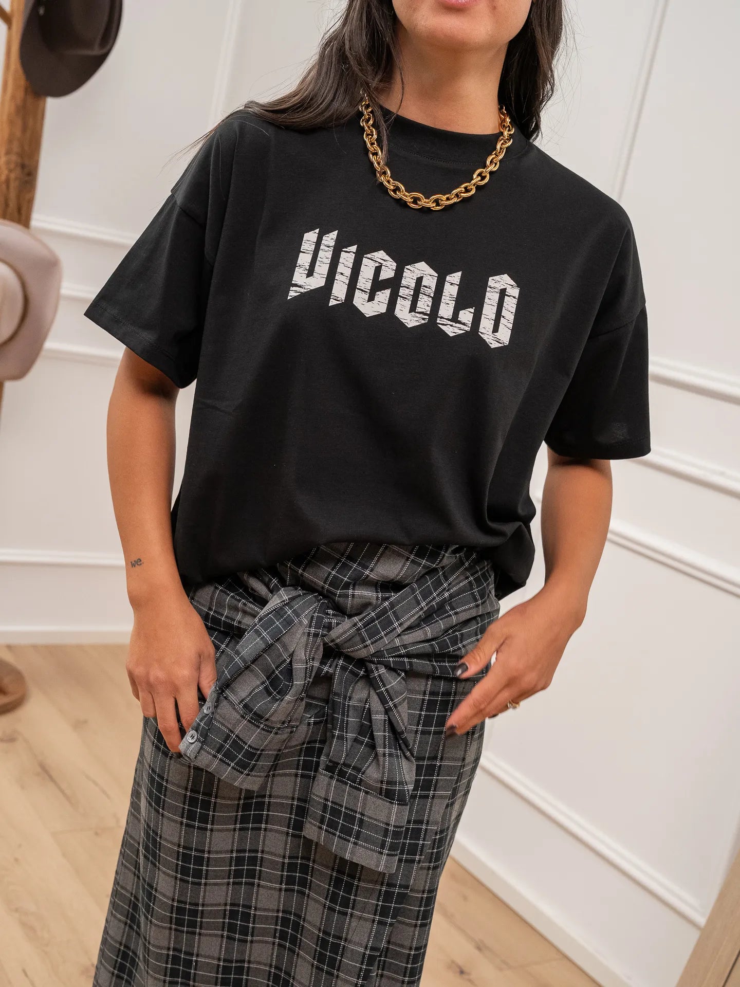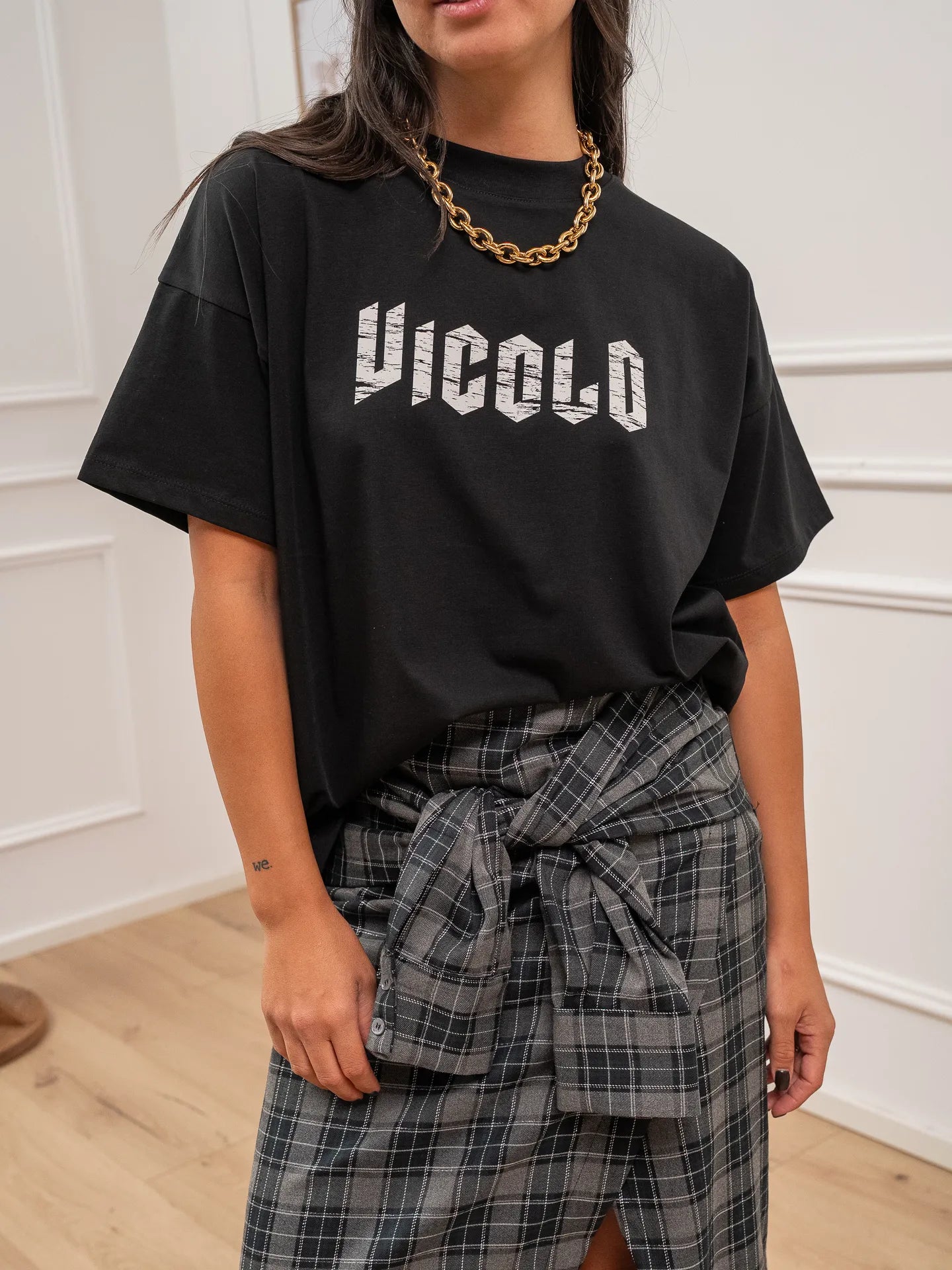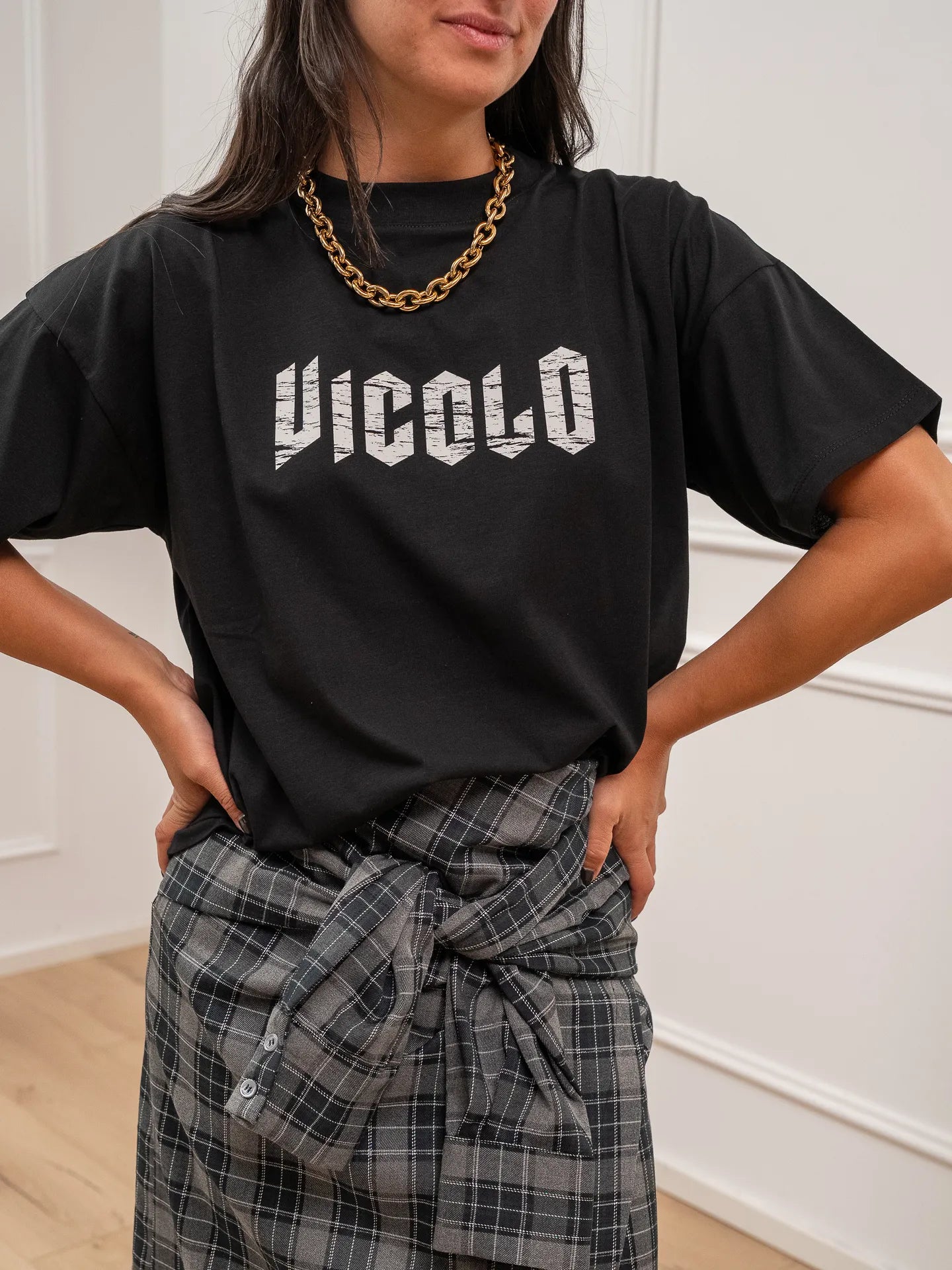 T shirt color nero Vicolo. Modello girocollo a manica corta. Dettaglio stampa logo invecchiato.