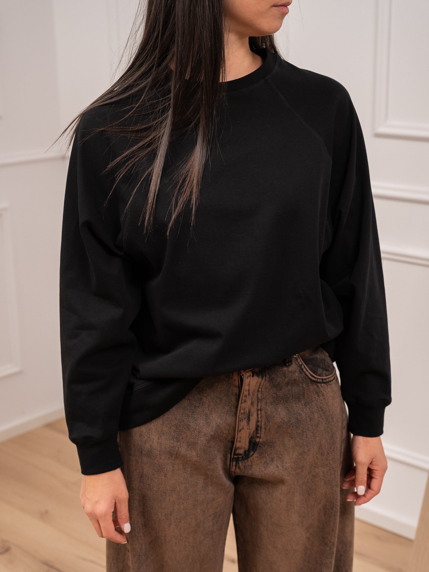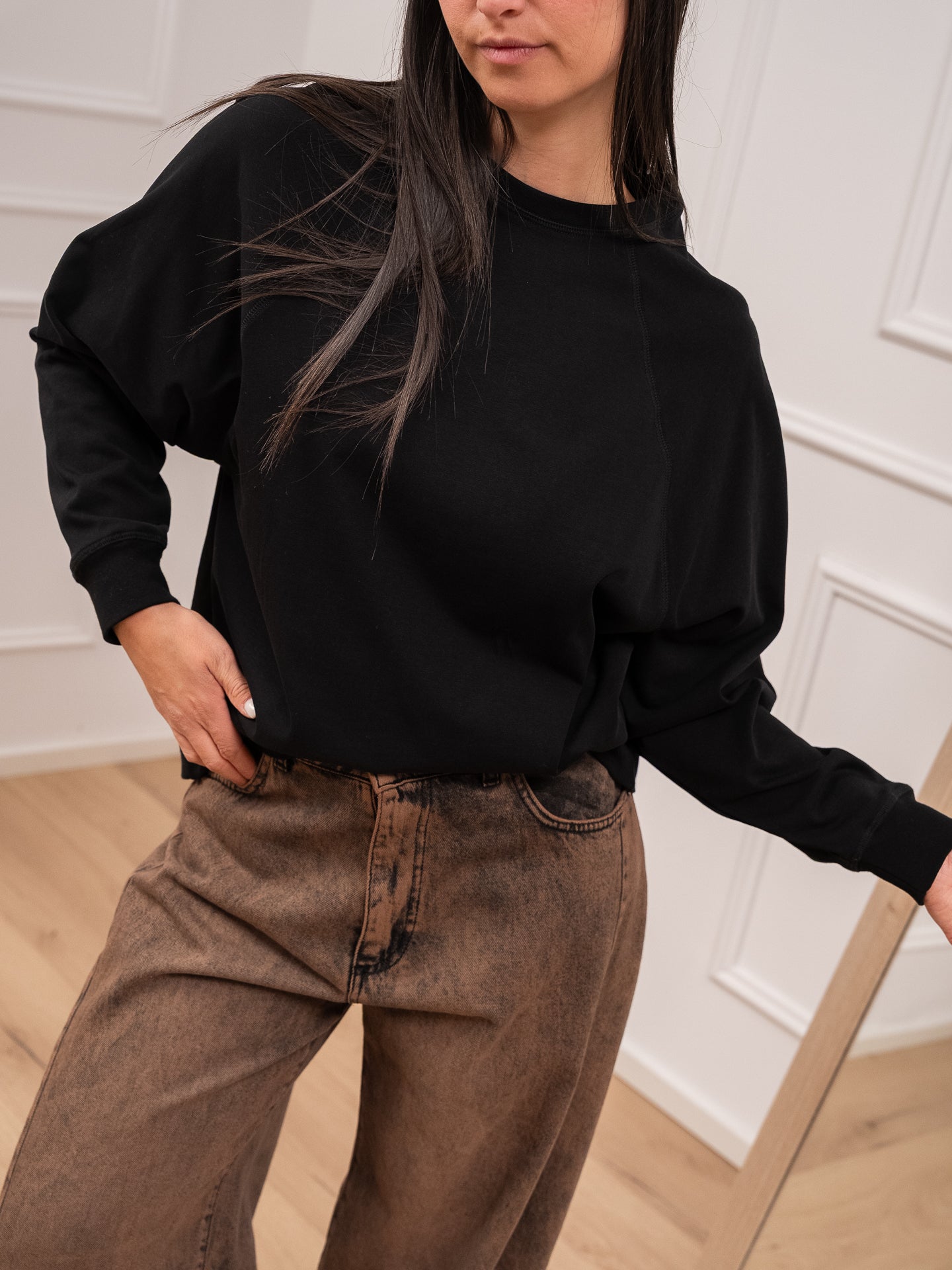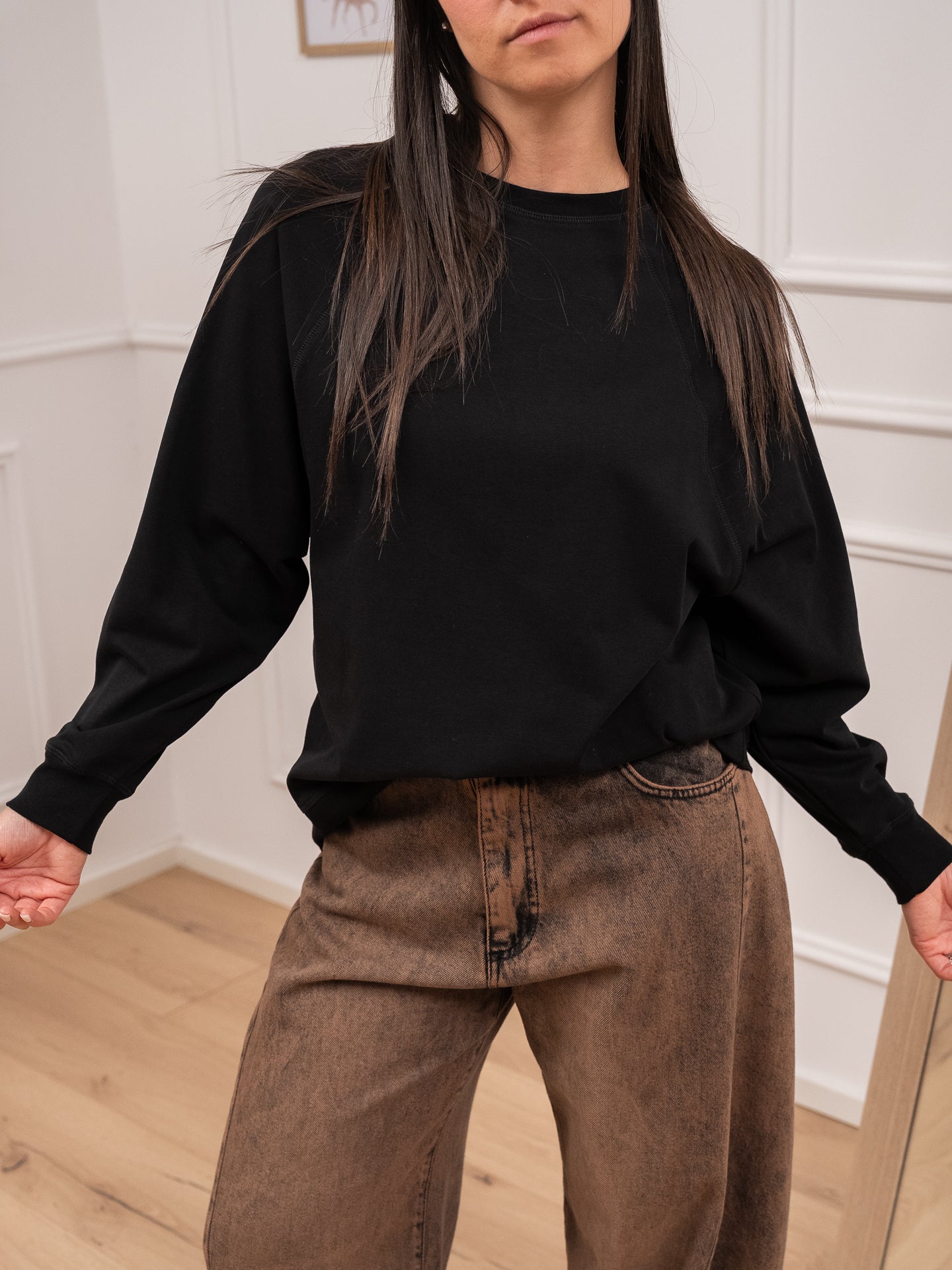 T shirt color nero Vicolo. Modello stile felpa girocollo a maniche lunghe con finiture elasticizzate a costine.