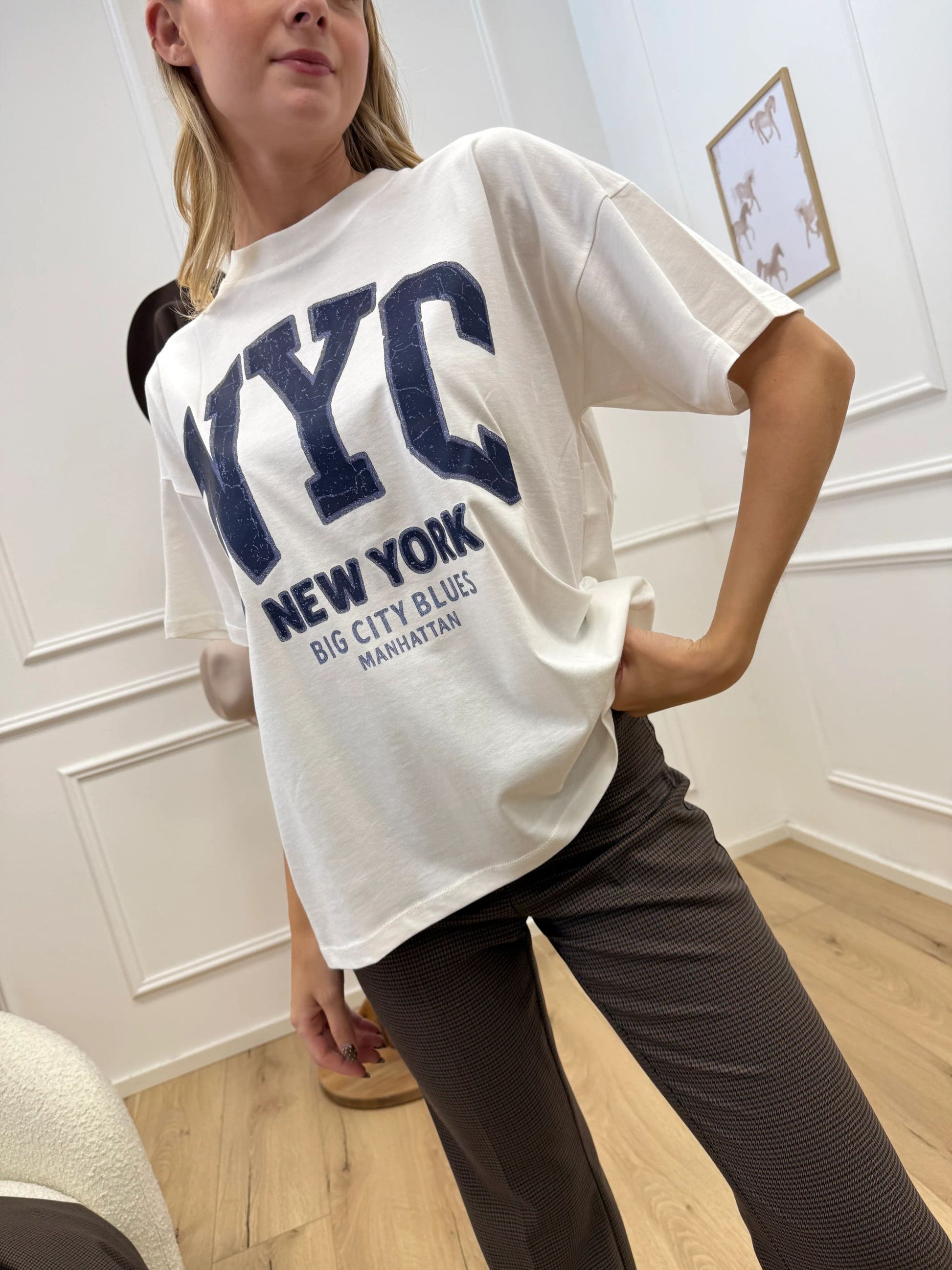 T shirt color bianco Vicolo. Modello girocollo a manica corta. Dettaglio stampa "Nyc".