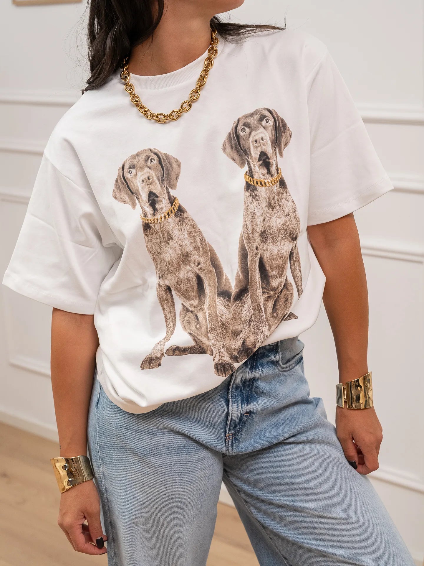 T shirt Oliva stampa doggy JJXX. Modello girocollo a mezza manica. Fit over.