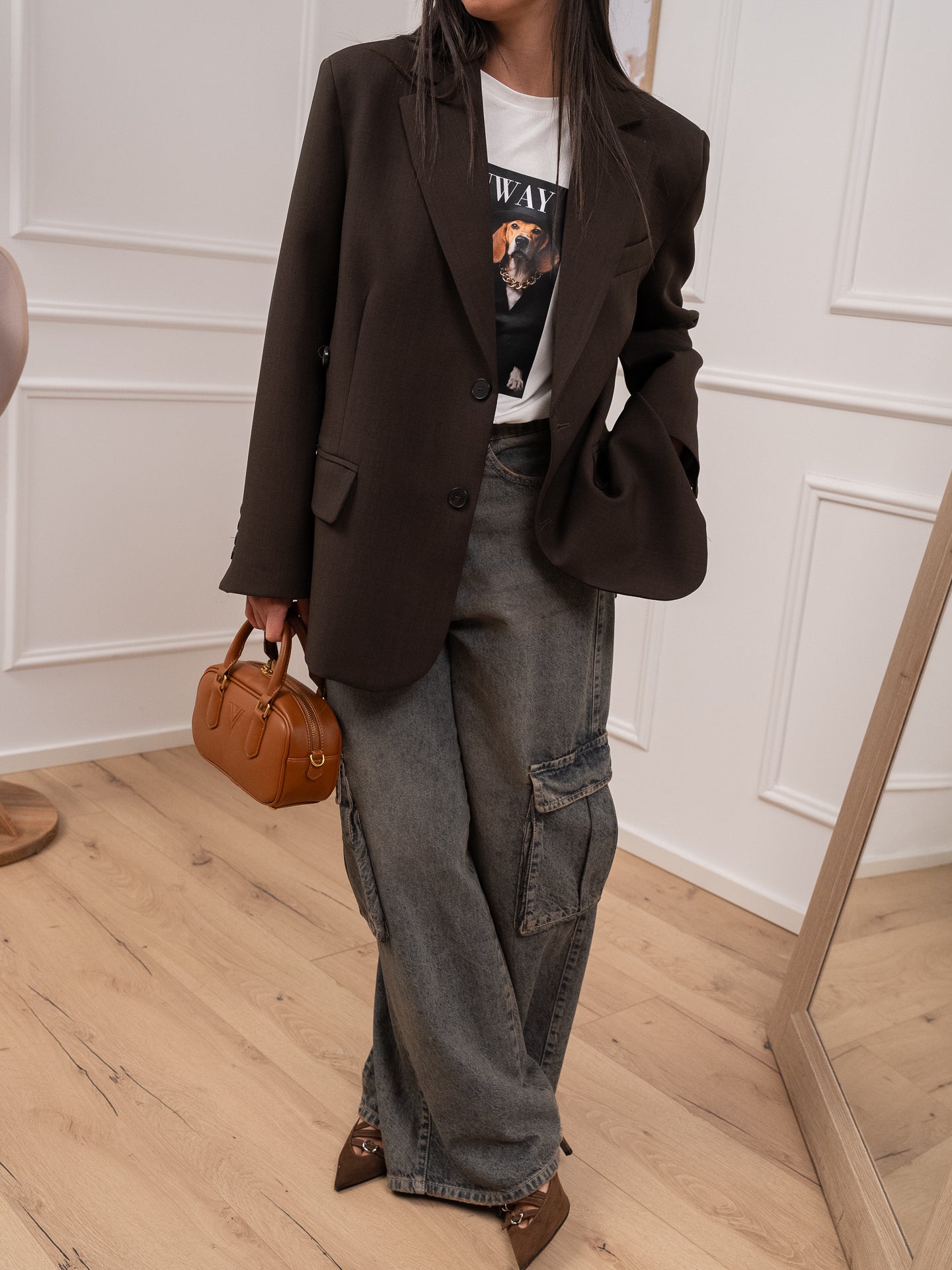 La modella è alta 165 cm e indossa tg U.