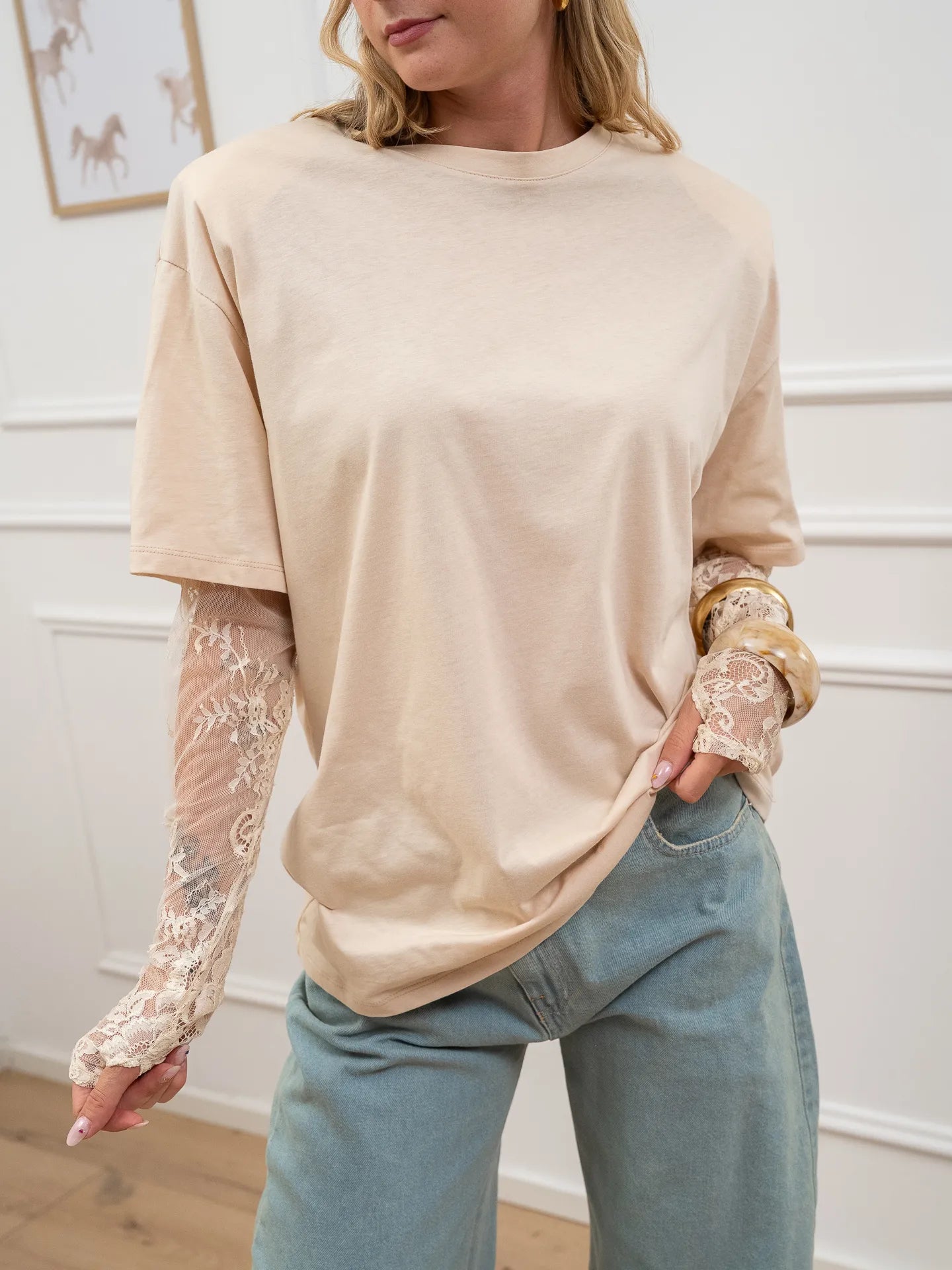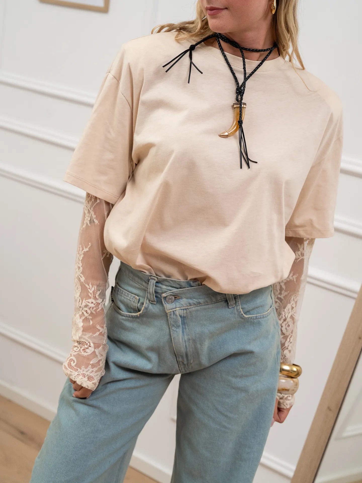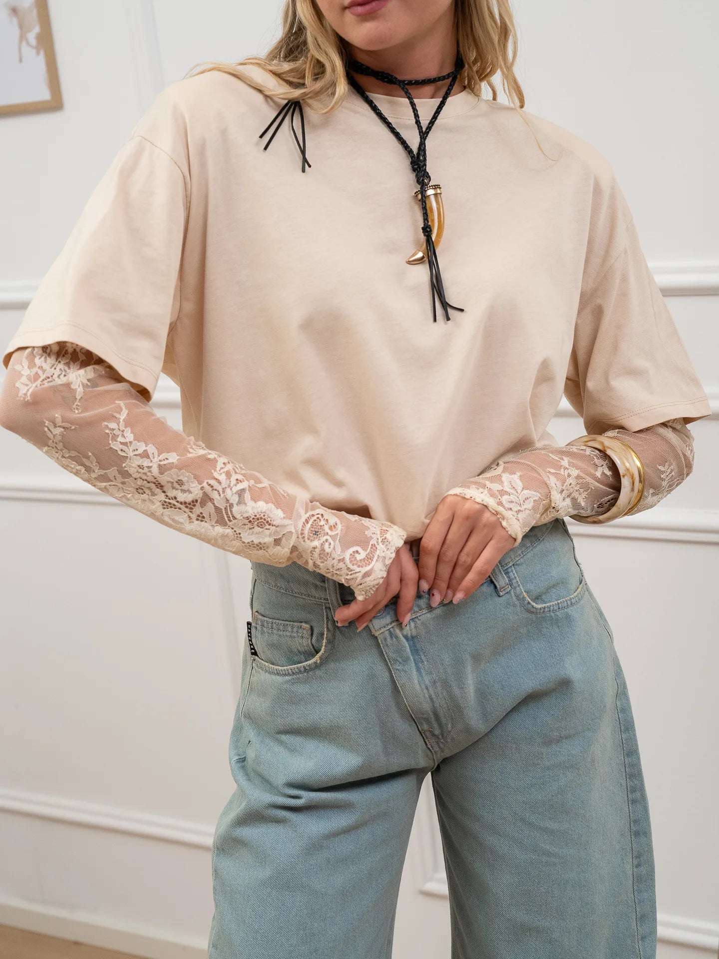 T shirt vaniglia con manicotto in pizzo - Vicolo