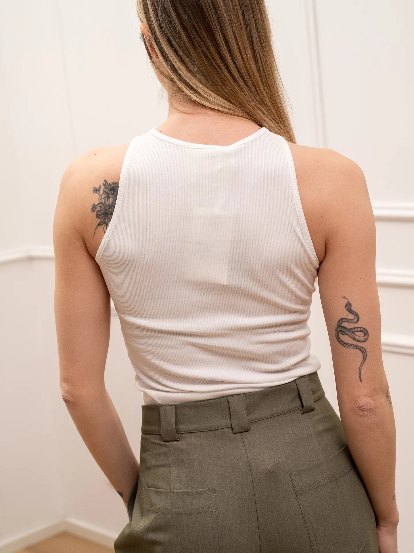 Top a costine bianco You Decide. Modello basic con scollo america, fit aderente.